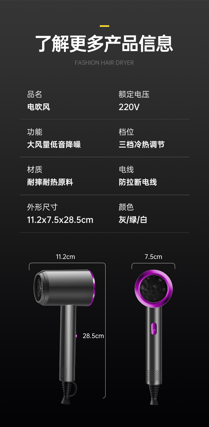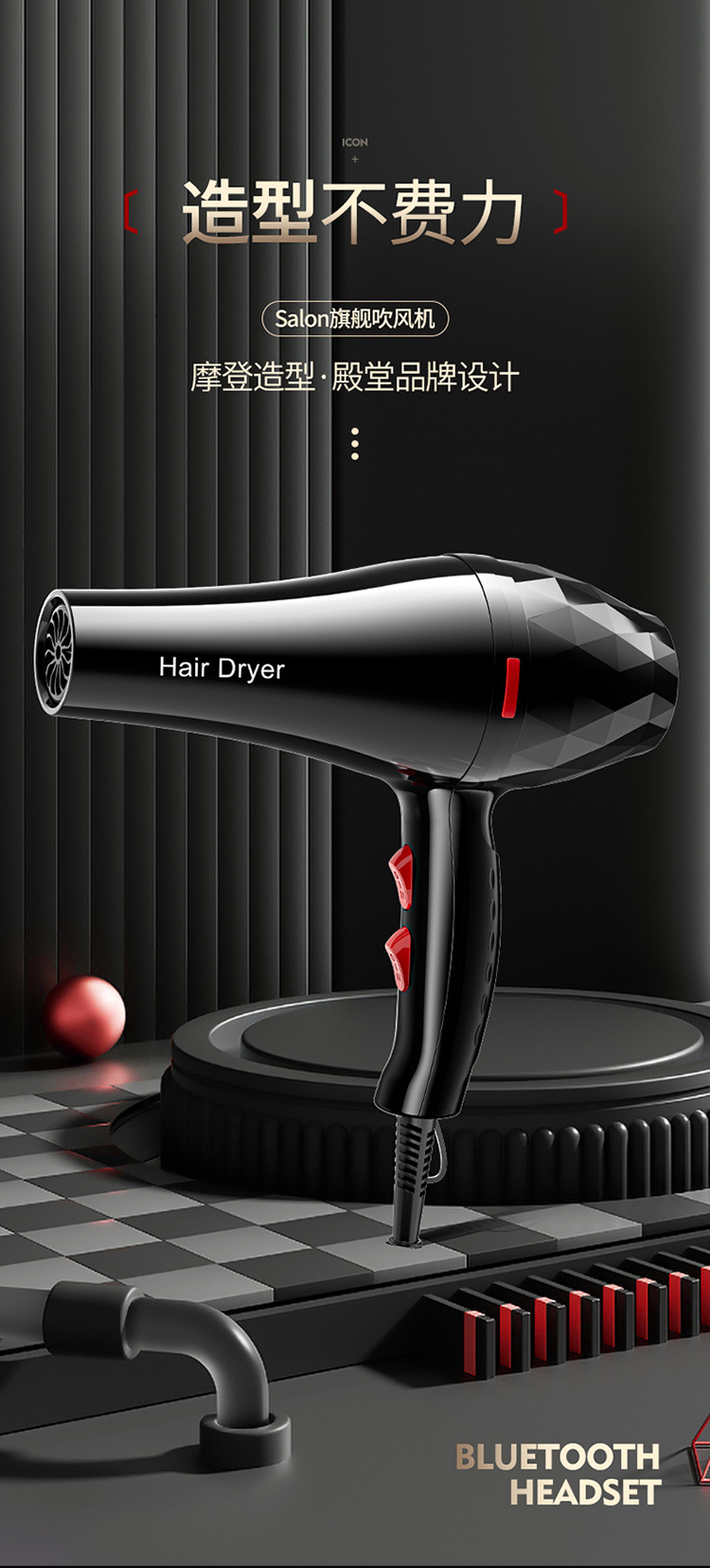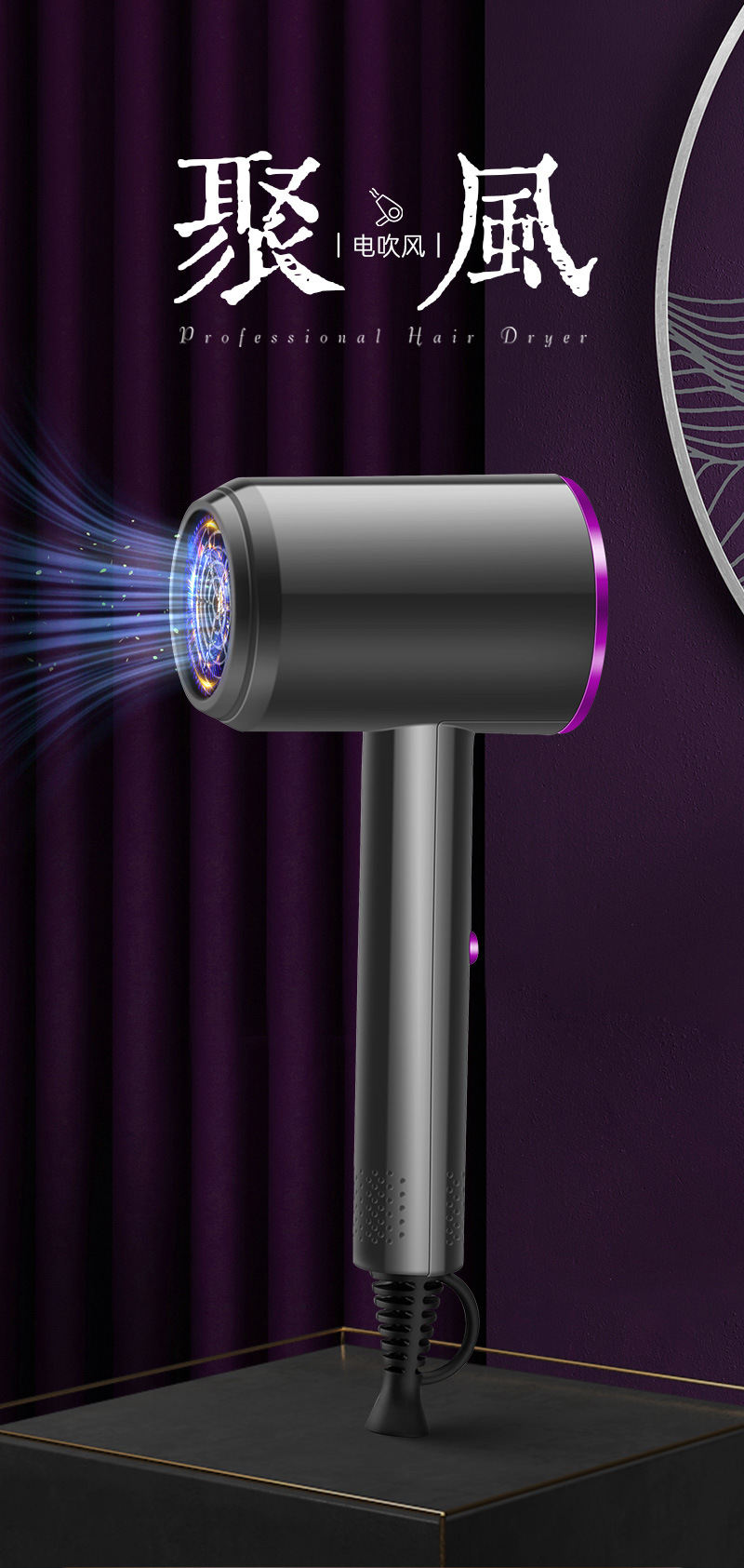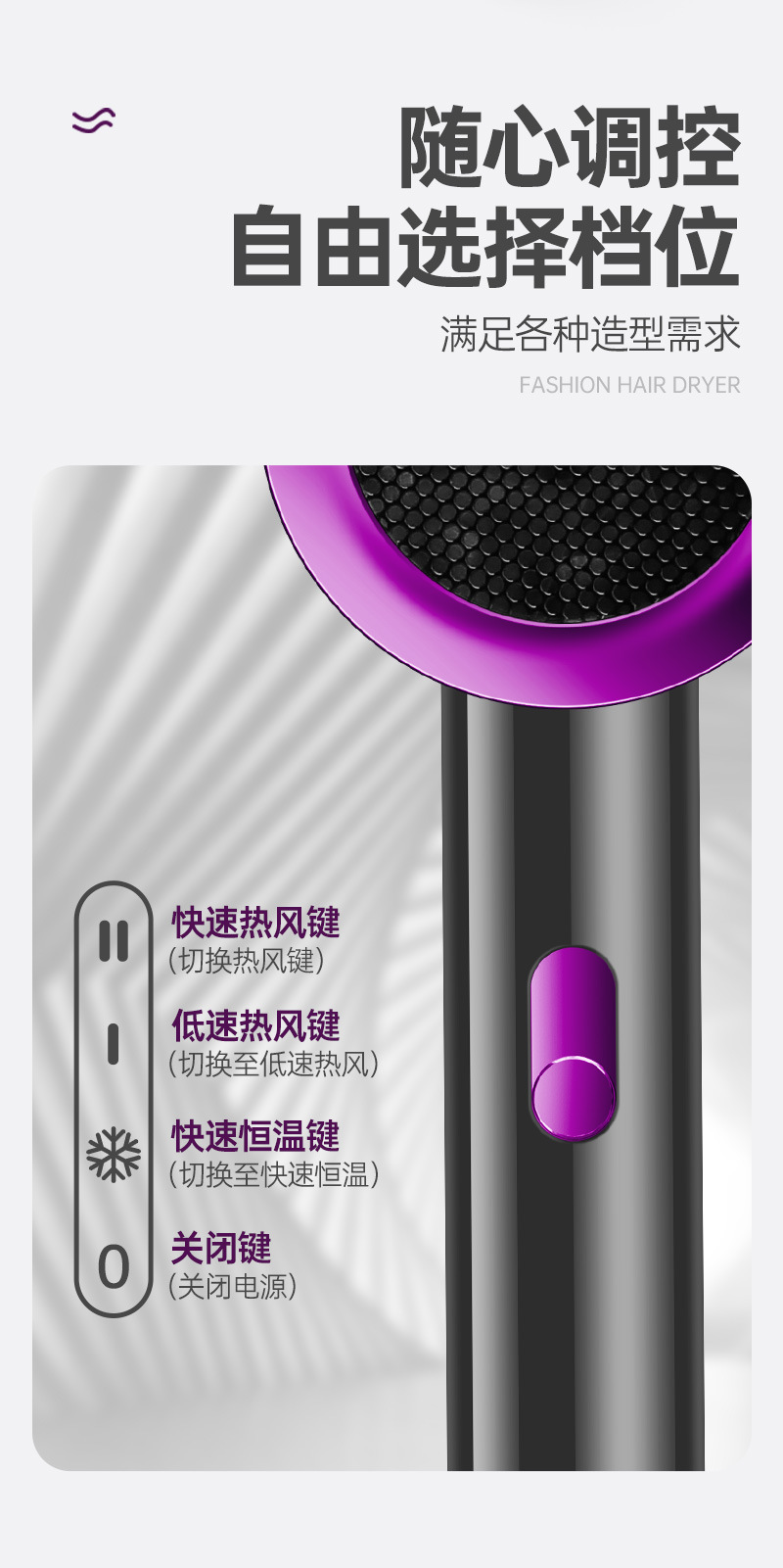 新款网红吹风机时尚大功率电吹风折叠蓝光发廊冷热吹风筒礼品批发