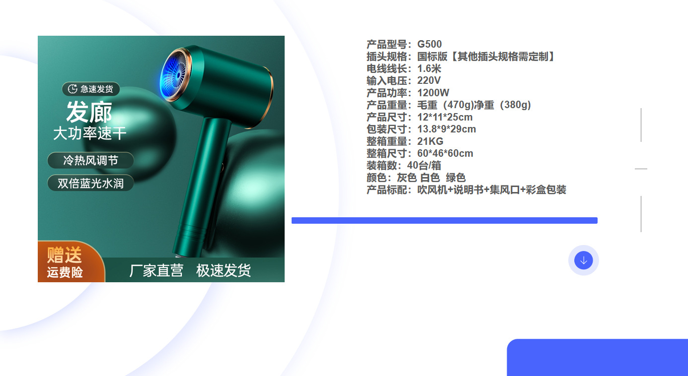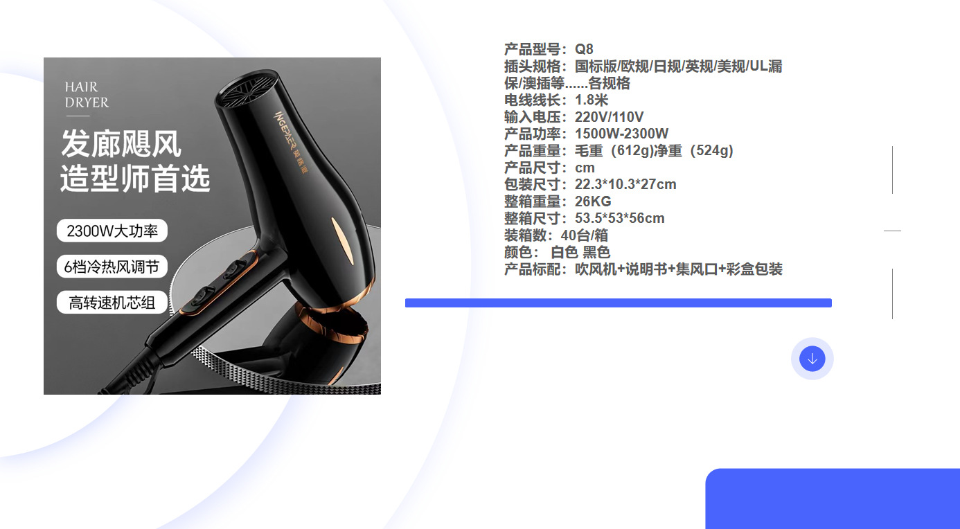 亚马逊跨境电吹风机家用发廊吹风机大功率冷热风负离子护发吹风筒