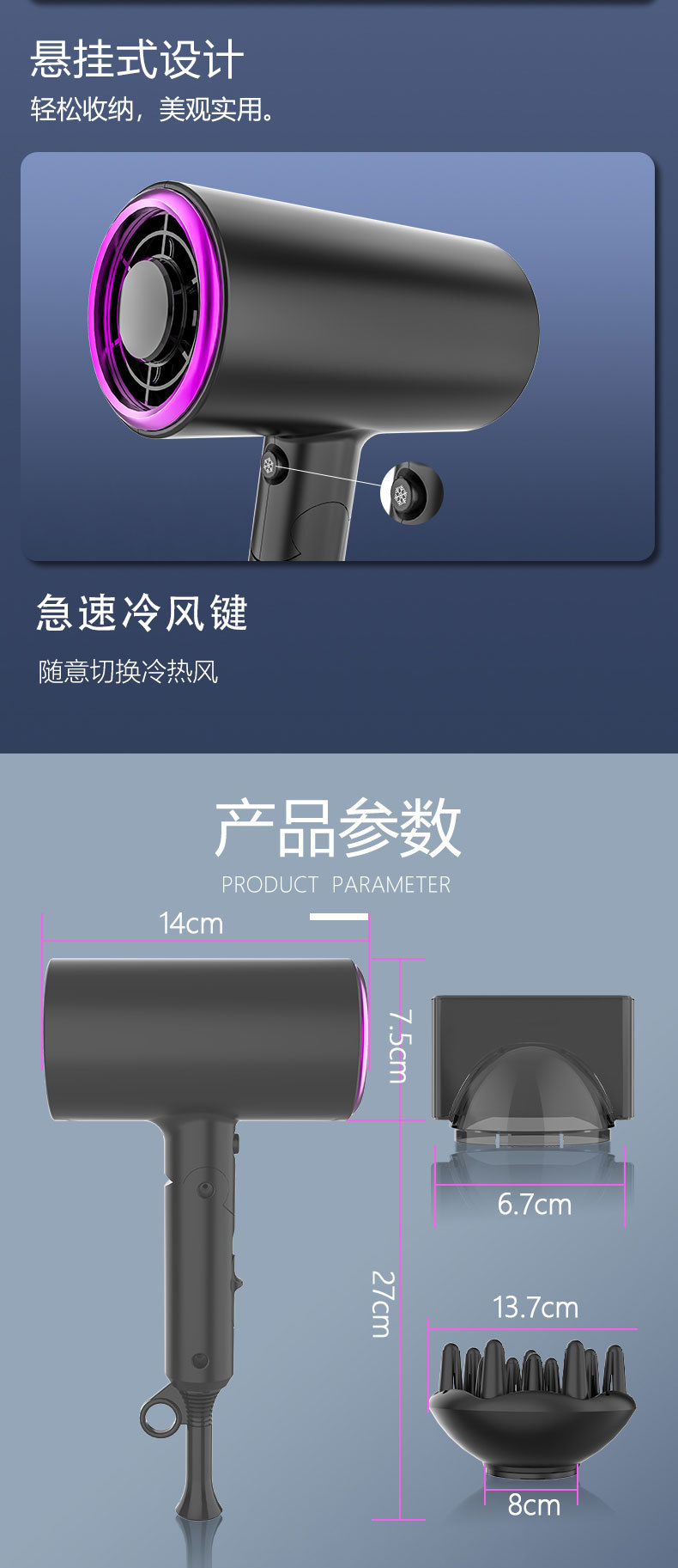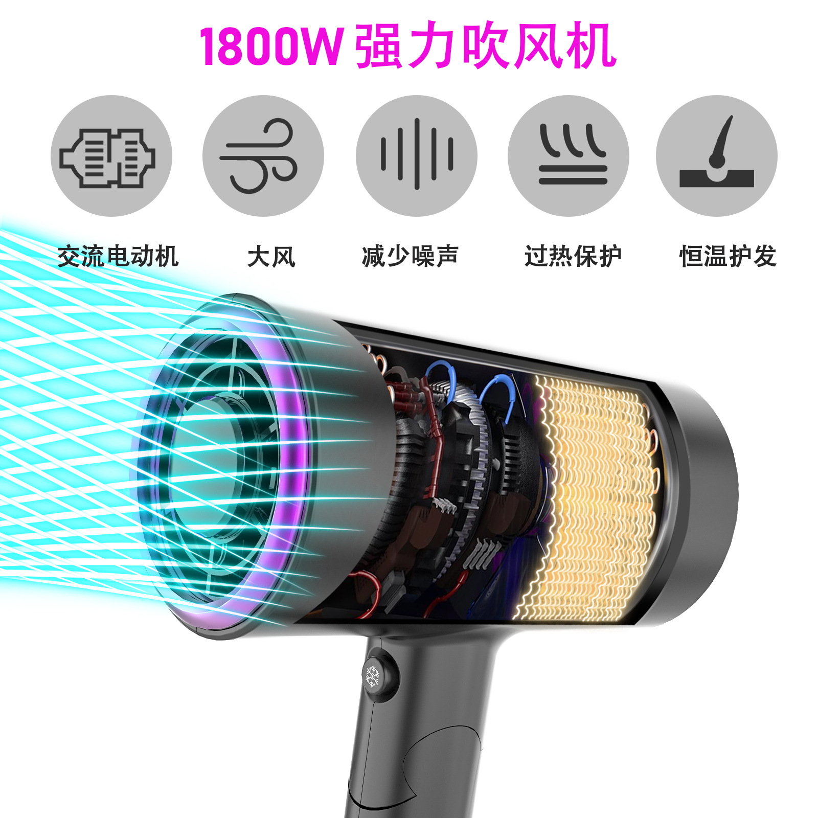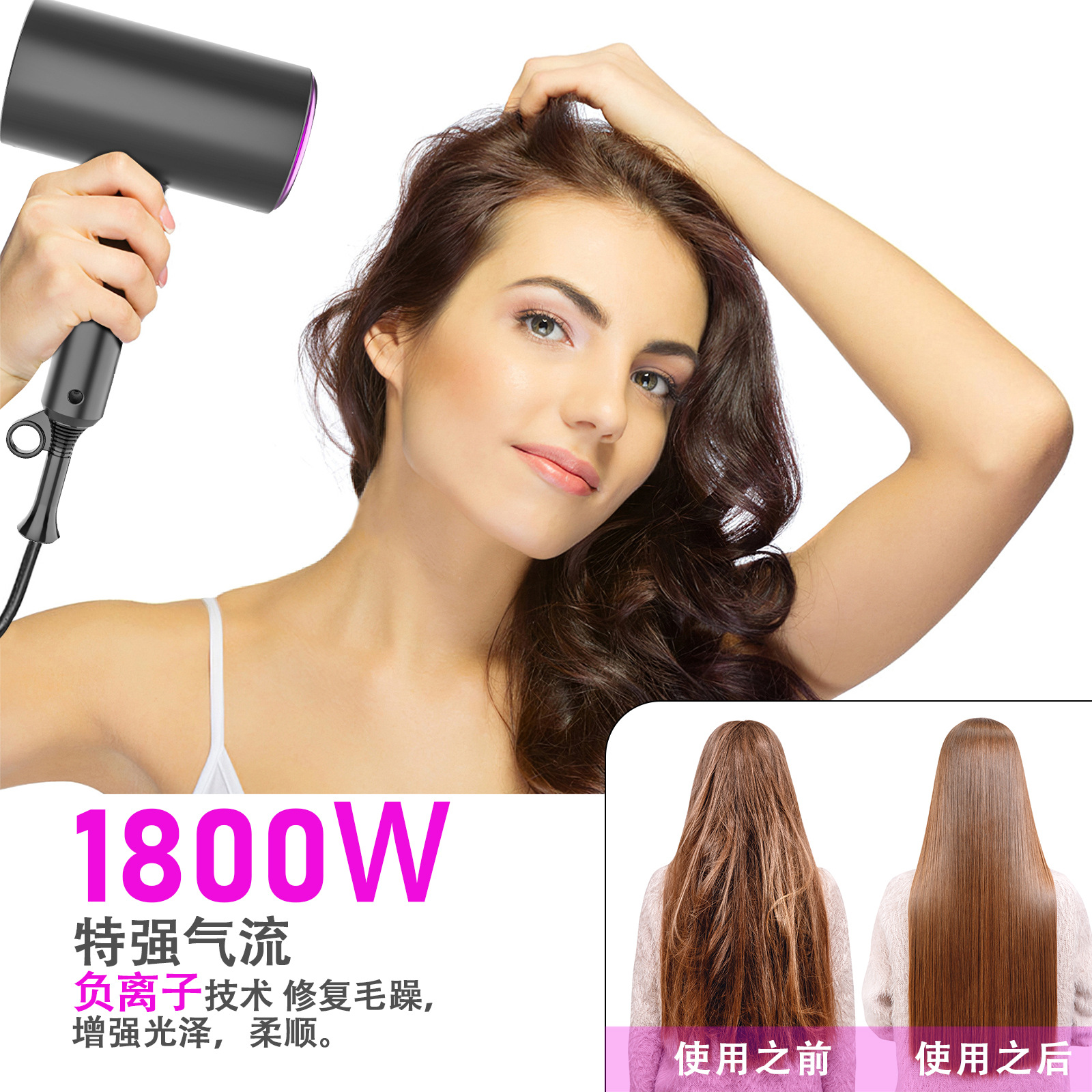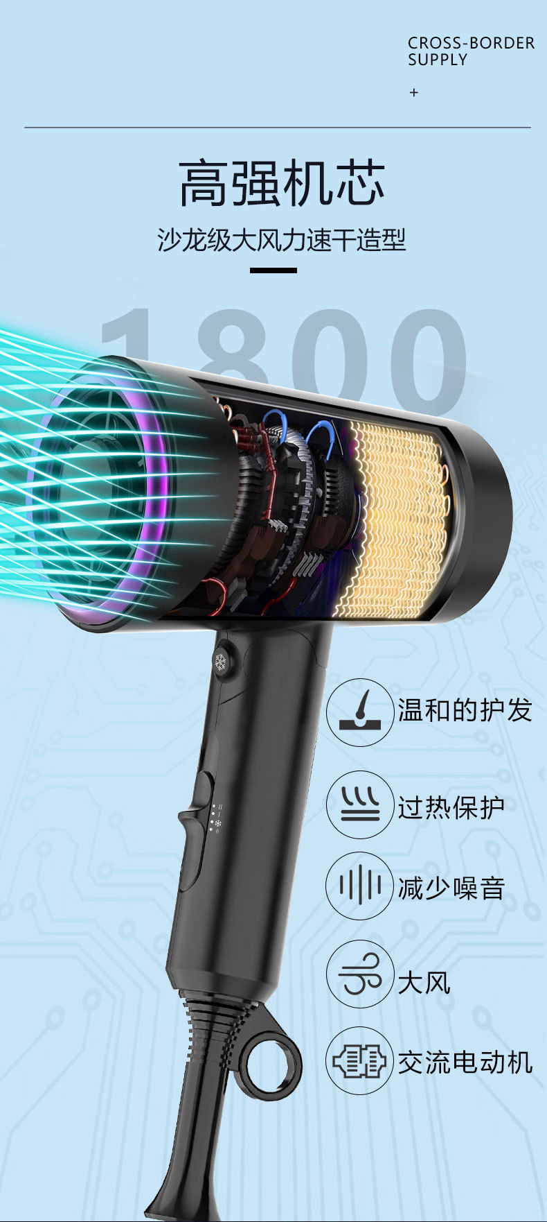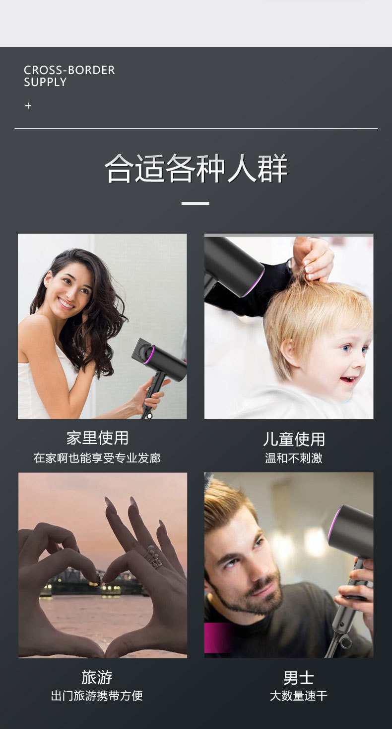 跨境亚马逊吹风筒日规美规电吹风负离子折叠便携大功率家用吹风机