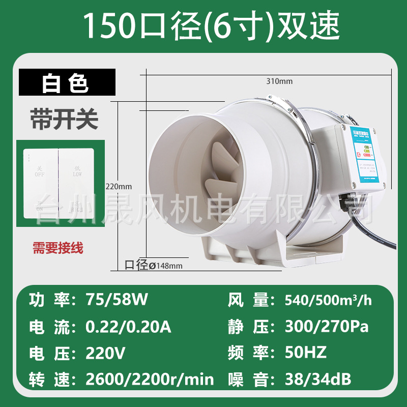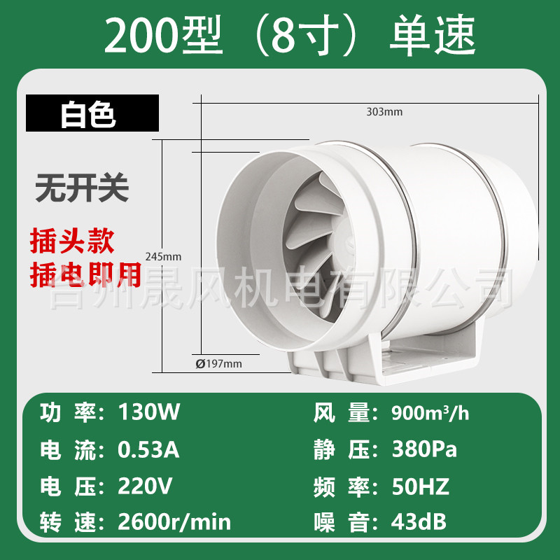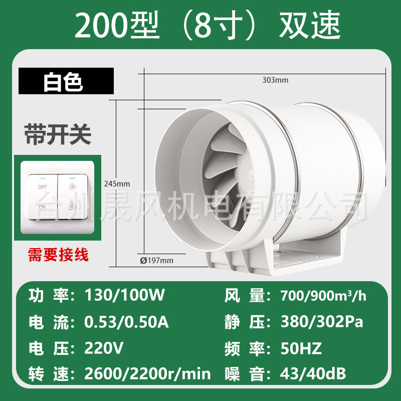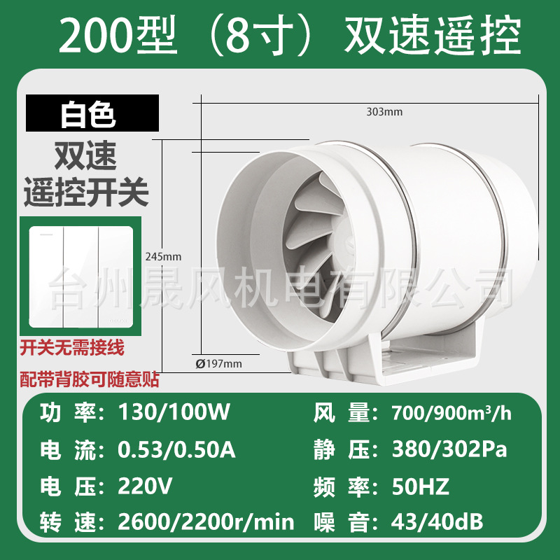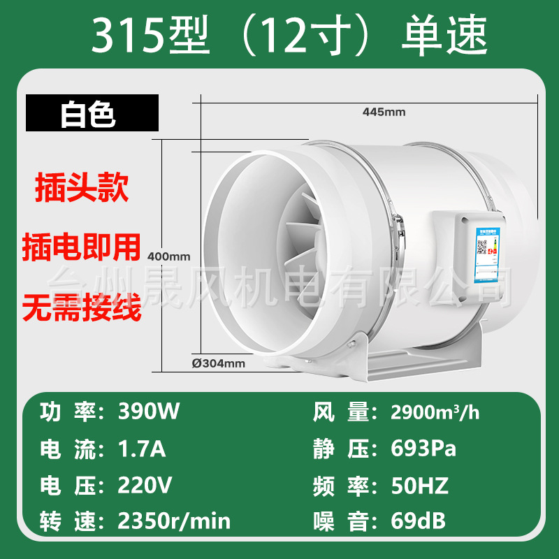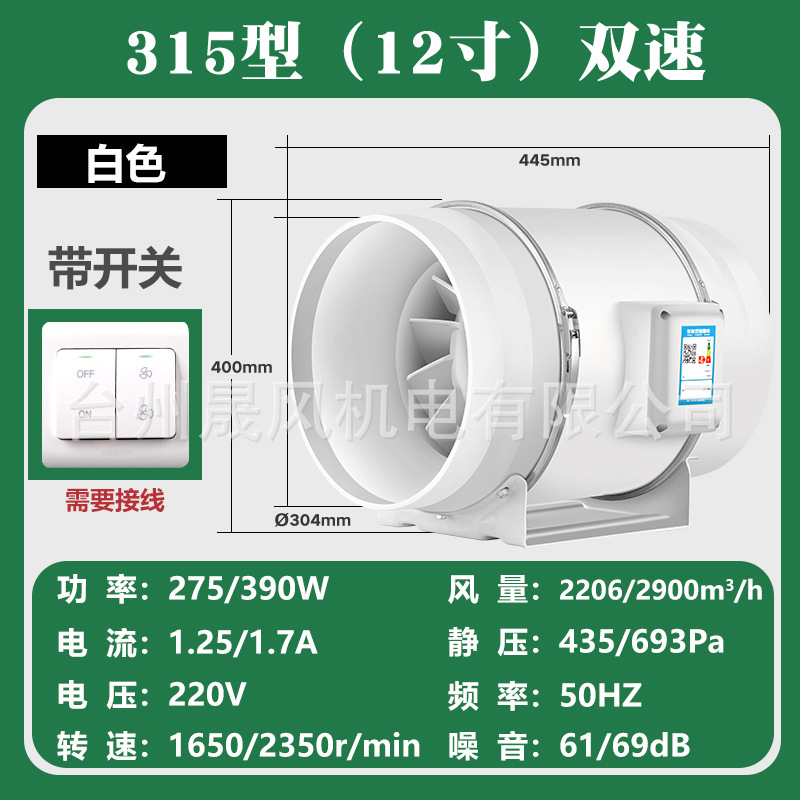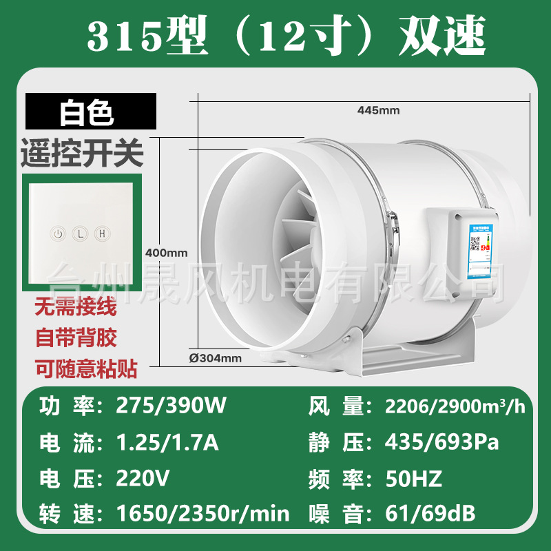 管道风机厨房排烟抽风机卫生间静音换气扇大功率排气扇工业排风扇