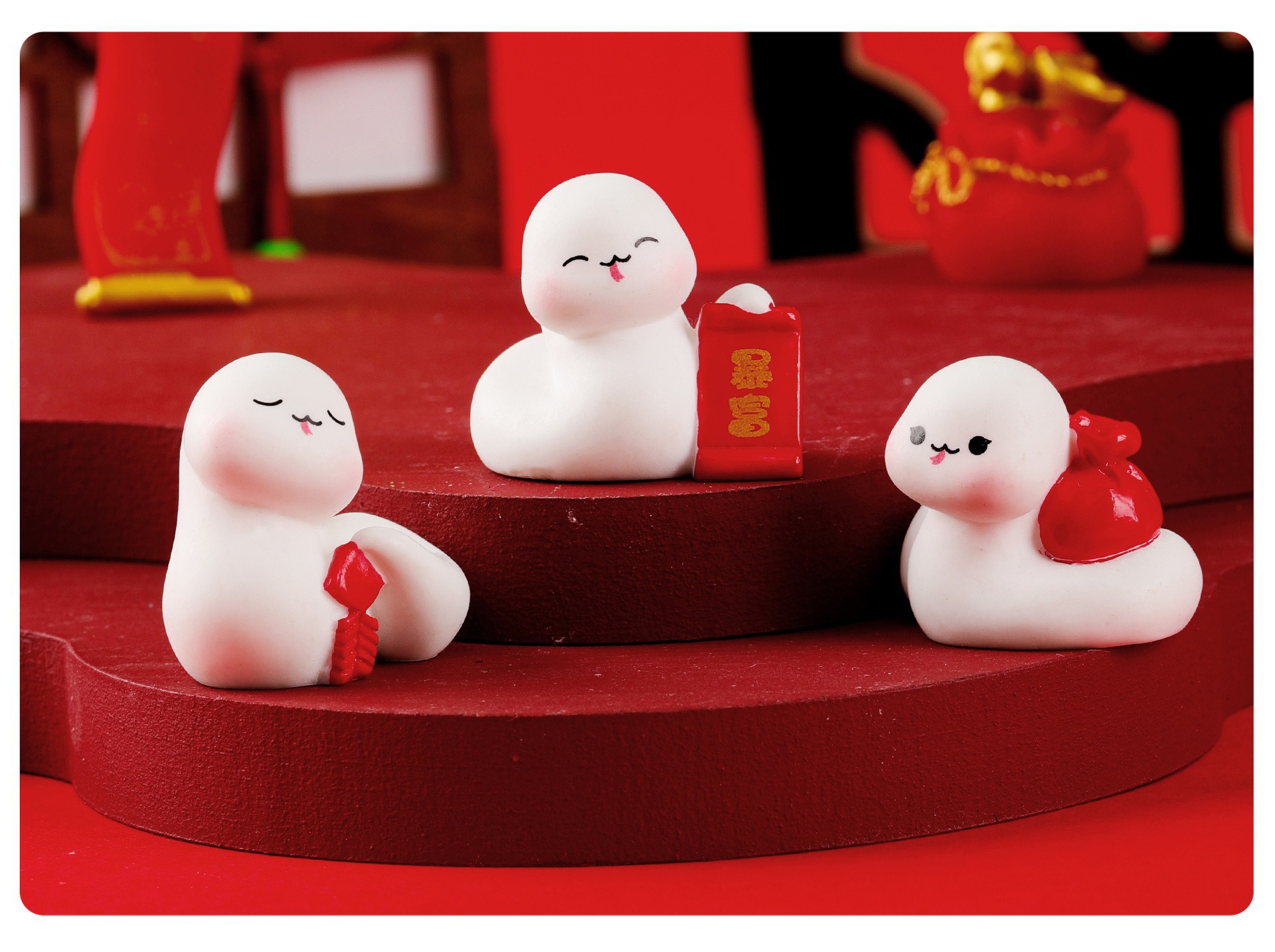 微景观新年可爱小蛇国潮公仔手办饰品配件生肖蛇年车载桌面小摆件