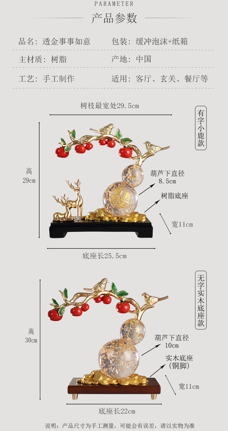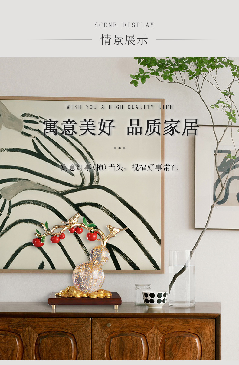 跨境新品葫芦摆件透明树脂新中式客厅电视柜酒柜玄关柿子摆设礼物