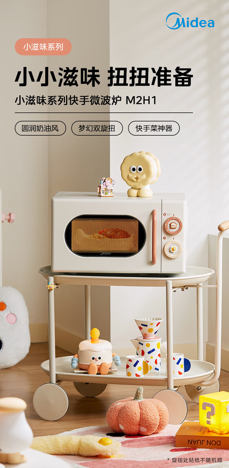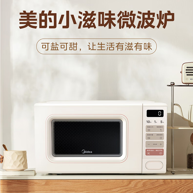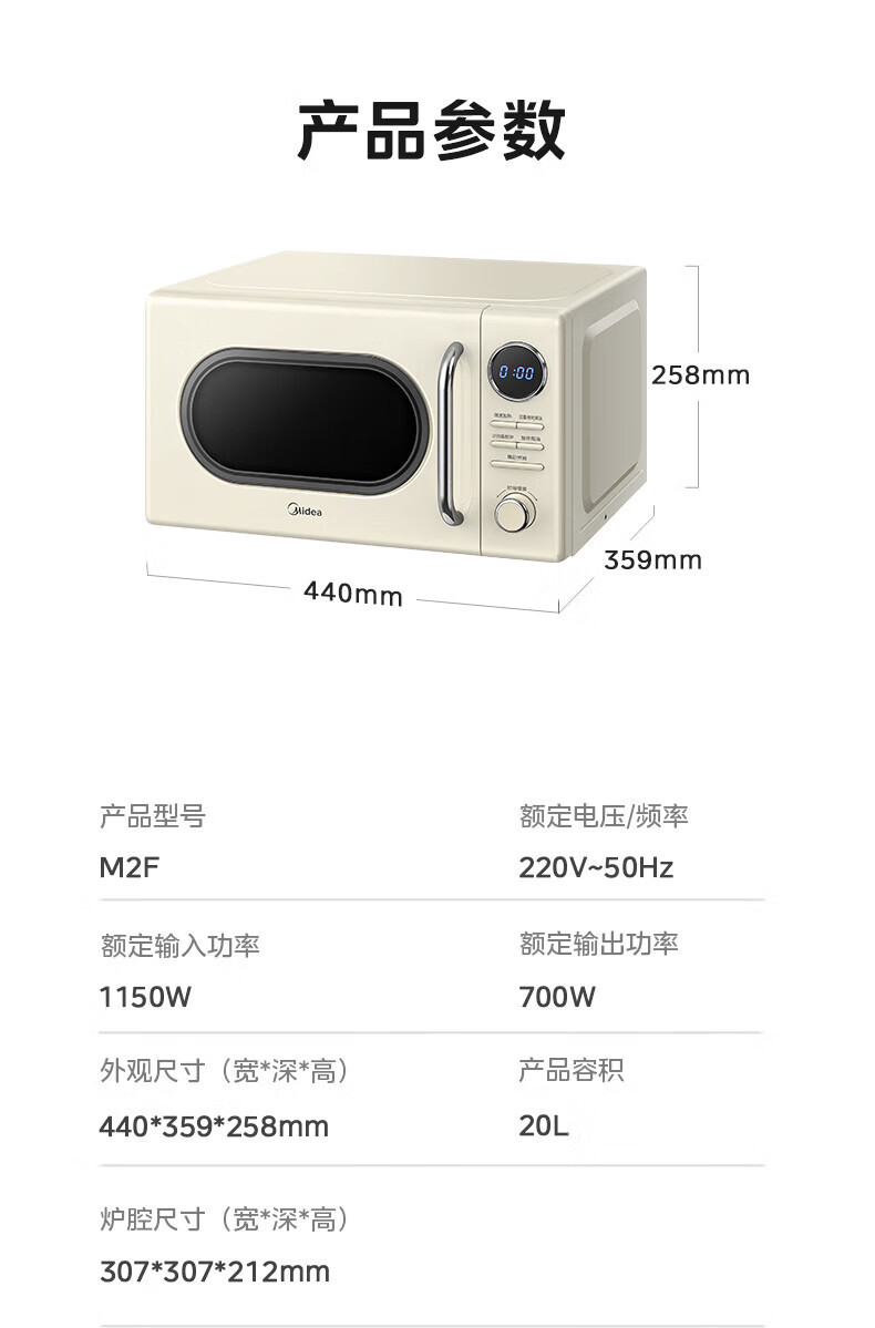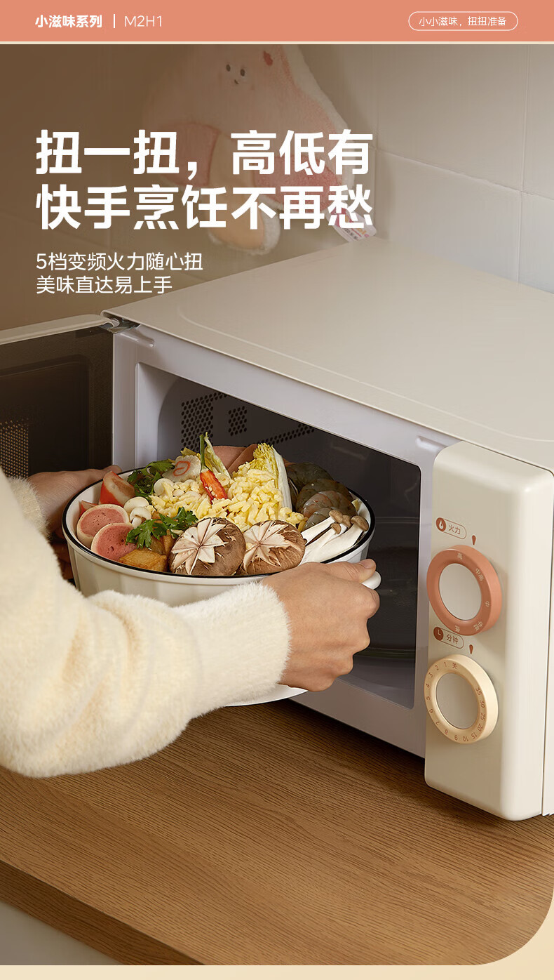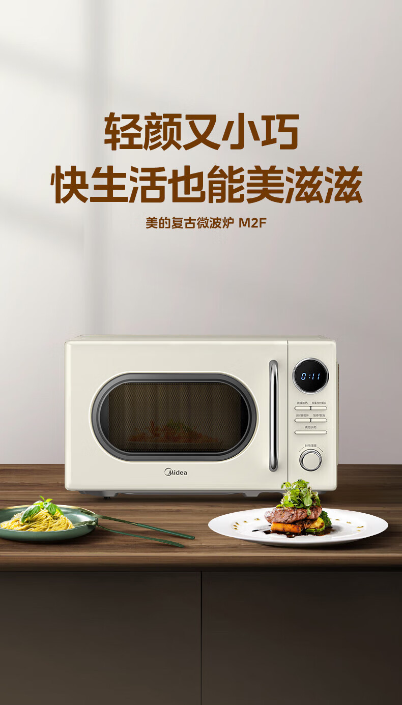 美的微波炉变频家用小型奶油风复古转盘式一级能效M2H1/M2H2/M2F