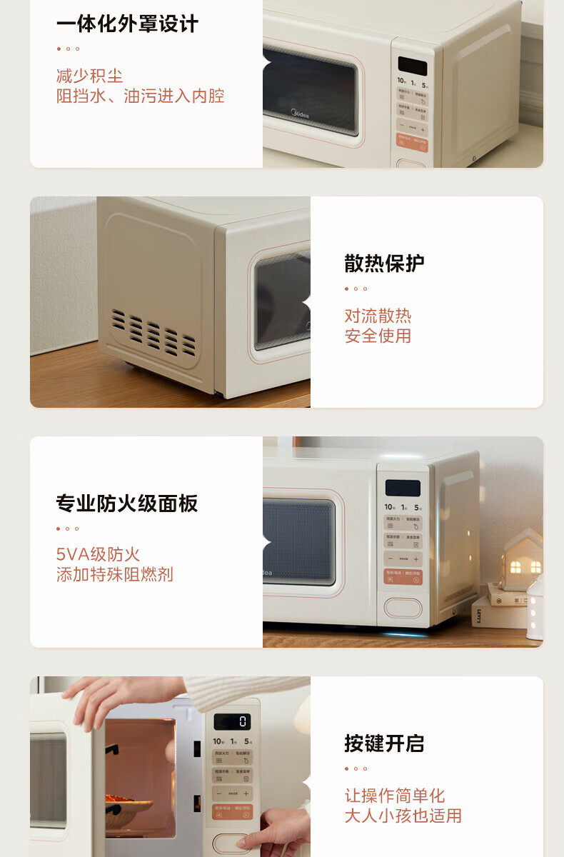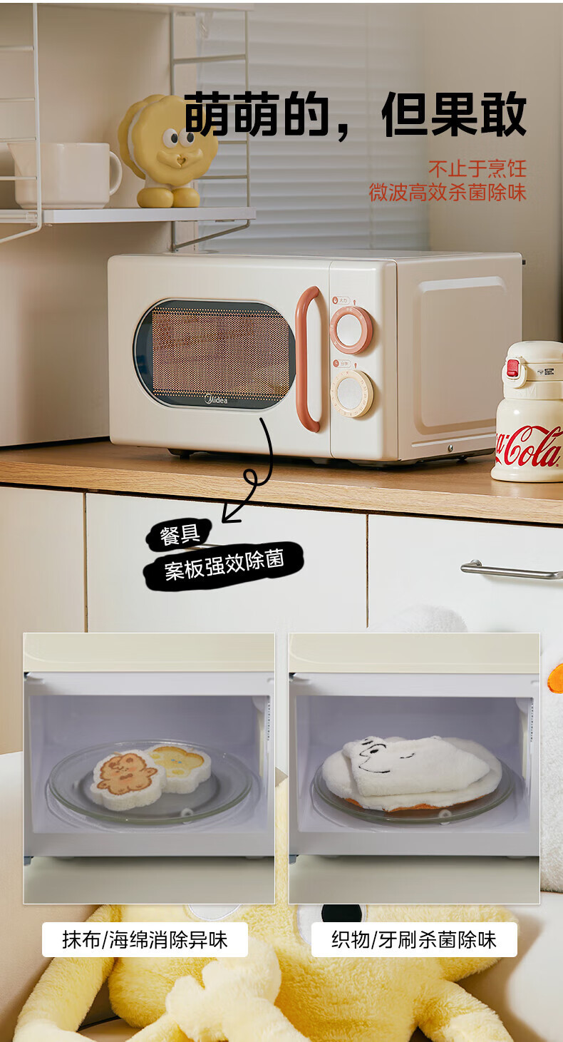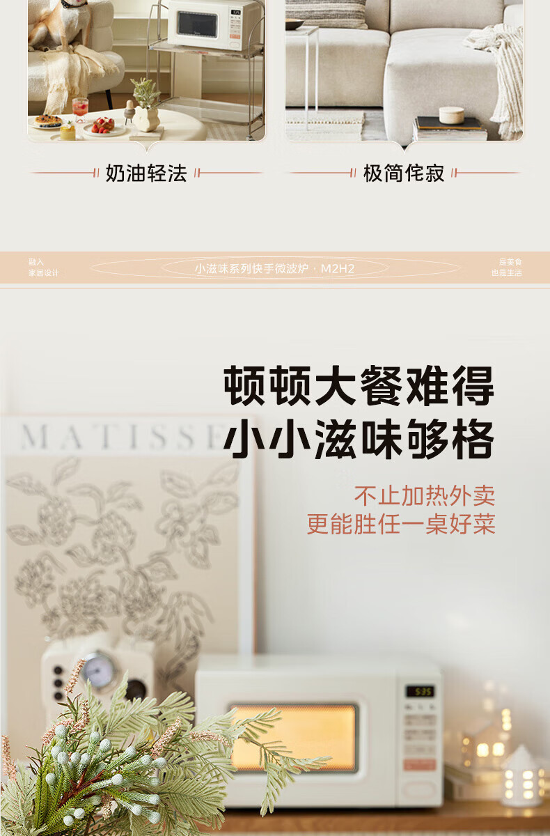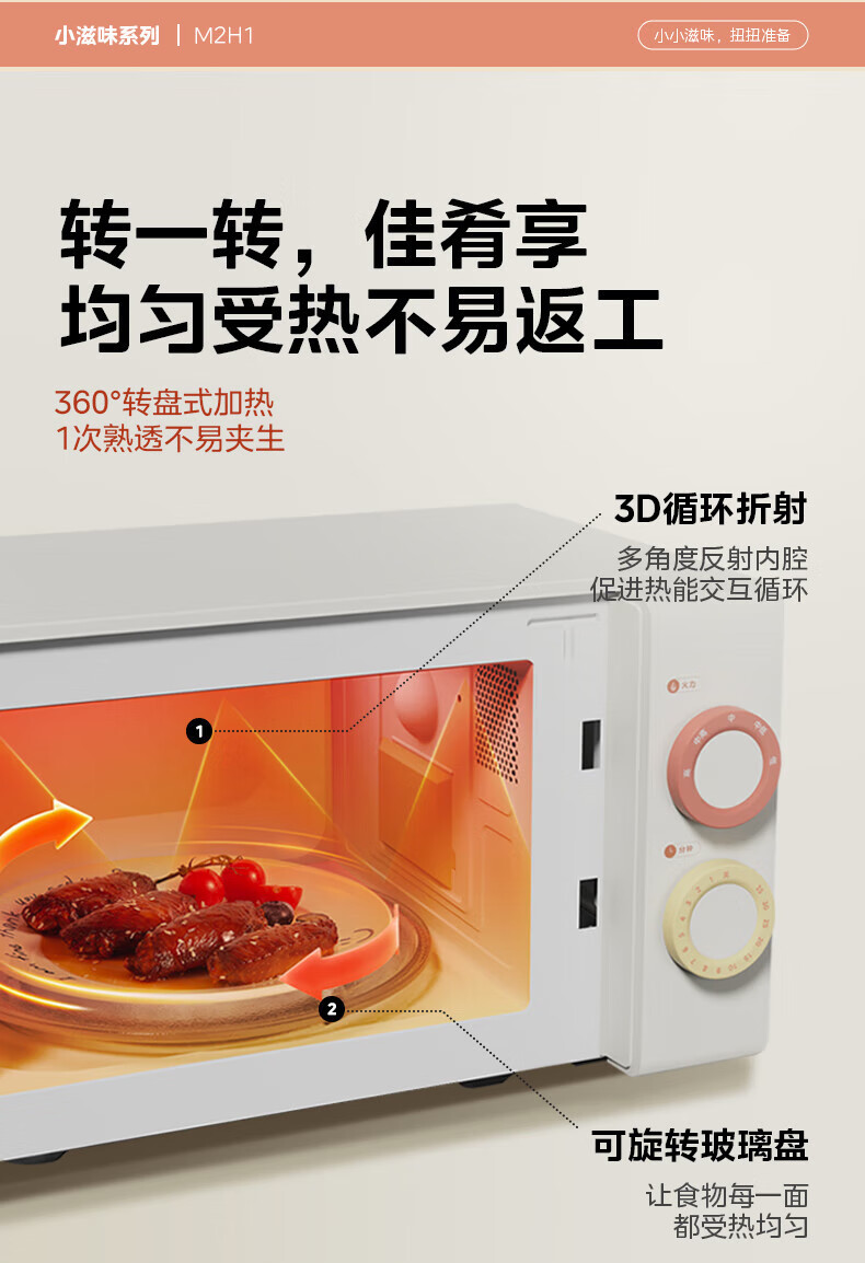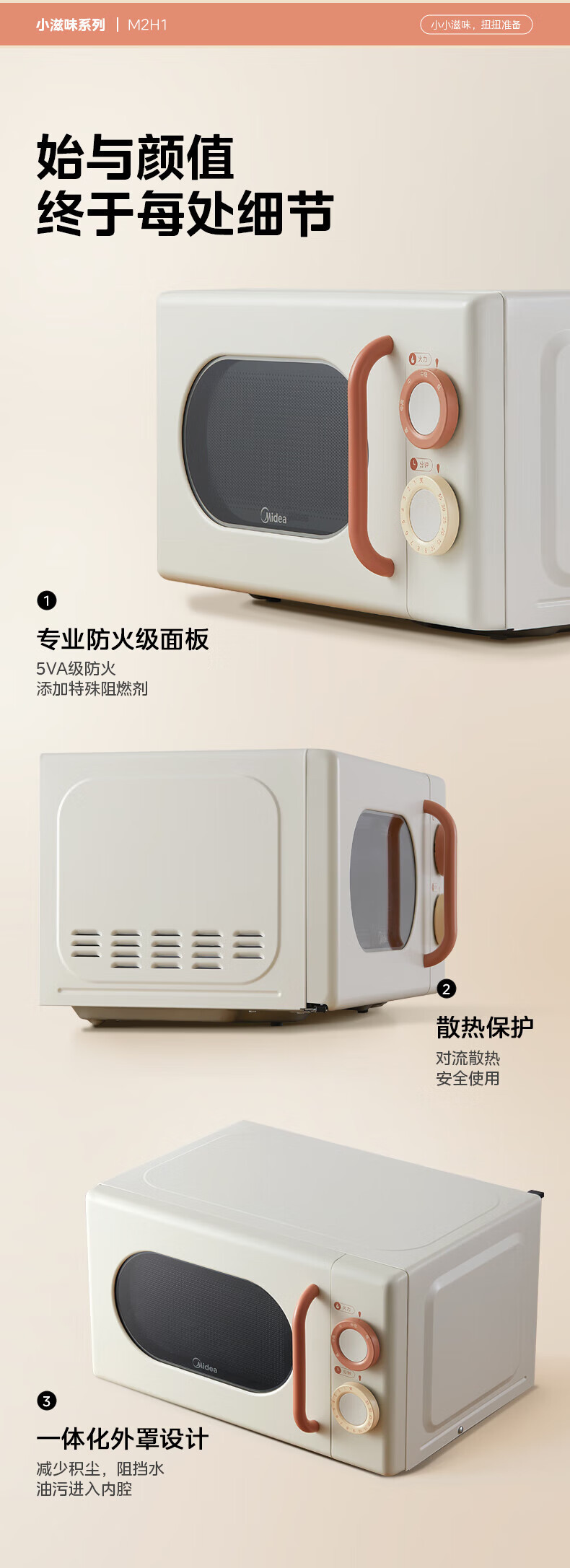 美的微波炉变频家用小型奶油风复古转盘式一级能效M2H1/M2H2/M2F