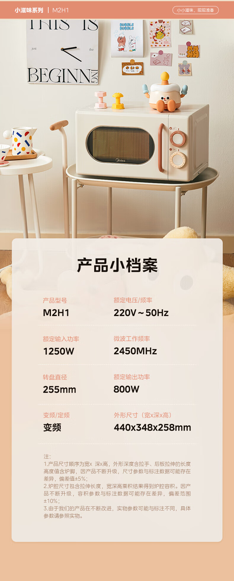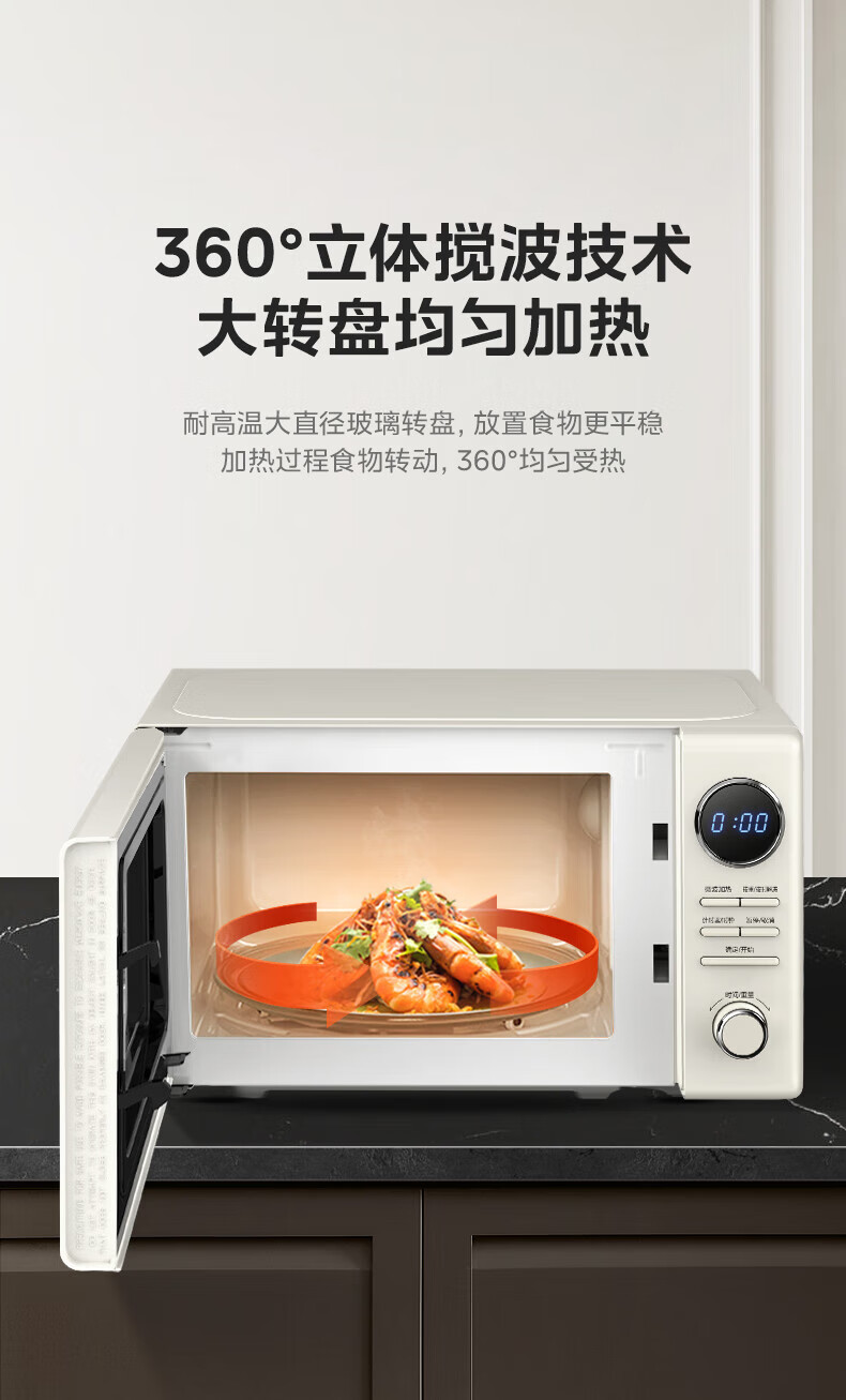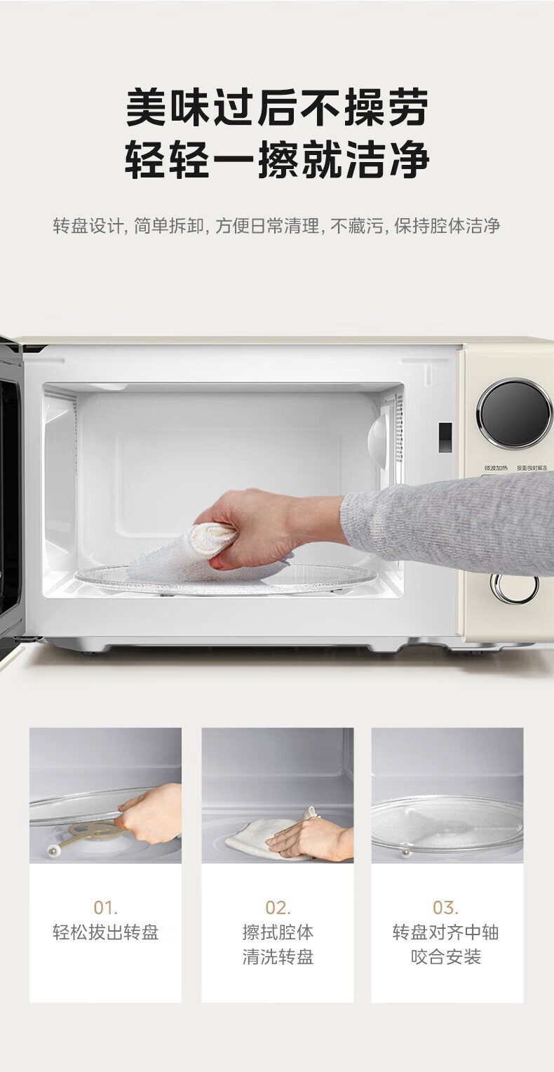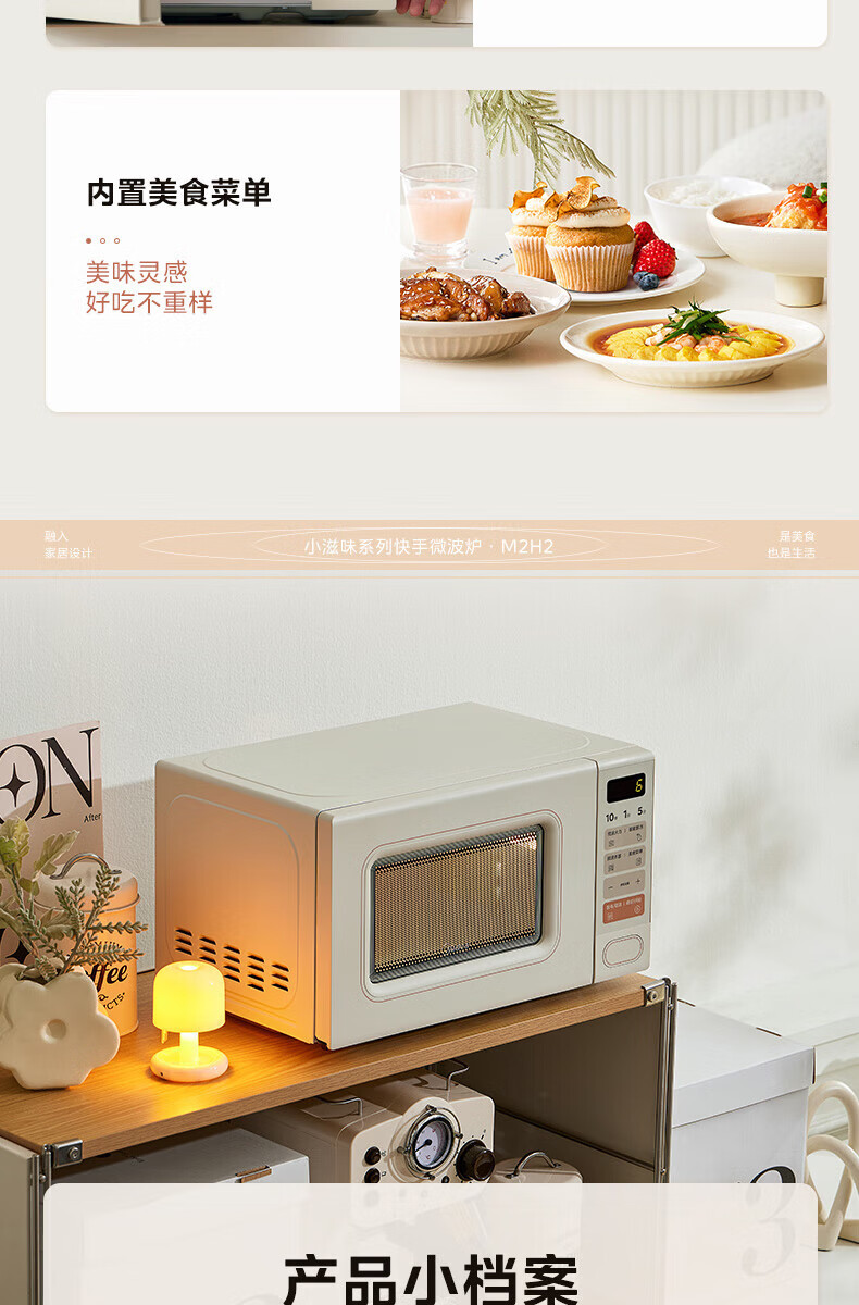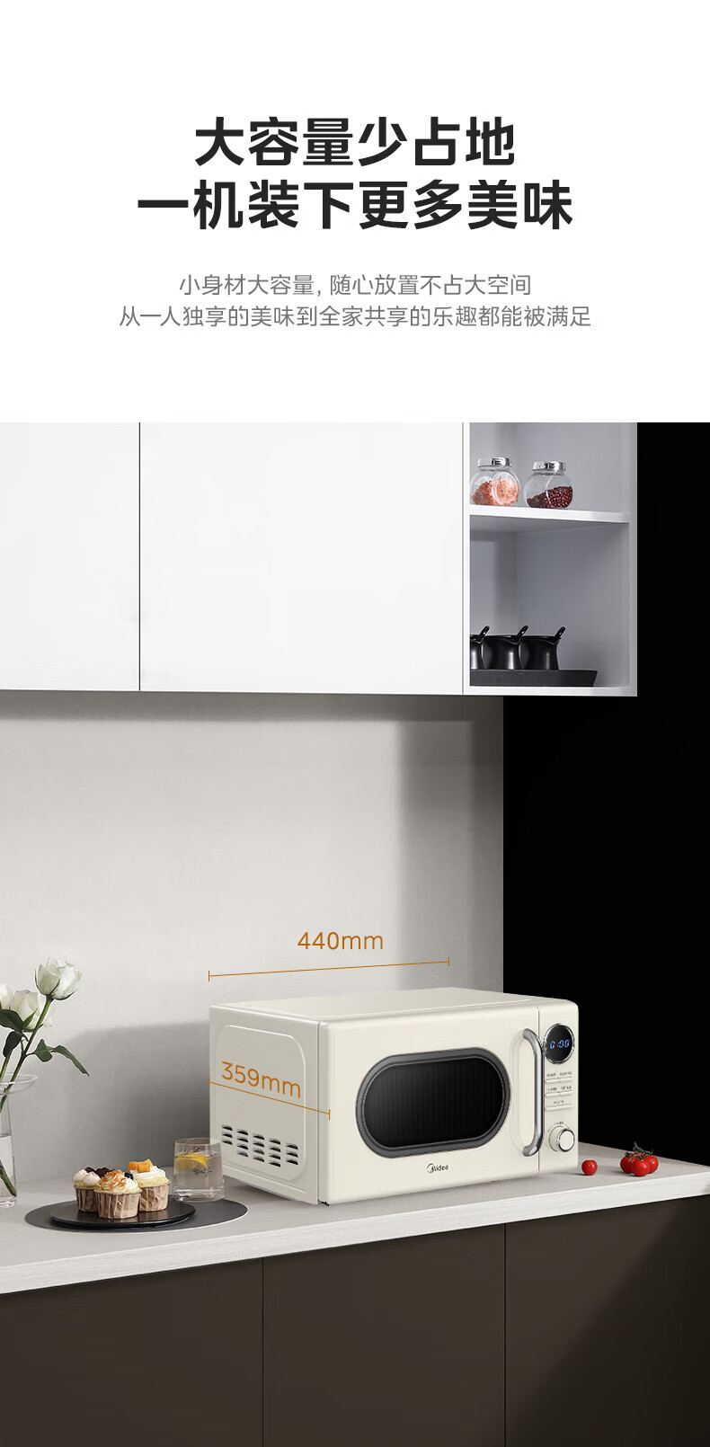 美的微波炉变频家用小型奶油风复古转盘式一级能效M2H1/M2H2/M2F