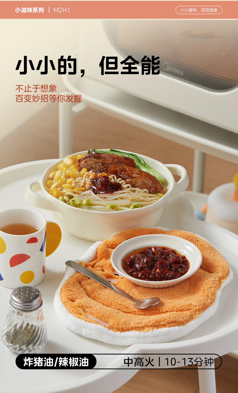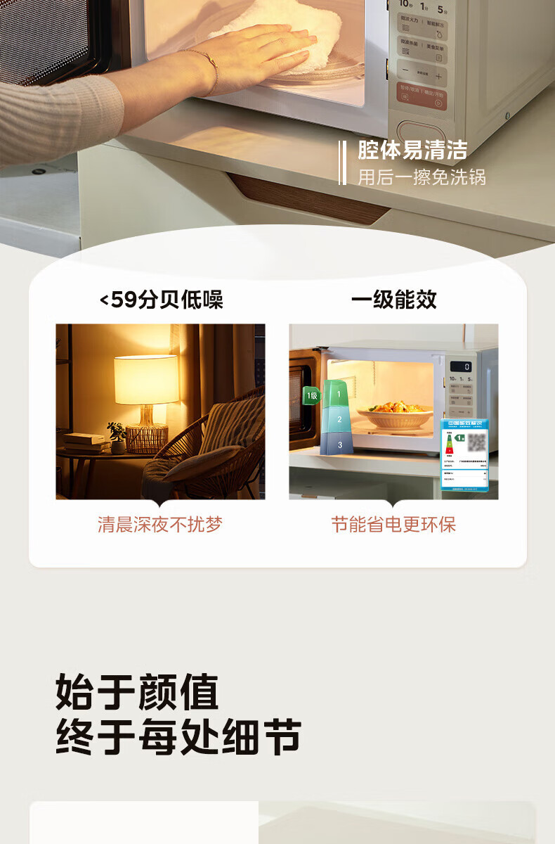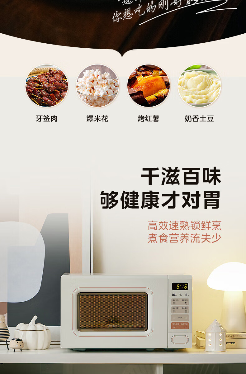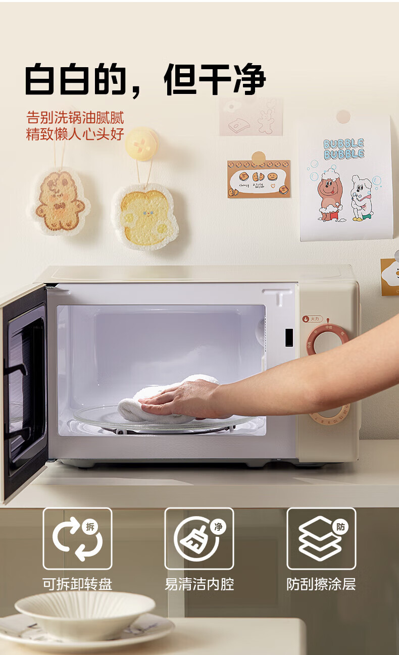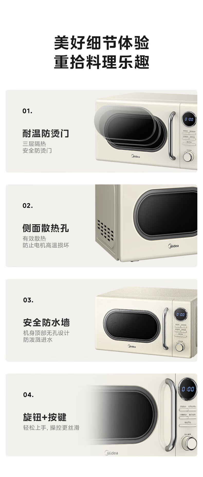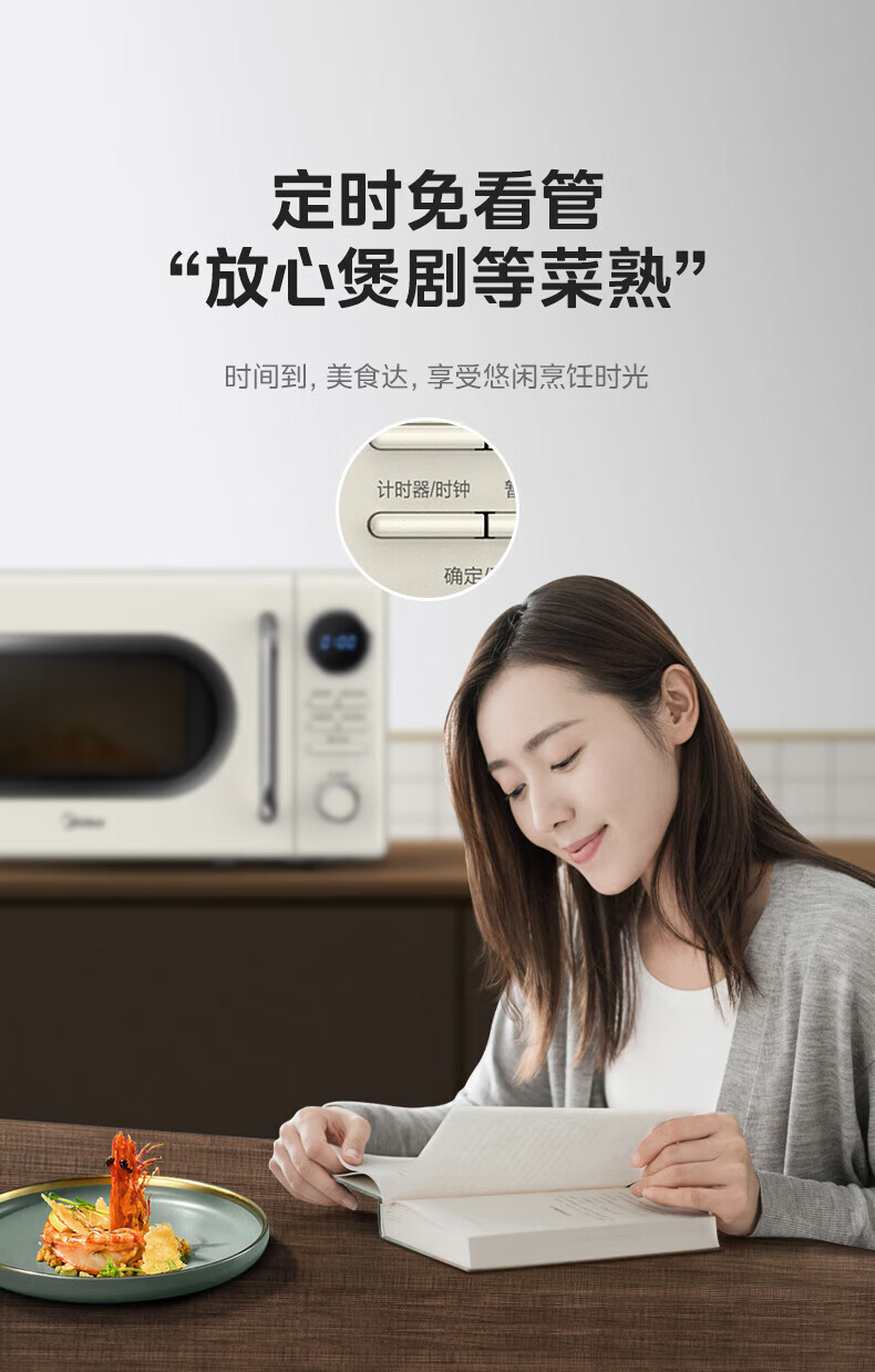 美的微波炉变频家用小型奶油风复古转盘式一级能效M2H1/M2H2/M2F