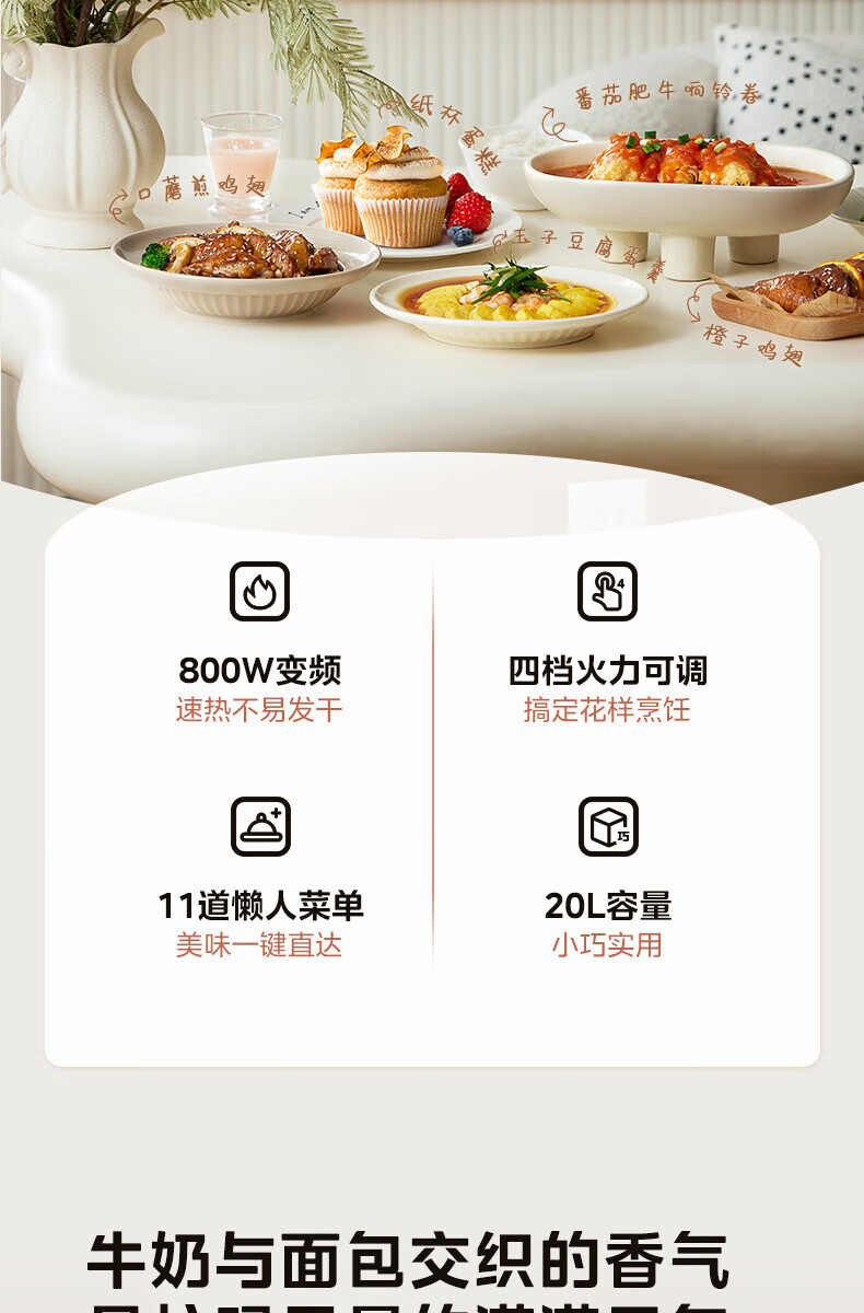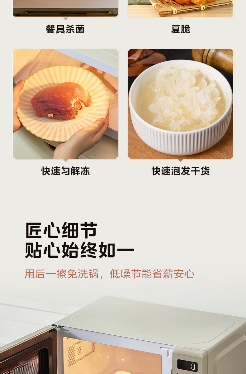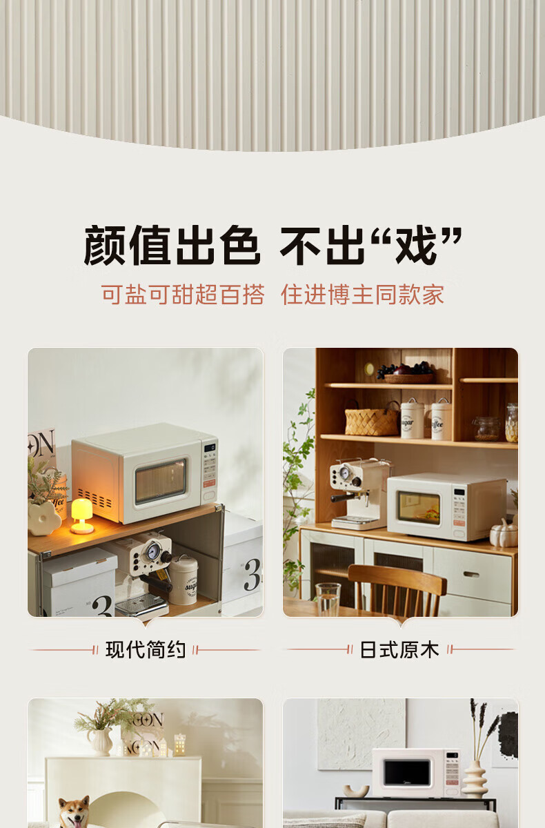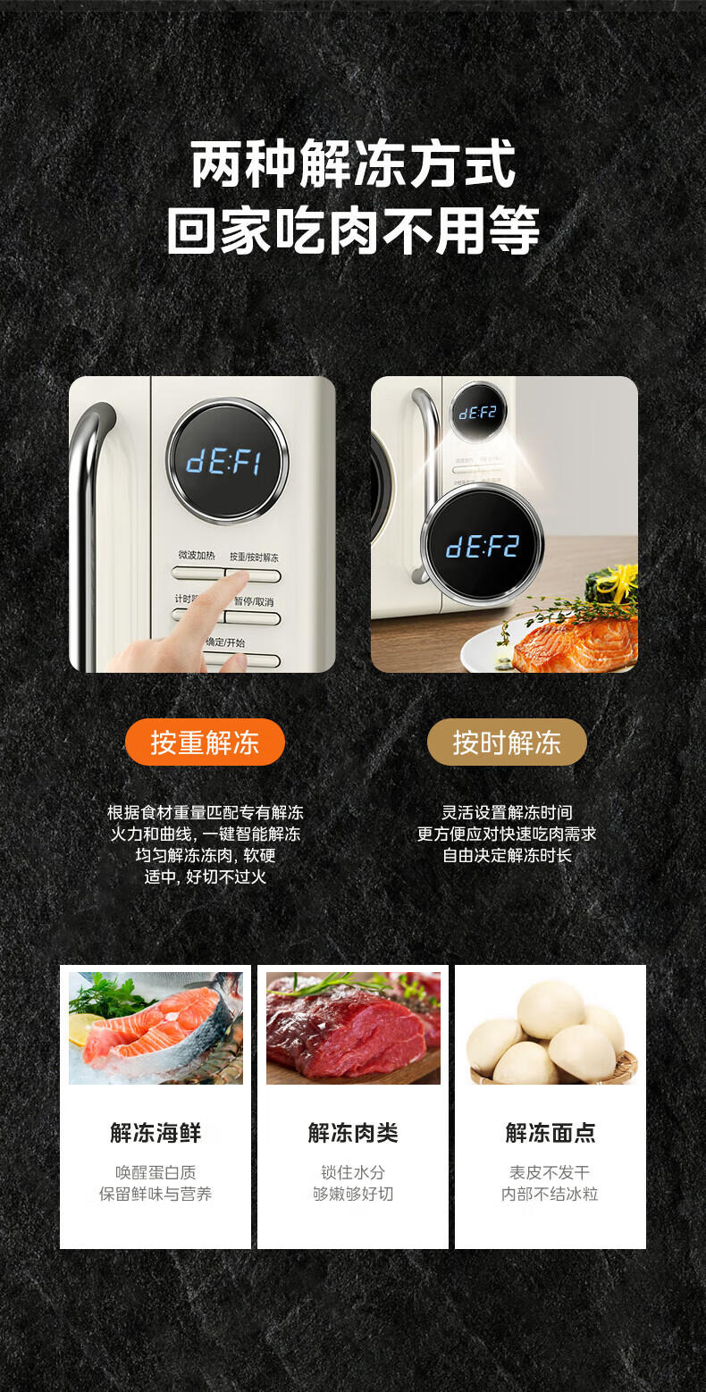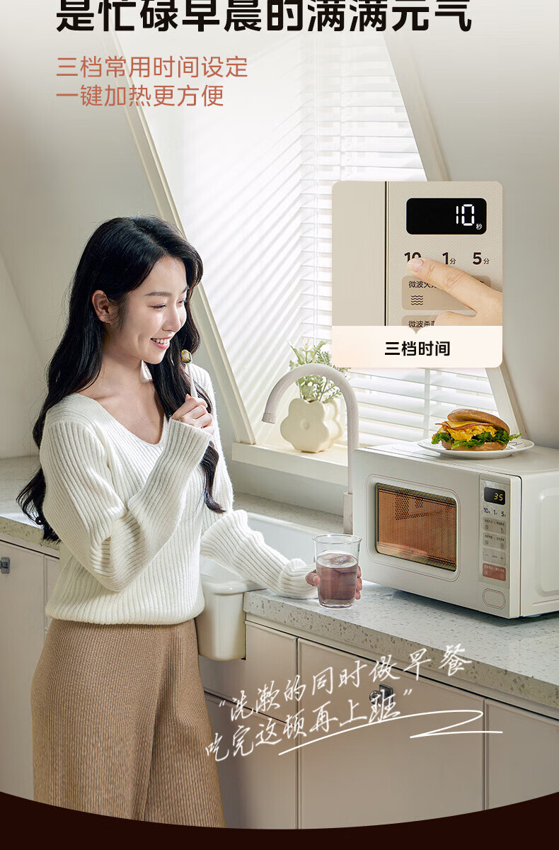 美的微波炉变频家用小型奶油风复古转盘式一级能效M2H1/M2H2/M2F