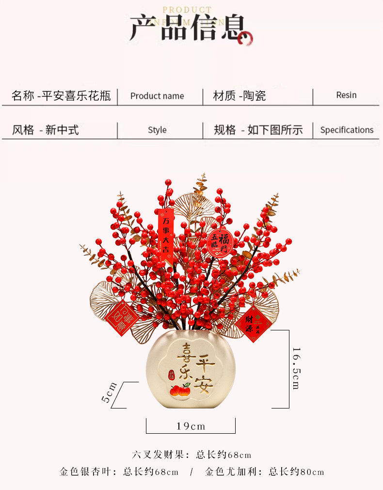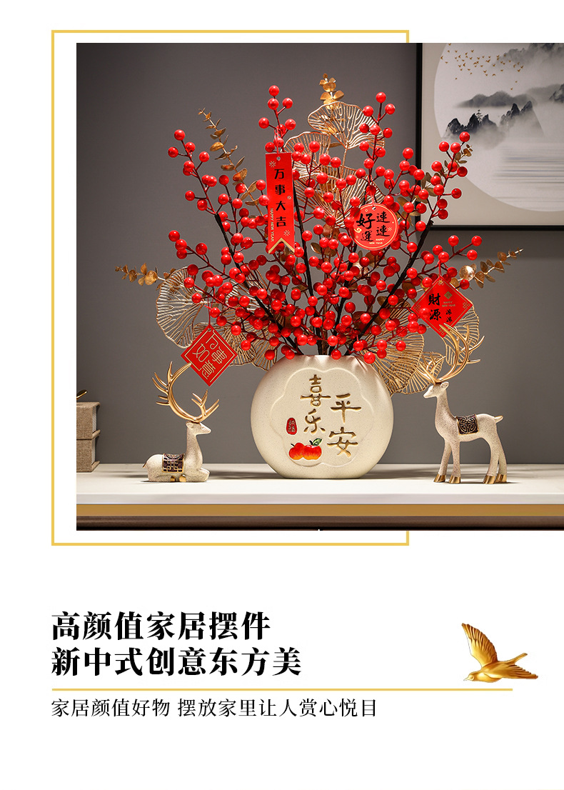 新中式玄关装饰摆件客厅乔迁结婚新居布置喜庆平安喜乐发财果礼物