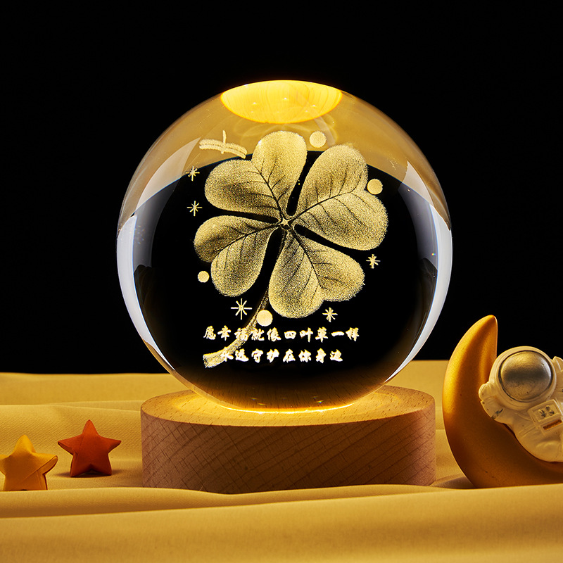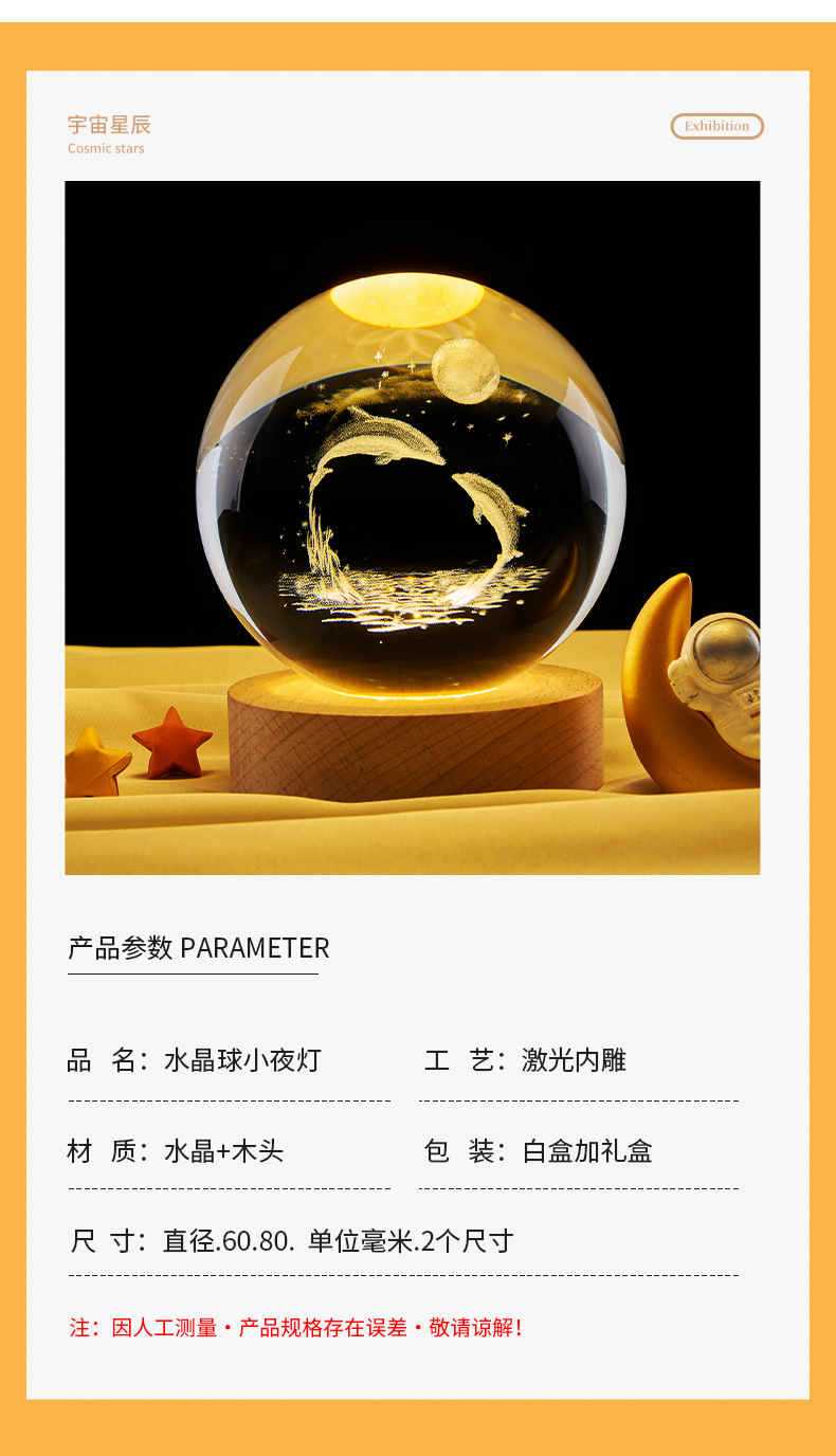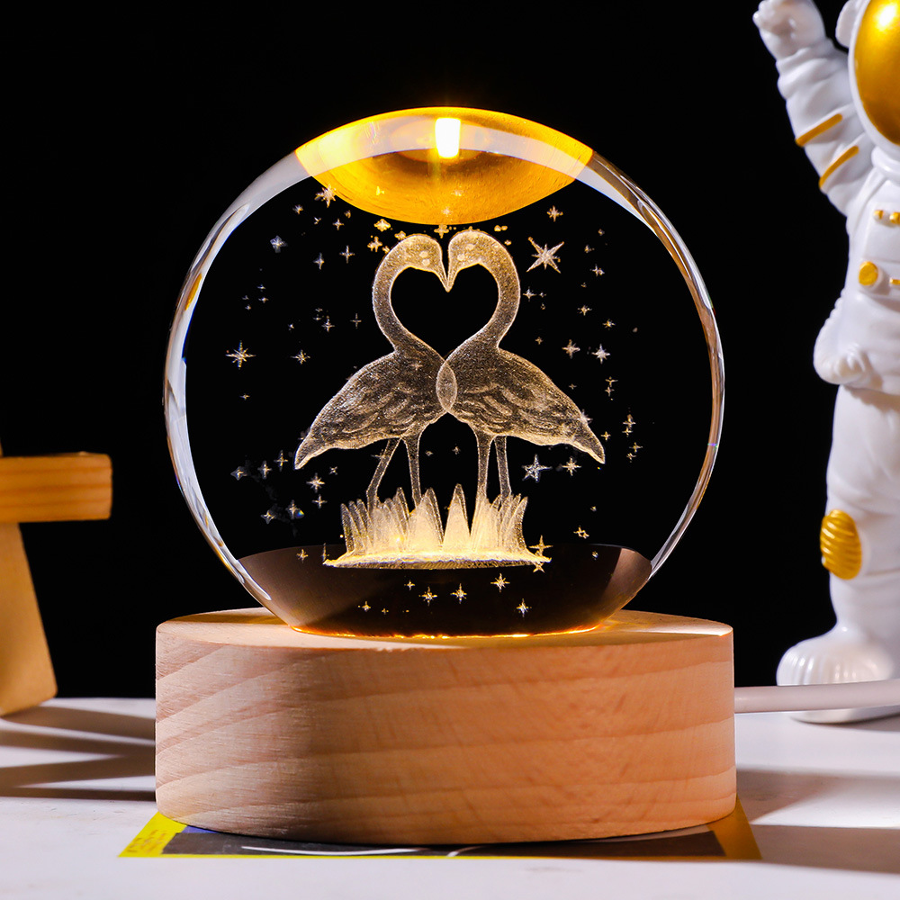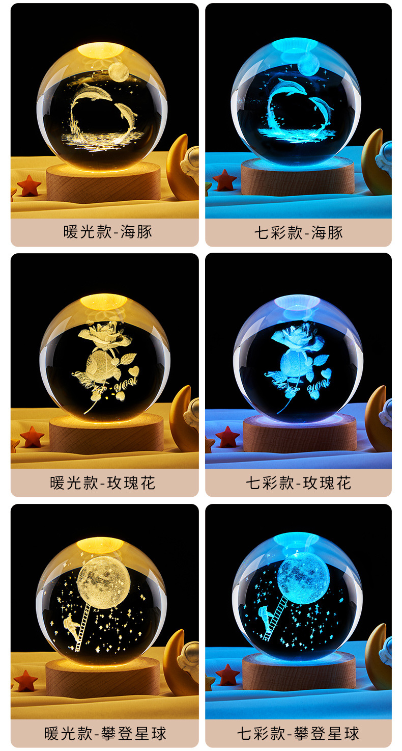 跨境批发水晶球内雕太阳系星空小夜灯彩光木质装饰玻璃球桌面摆件