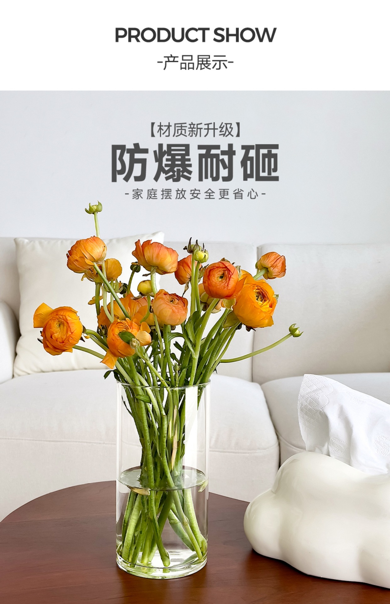 直筒塑料亚克力圆柱花瓶ns创意居家透明花瓶摆件高级感亚克力透明