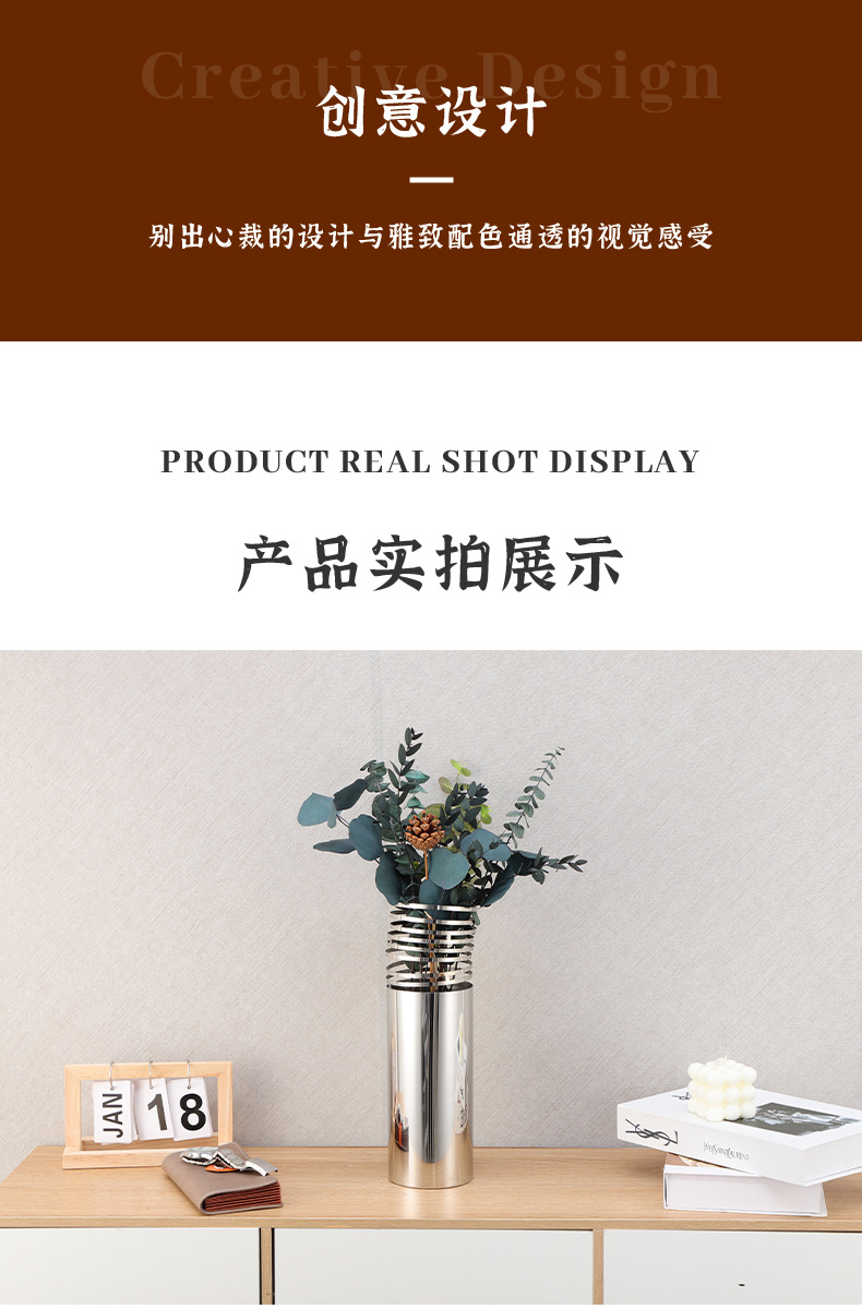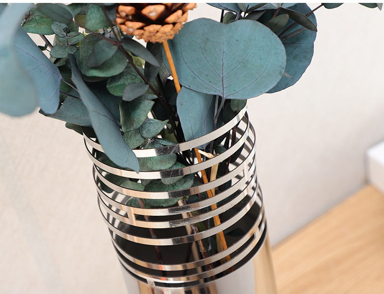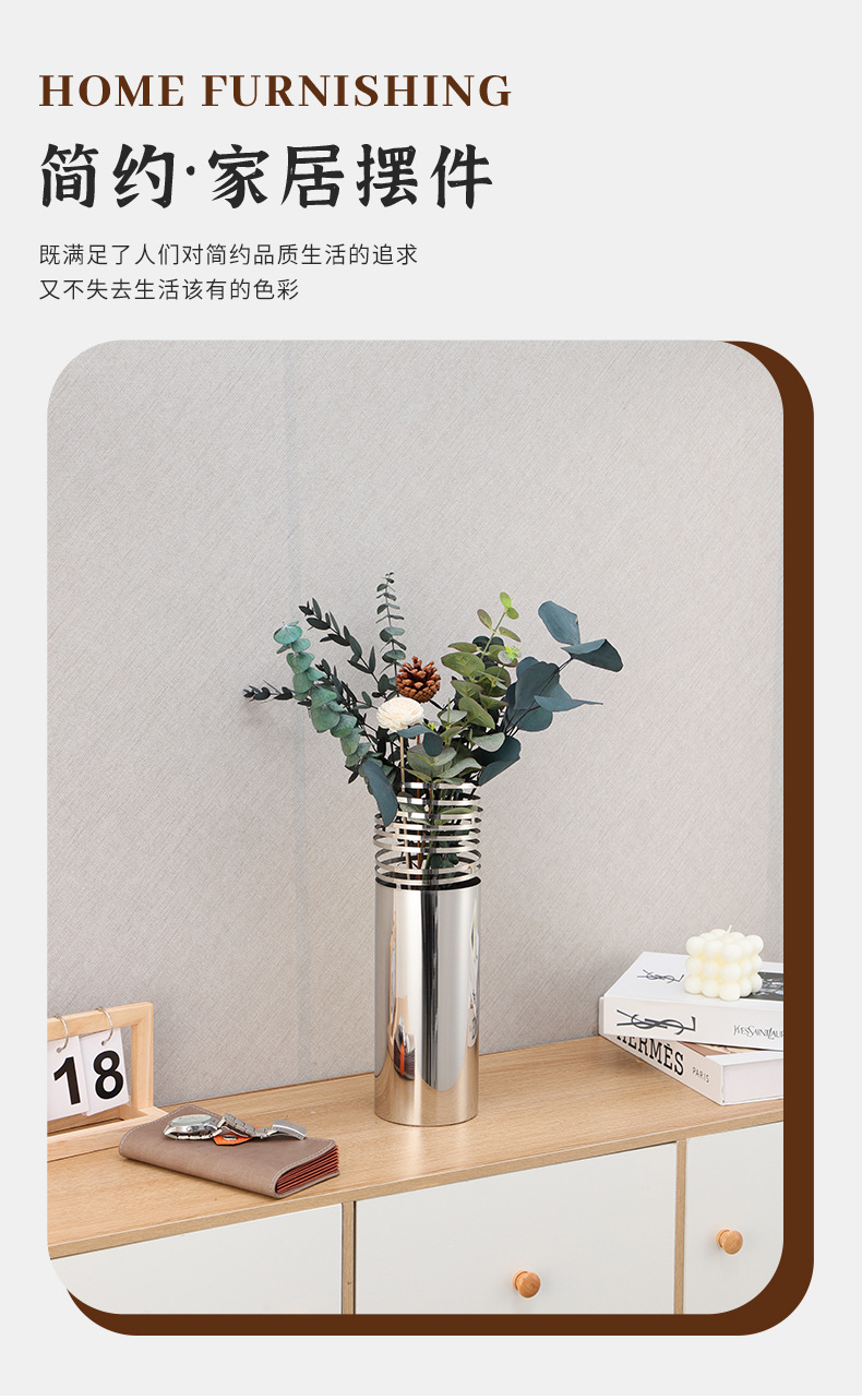 现代轻奢不锈钢魔术环花器样板房玄关家居艺术花瓶摆件简约装饰品