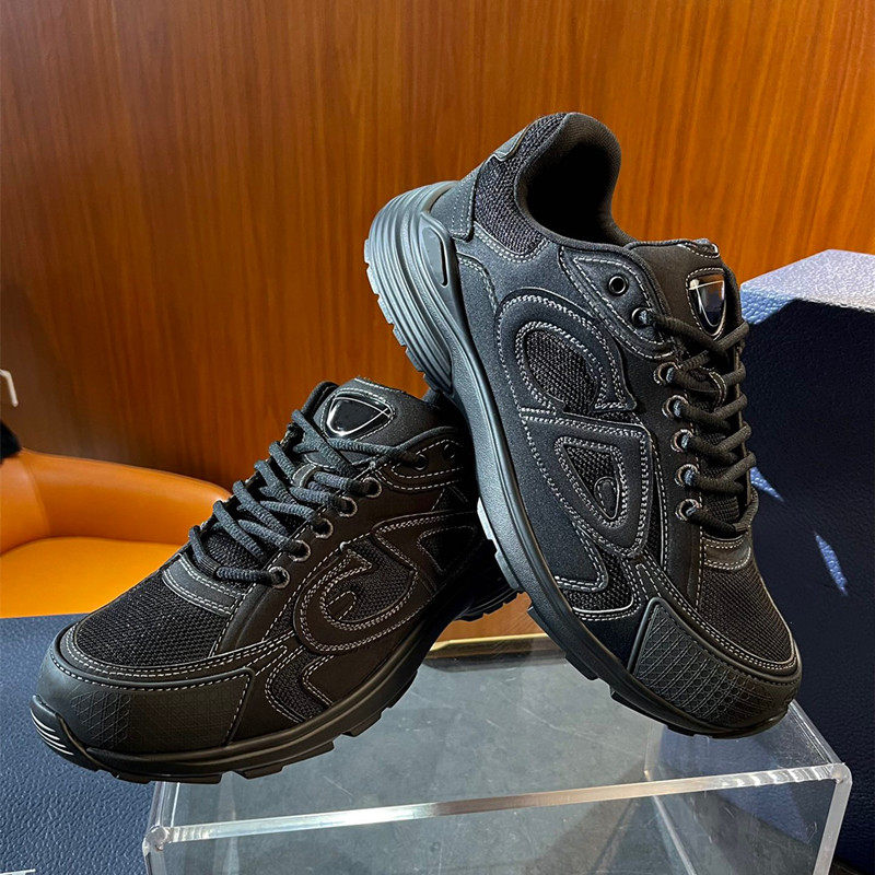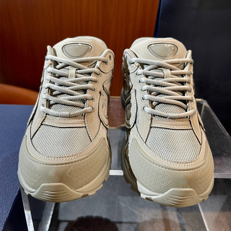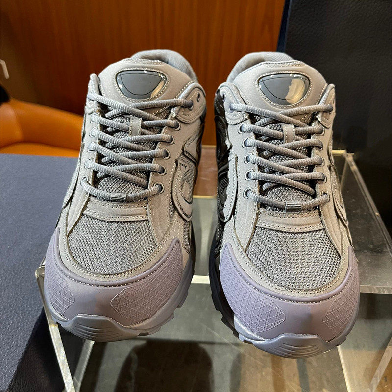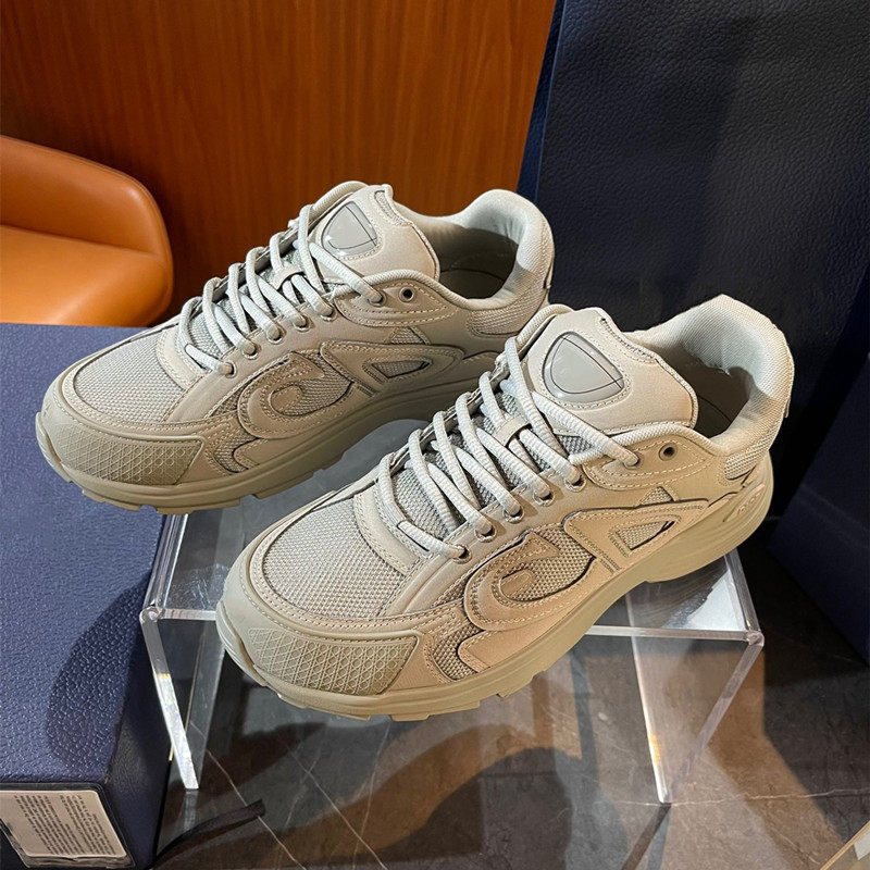 2024联名款男士休闲运动鞋系带厚底牛皮拼接透气网纱时尚百搭板鞋