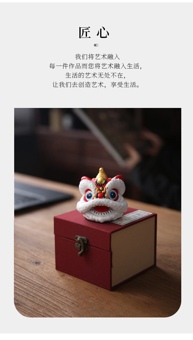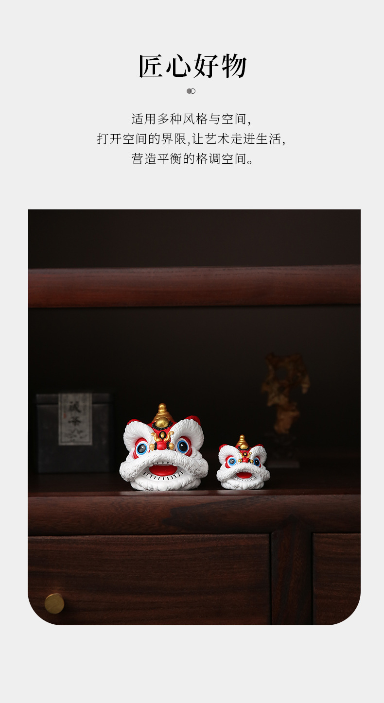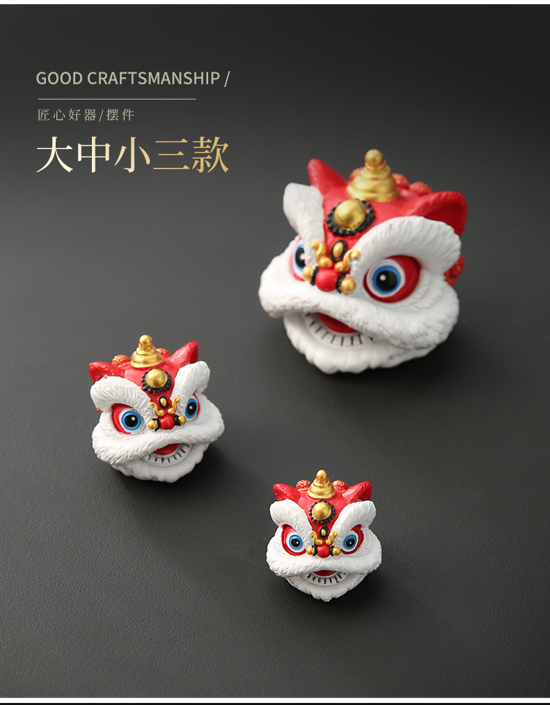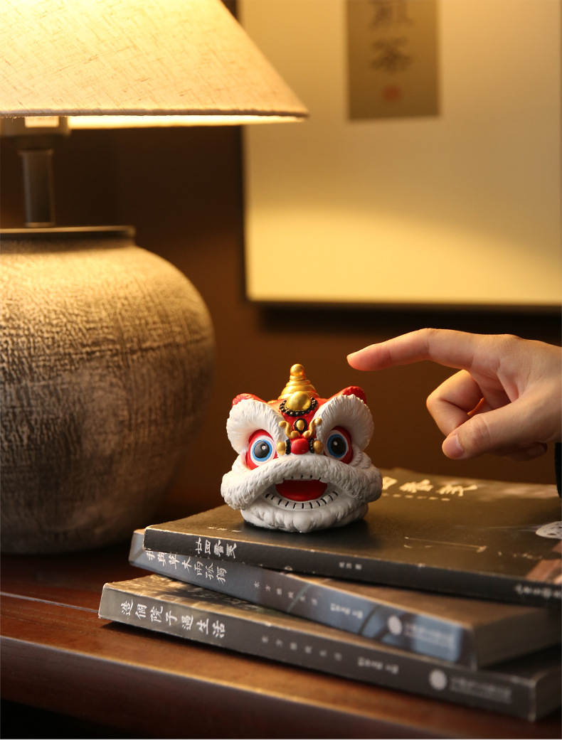 中国风红色狮子头舞狮醒狮小摆件桌面装饰品创意佛山文创生日礼物