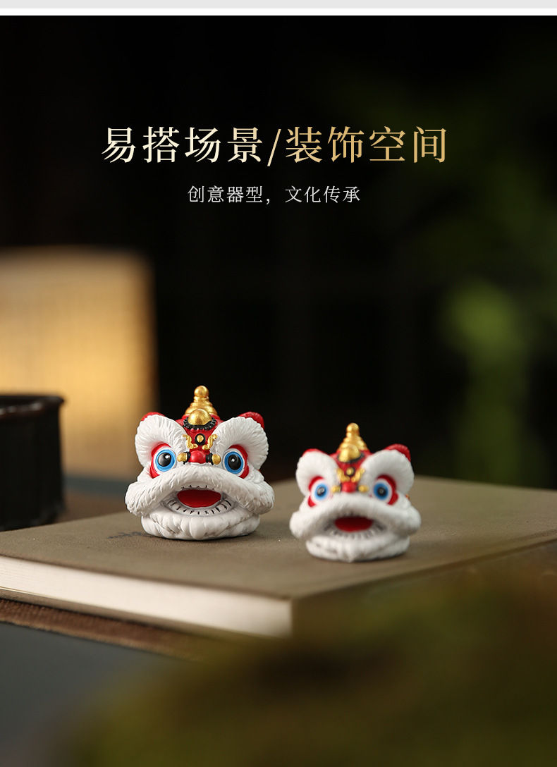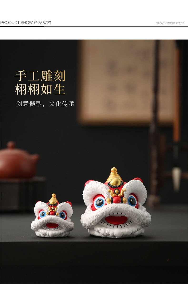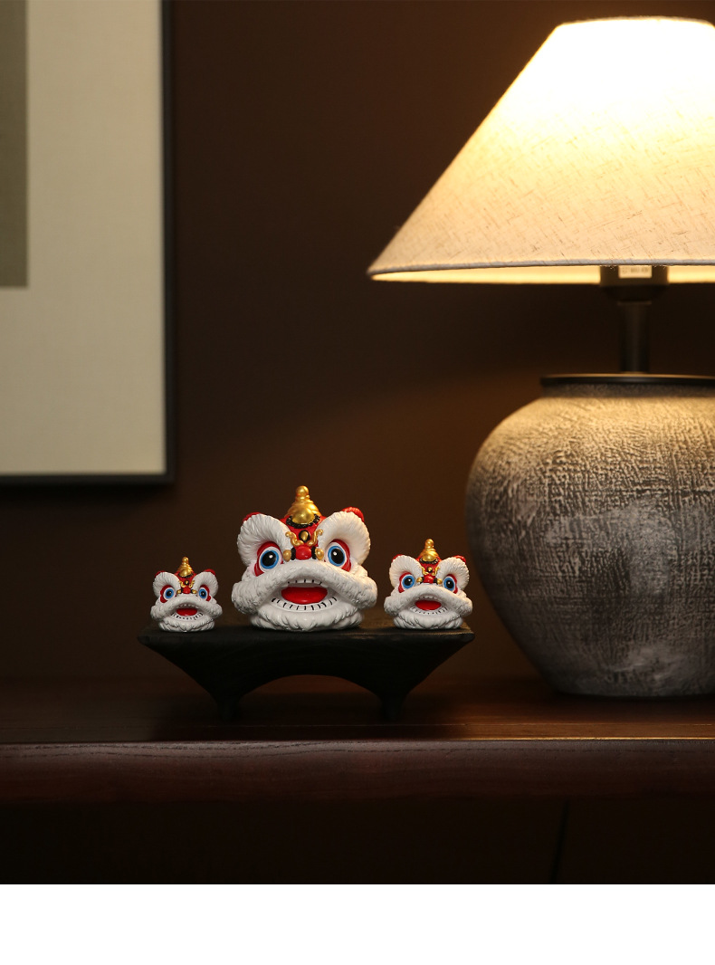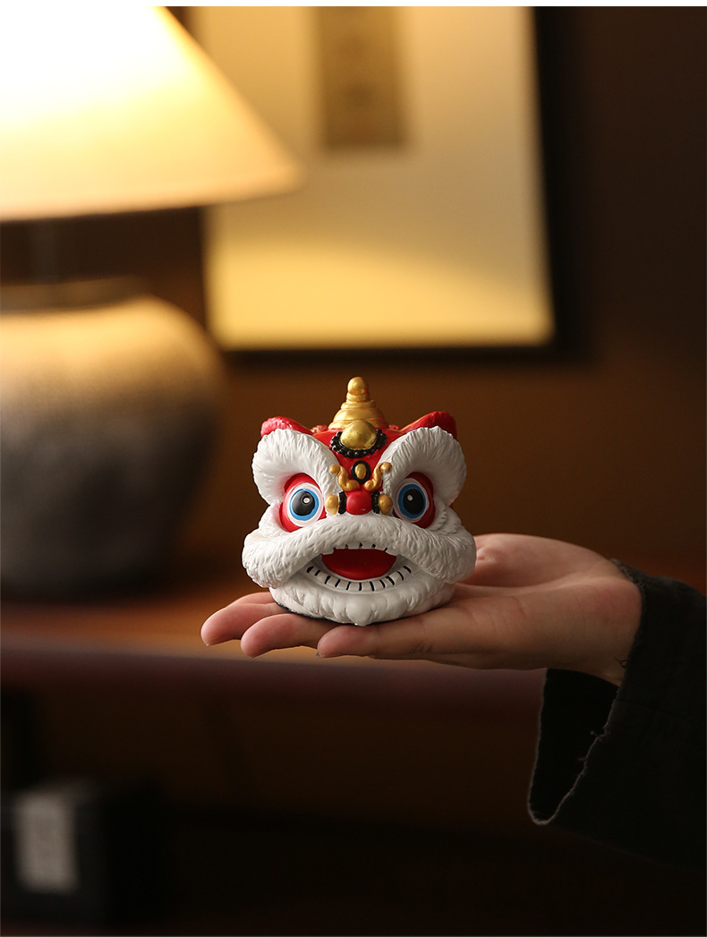 中国风红色狮子头舞狮醒狮小摆件桌面装饰品创意佛山文创生日礼物