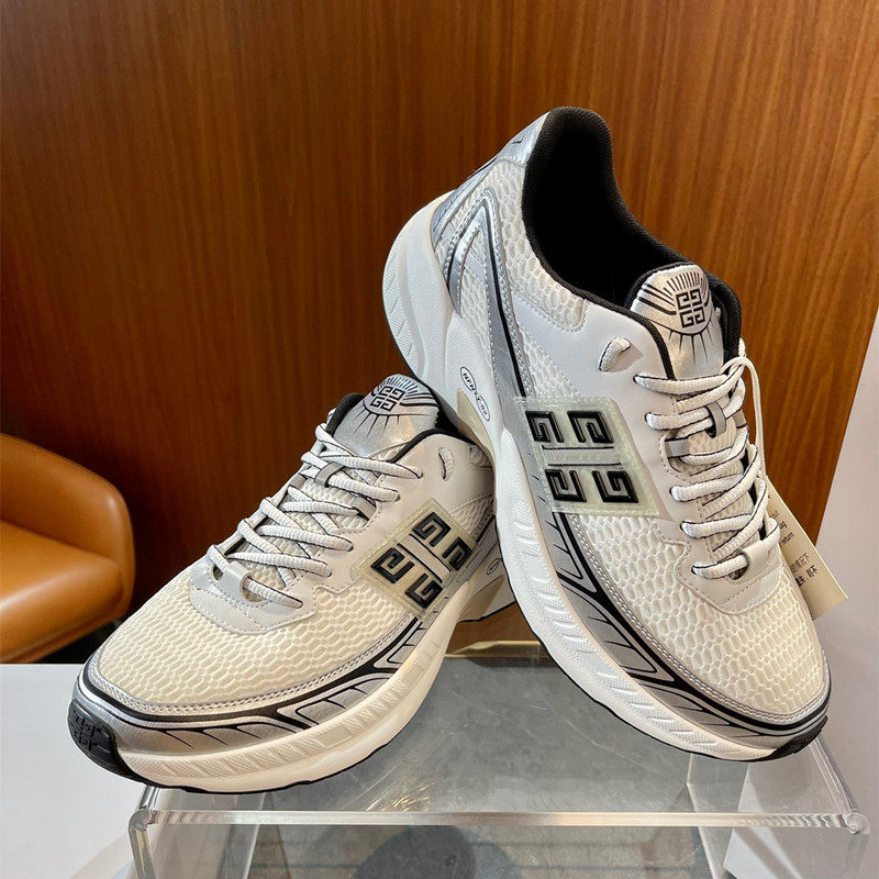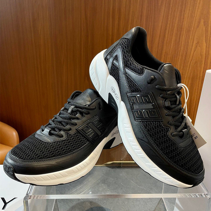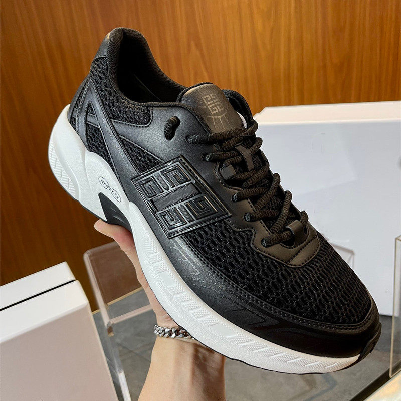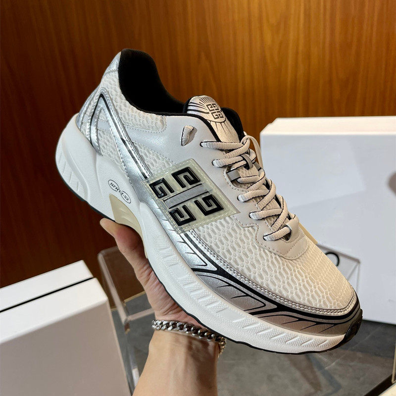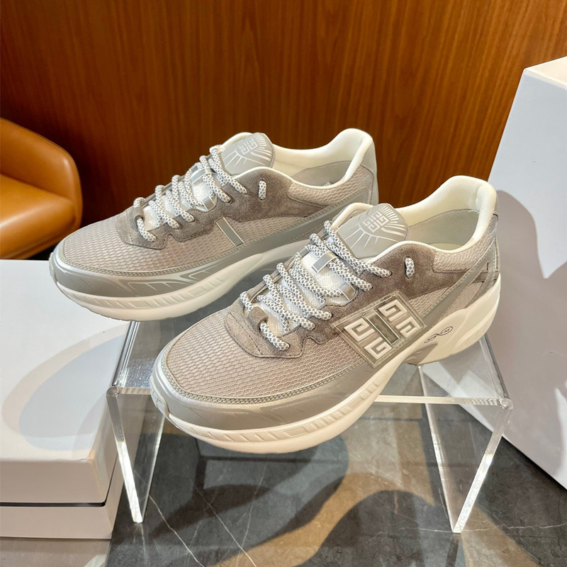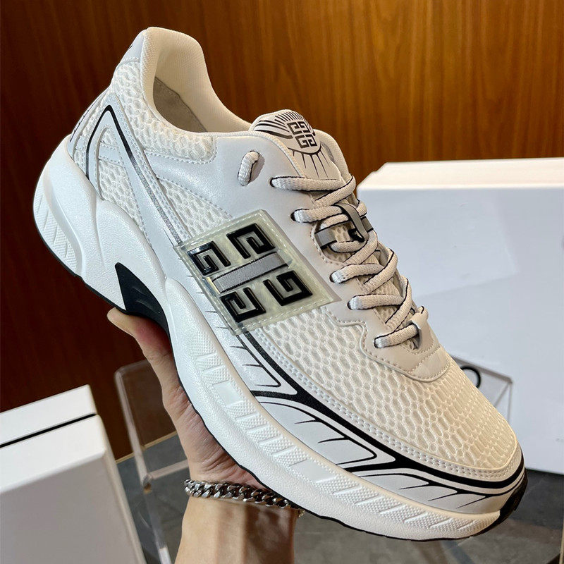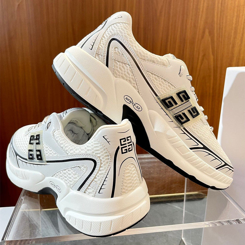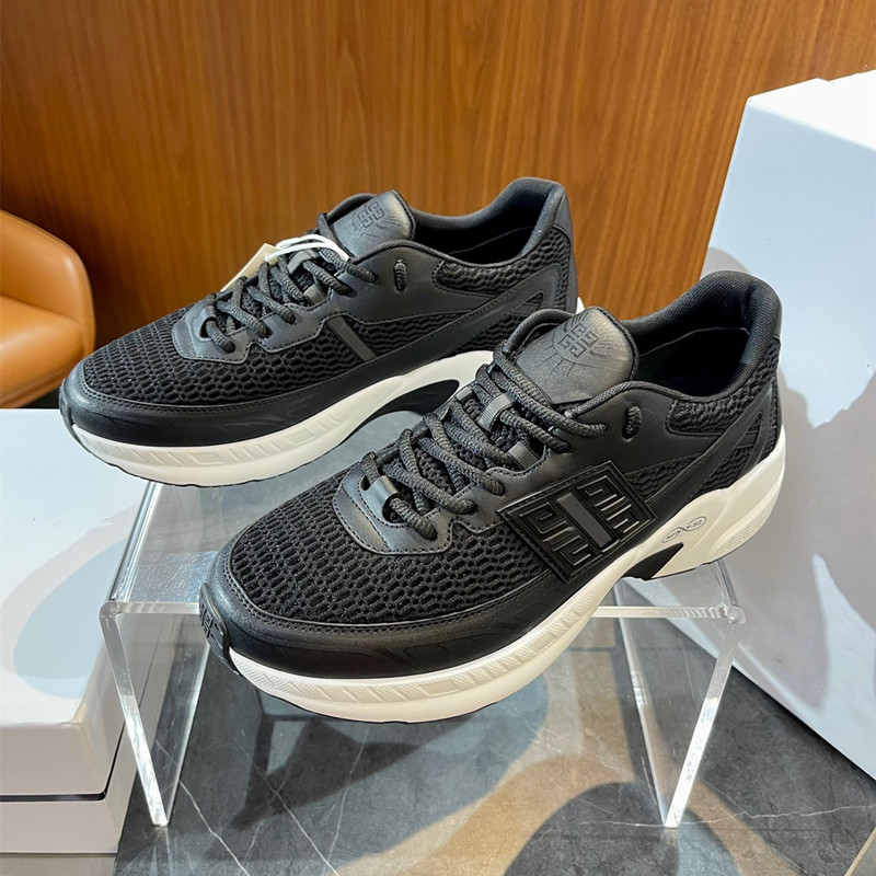 2024秋季新款男士运动休闲鞋真皮系带皮革拼接网纱时尚百搭男板鞋