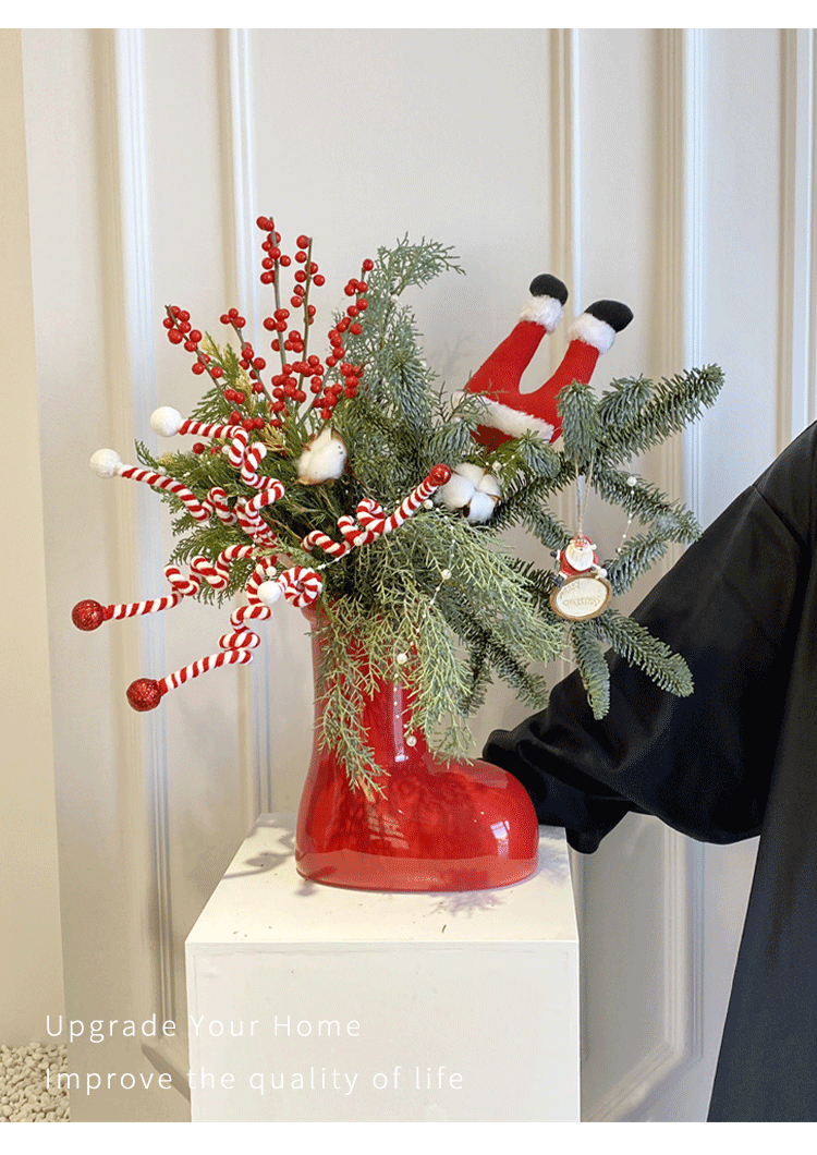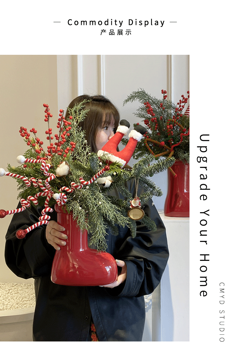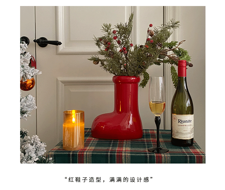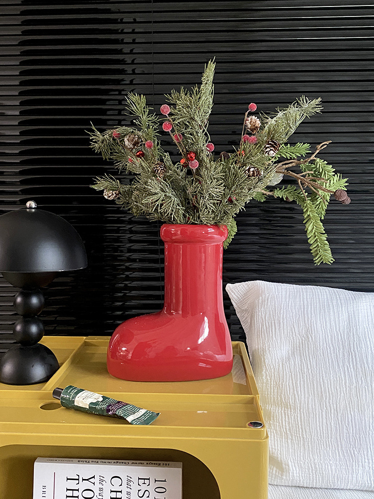 红鞋子陶瓷花瓶客厅家居电视柜创意摆件高颜值轻奢花器干花插花瓶