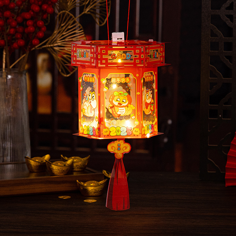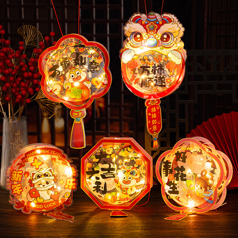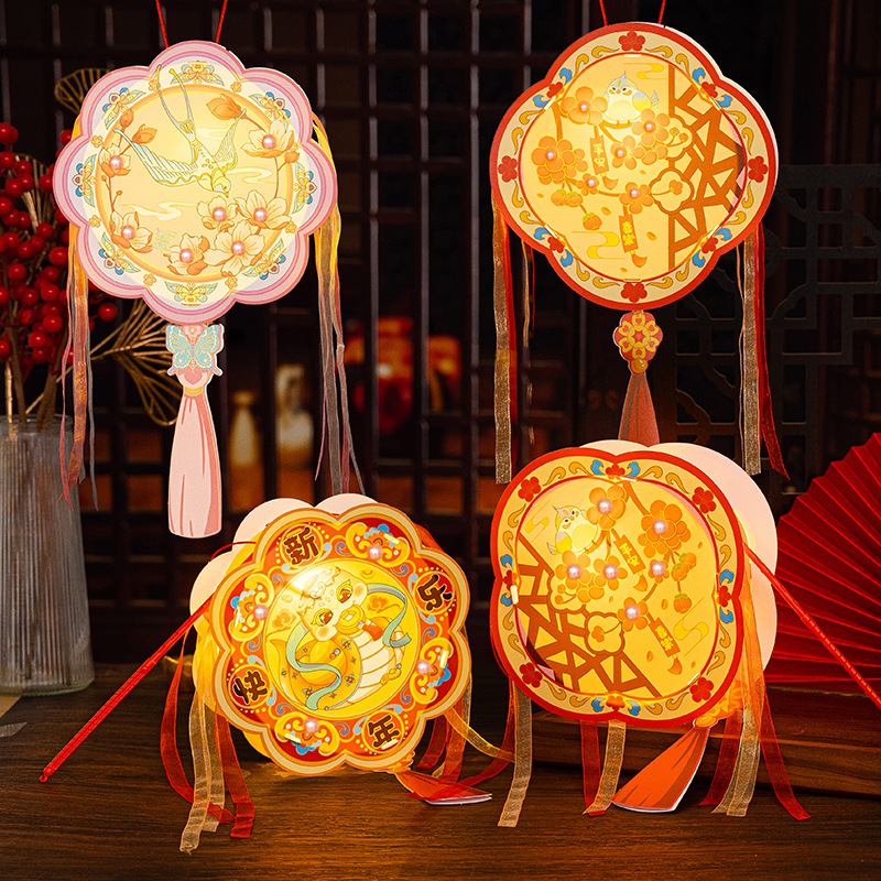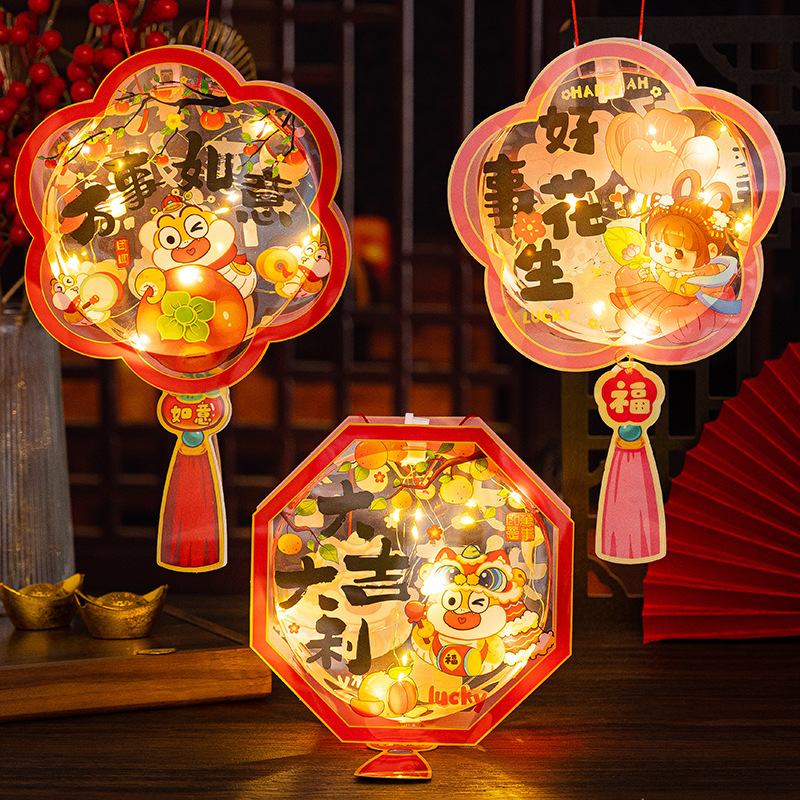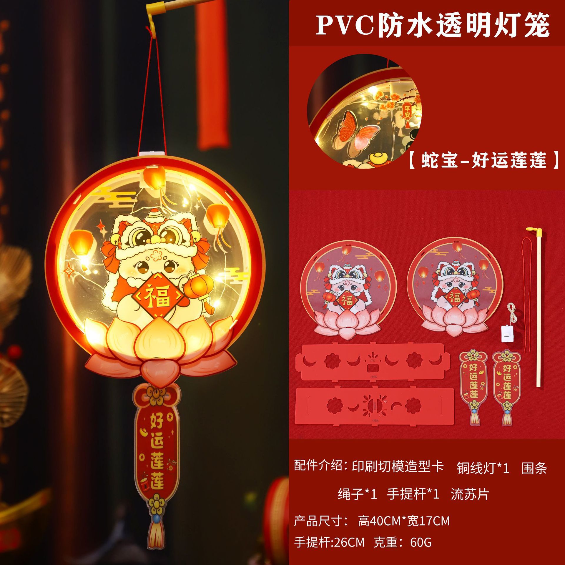 2025蛇年新年PVC灯笼手提卡通宫灯夜市摆摊发光灯笼DIY手工材料包