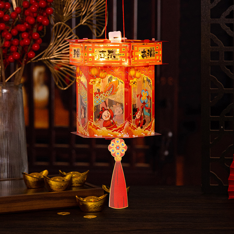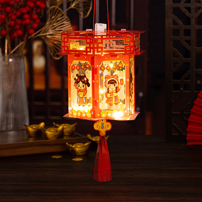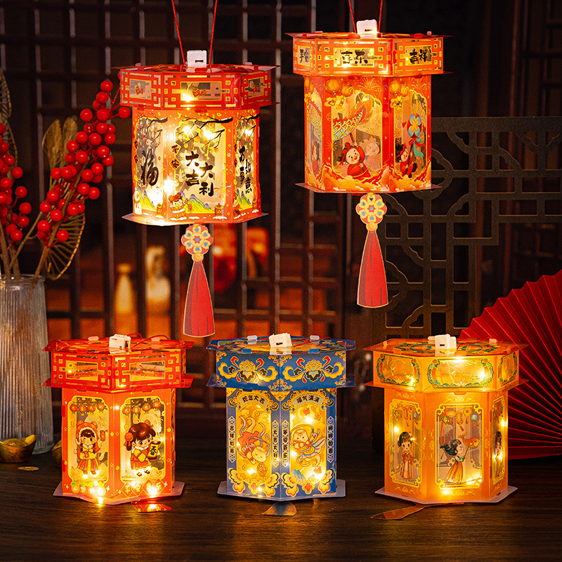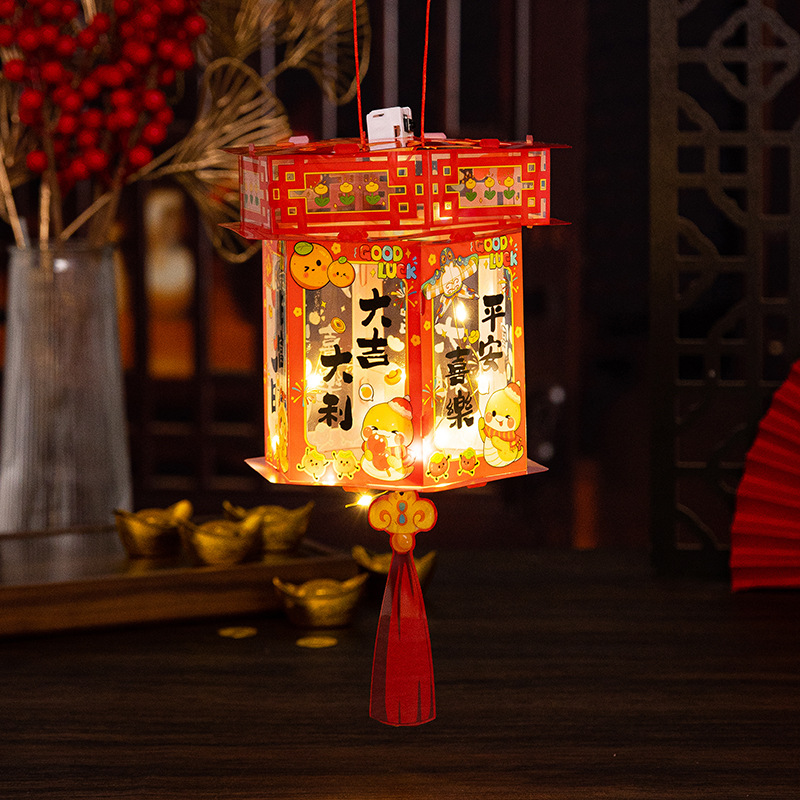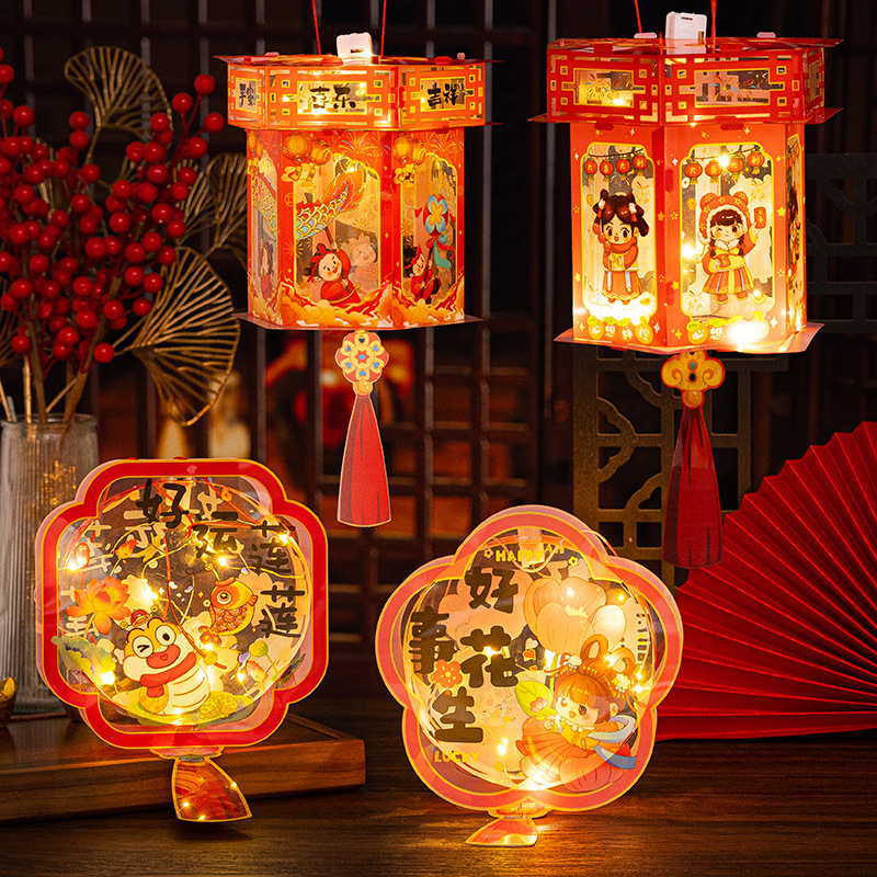 2025蛇年新年PVC灯笼手提卡通宫灯夜市摆摊发光灯笼DIY手工材料包