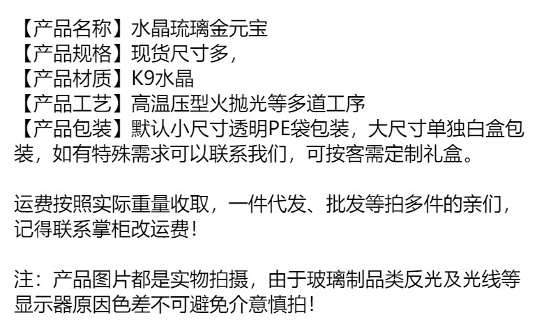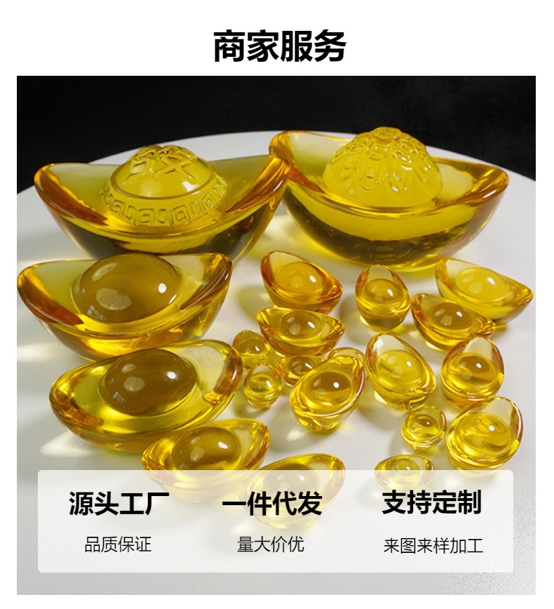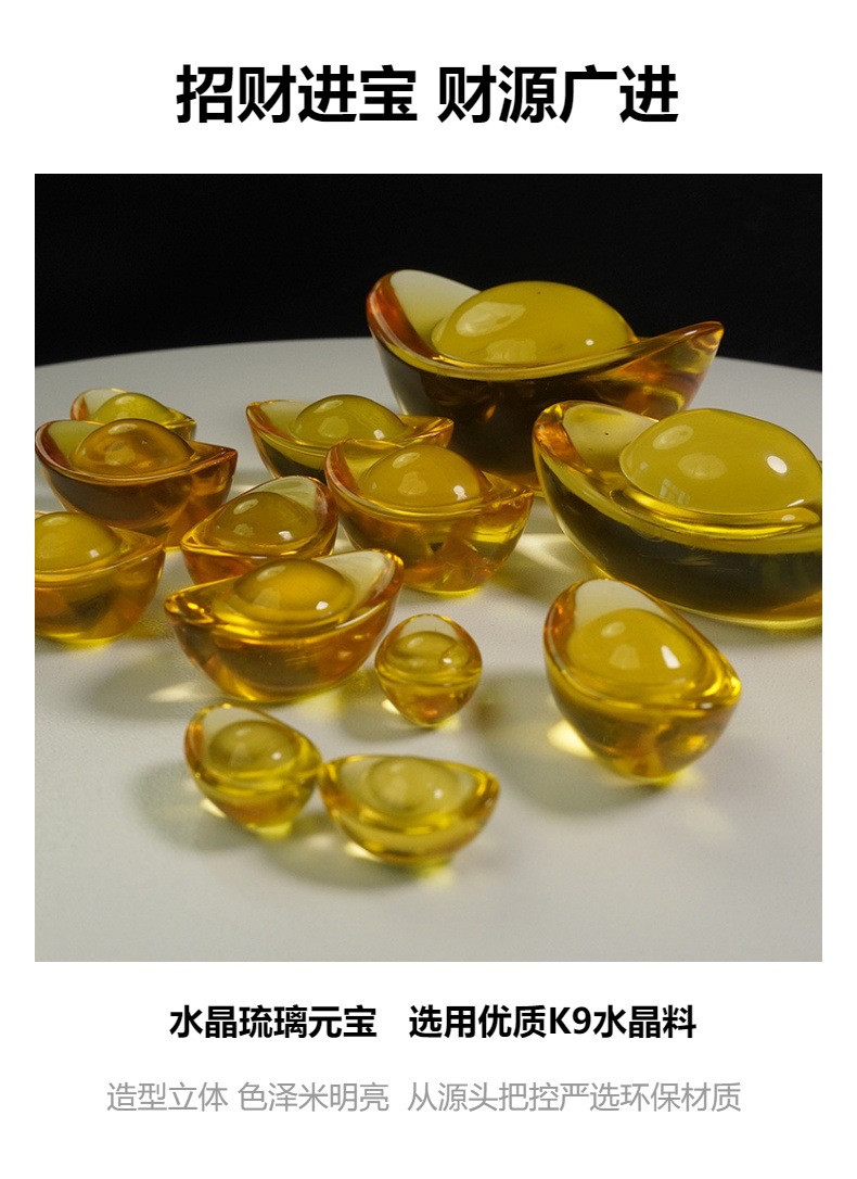 金黄小元宝水晶元宝摆件批发装饰开业礼品客厅摆件工艺品装饰品