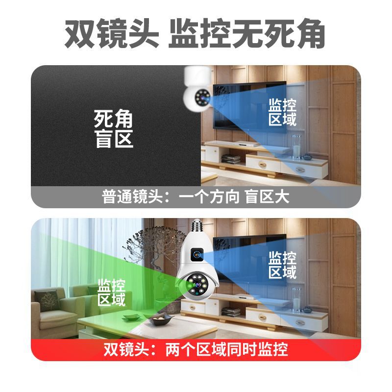 V380枪球联动双镜头E27灯头WiFi无线智能高清夜视跨境爆款监控器