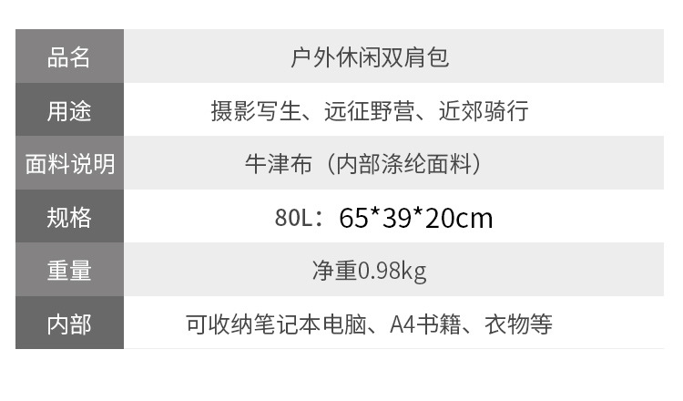 跨境户外运动健身双肩包大容量女行李背包旅游学生书包登山包70升