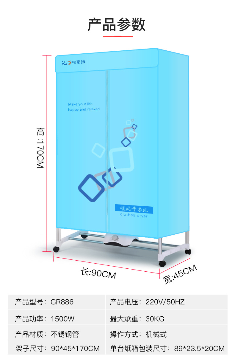 夏晴90宽加大版家用干衣机大容量大功率双层速干衣柜烘衣烘干机