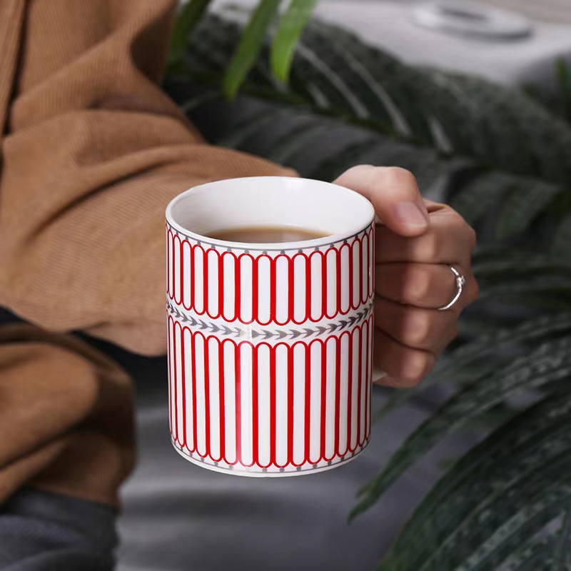条纹陶瓷马克杯高颜值办公室外贸大容量杯子婚庆伴手礼水杯咖啡杯