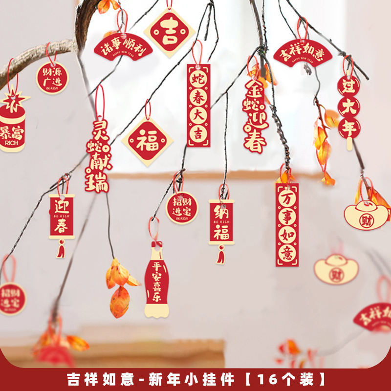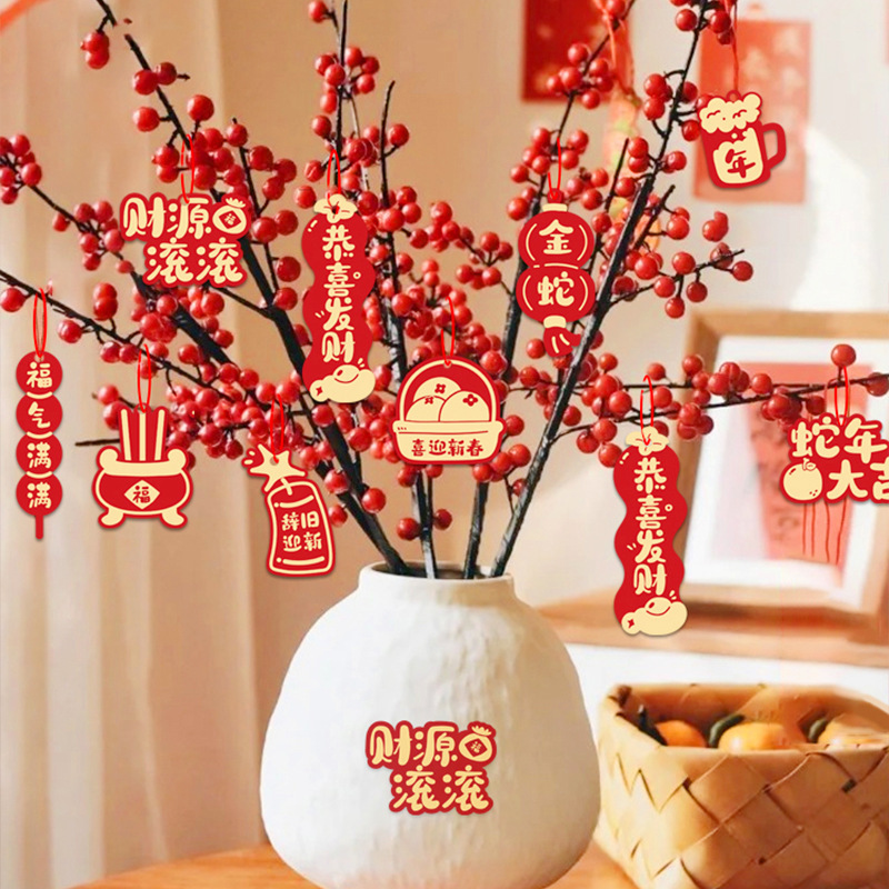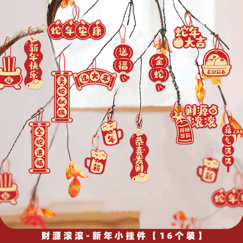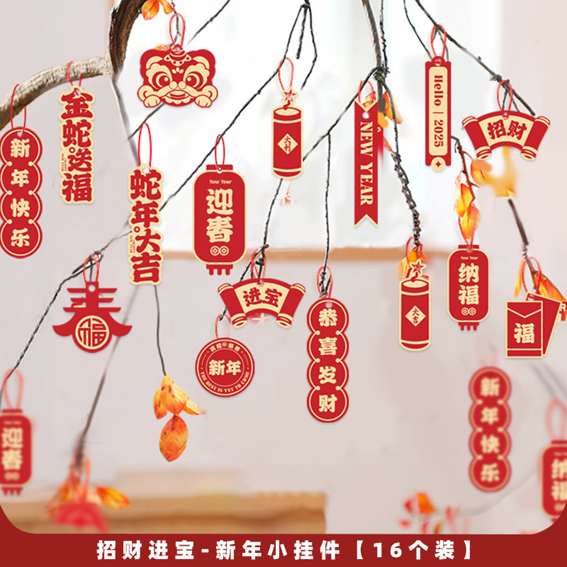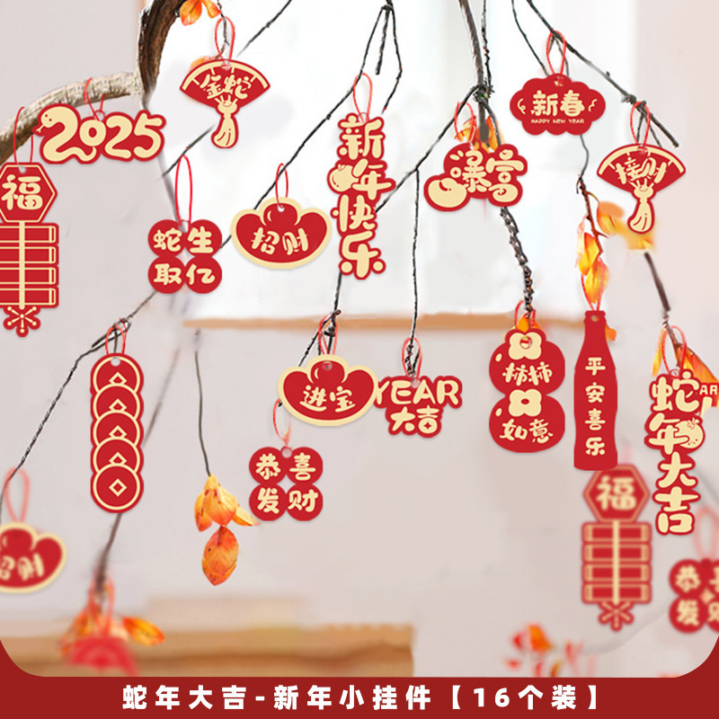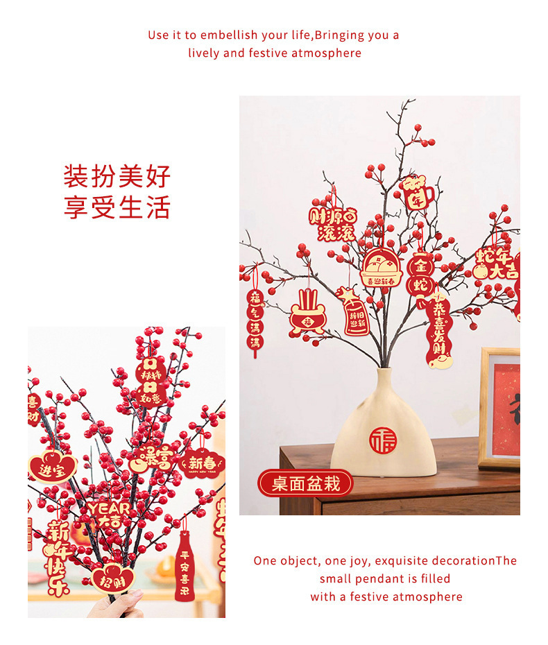 2025蛇年装饰挂件春节盆景布置新年过年挂饰树上绿植发财树吊饰