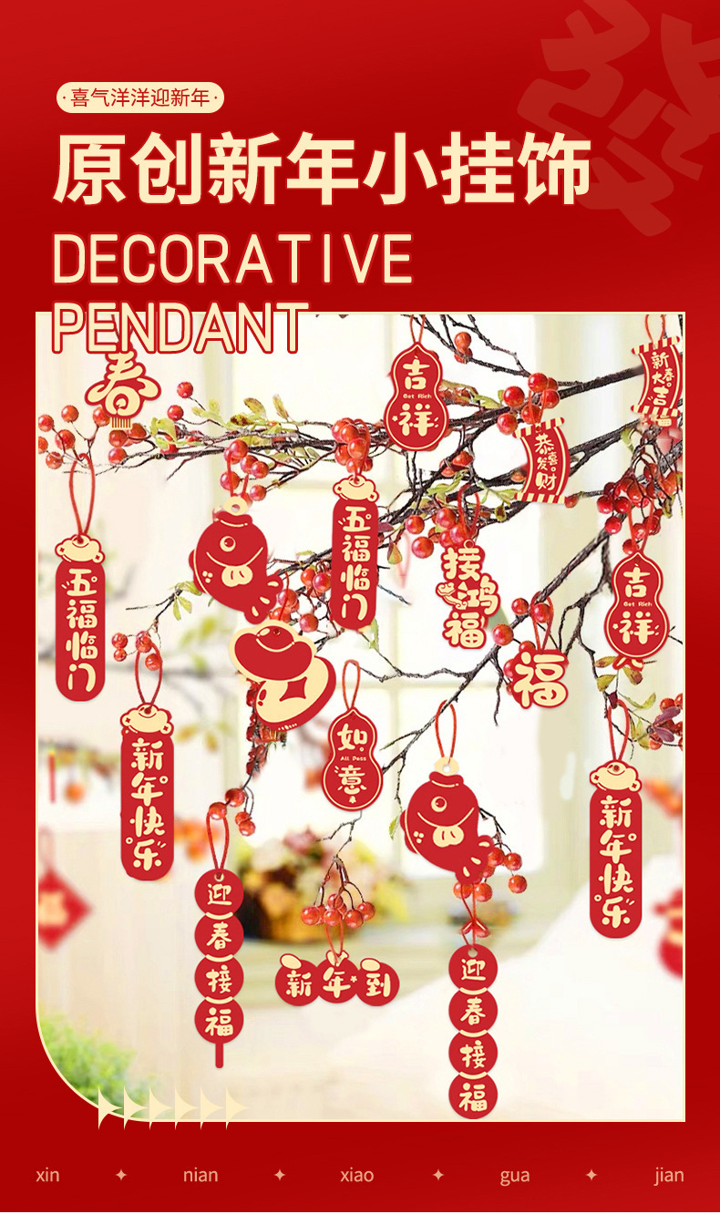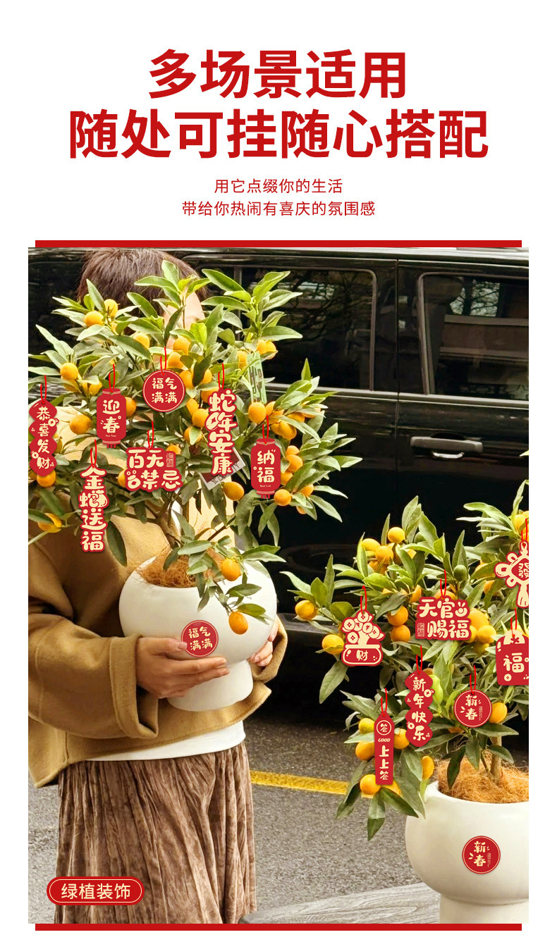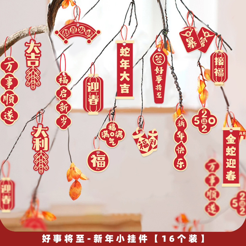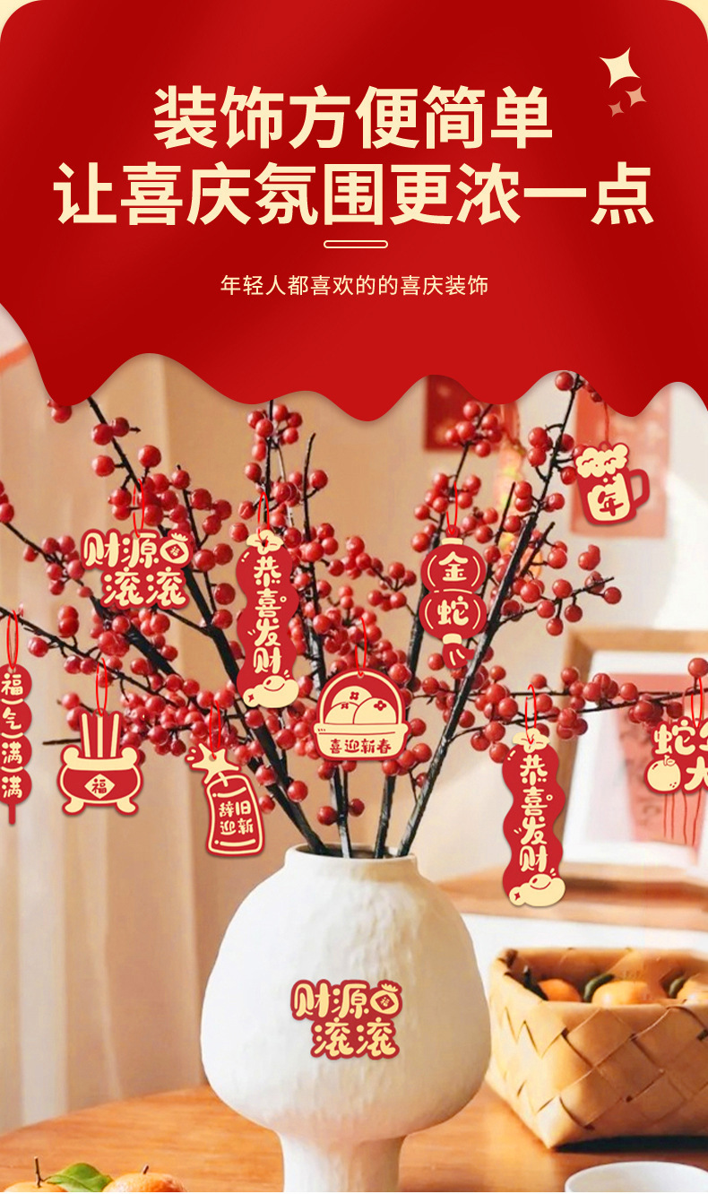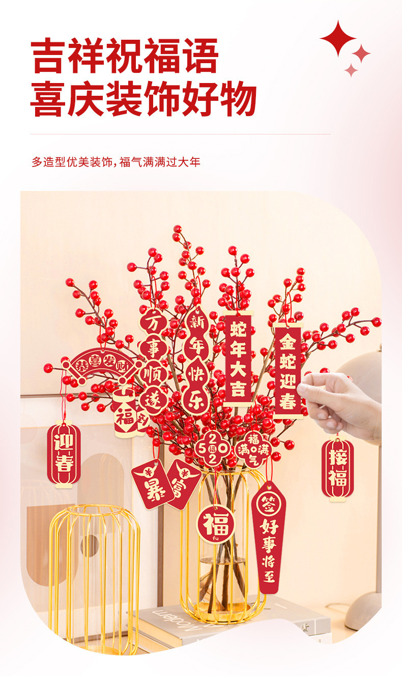 2025蛇年装饰挂件春节盆景布置新年过年挂饰树上绿植发财树吊饰