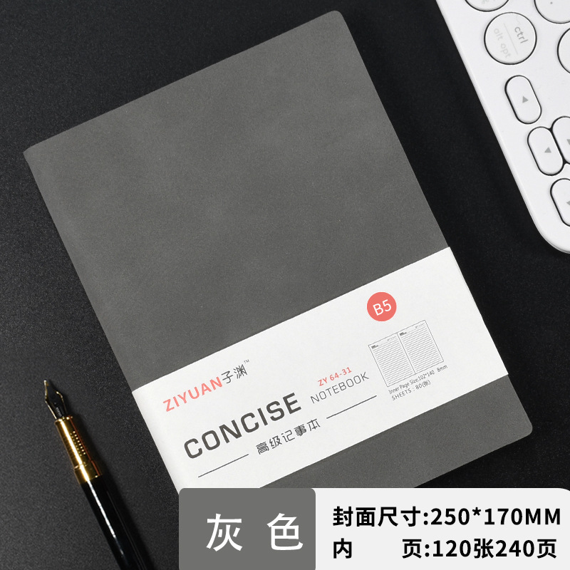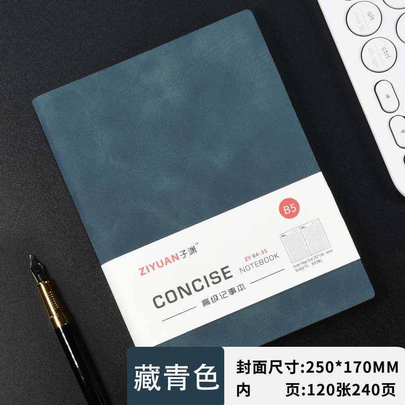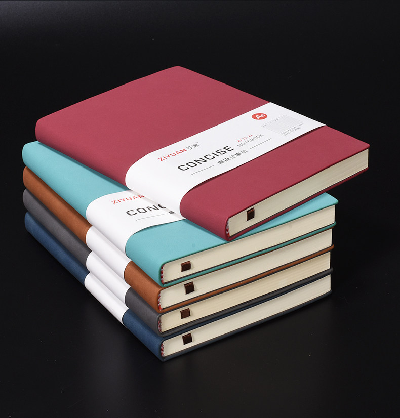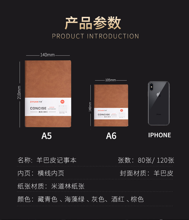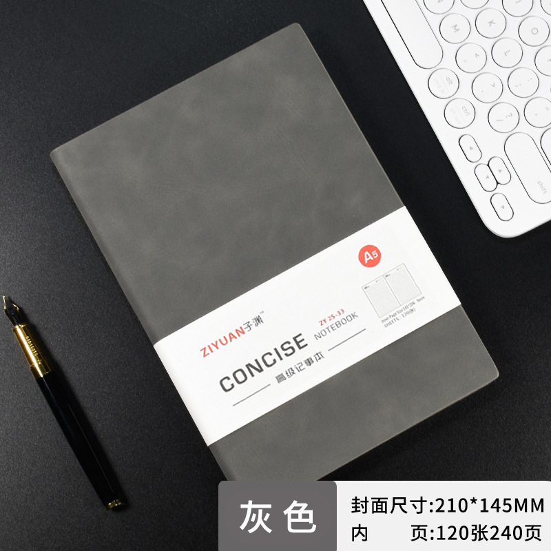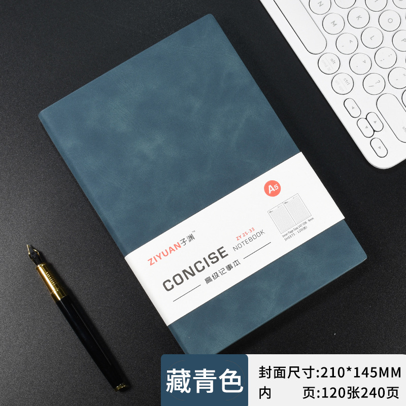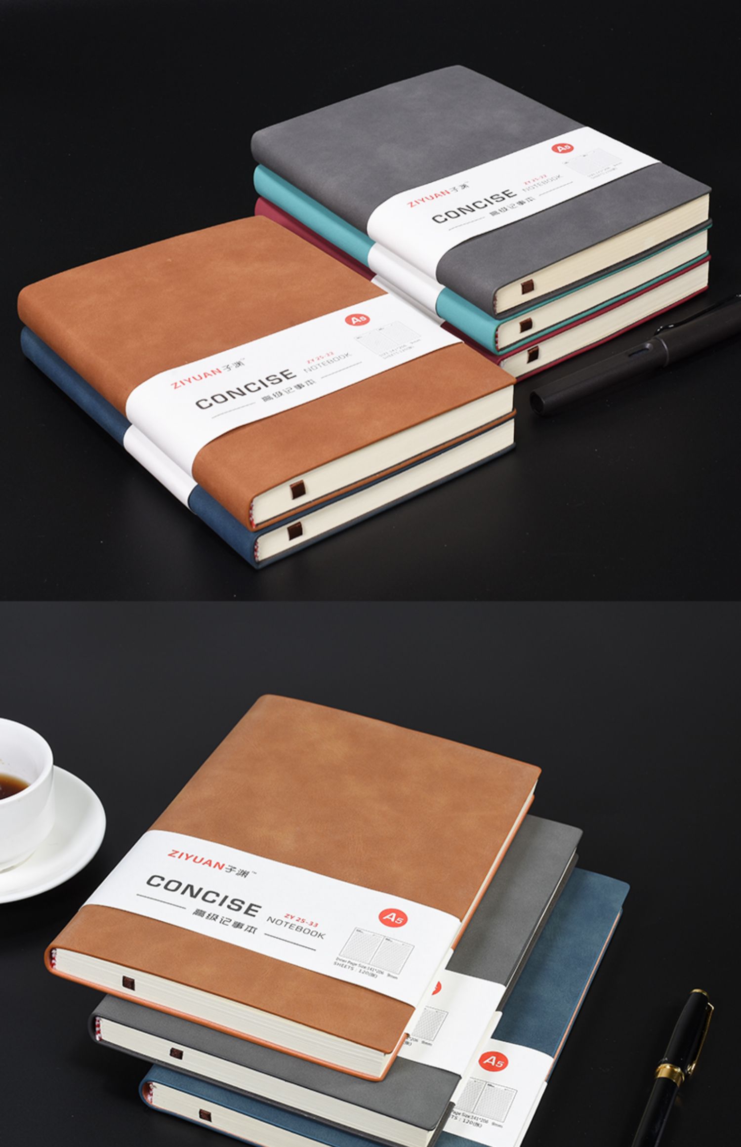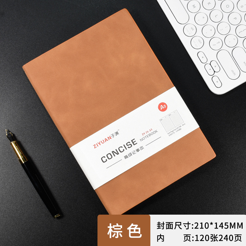 羊巴皮笔记本子a5本子可加厚记事本商务黑色皮面工作本办公简约