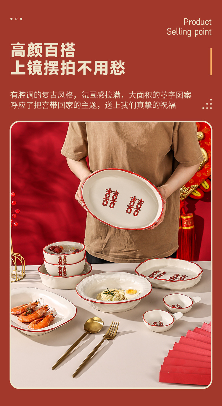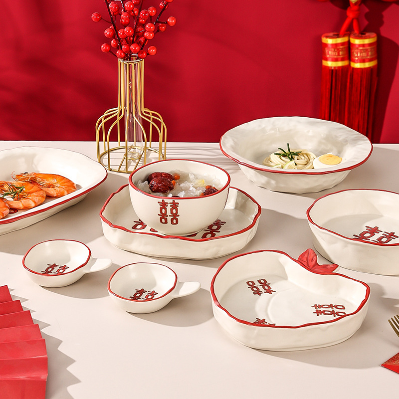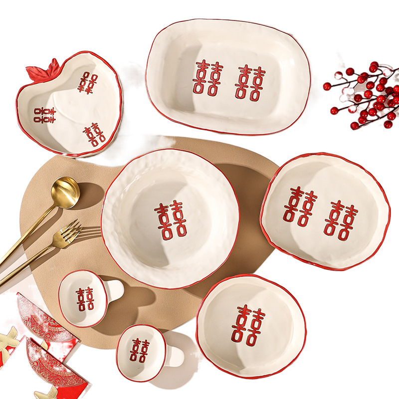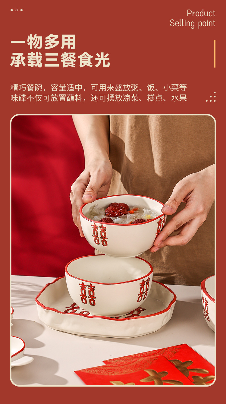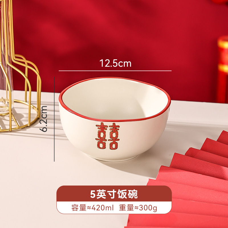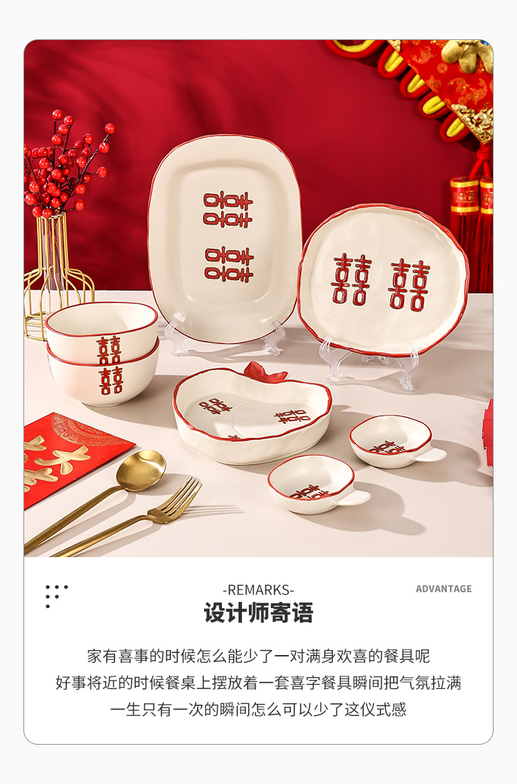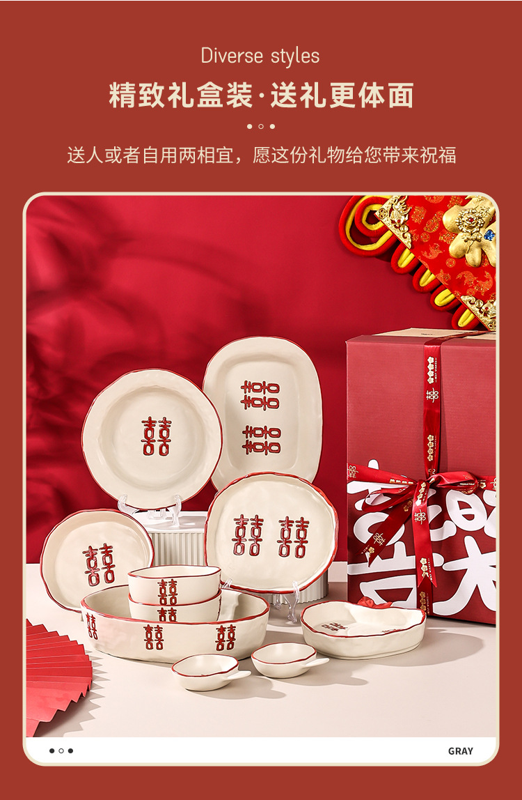新婚陪嫁礼品碗结婚双喜餐具红色囍字碗盘筷乔迁礼盒碗碟厂家直销