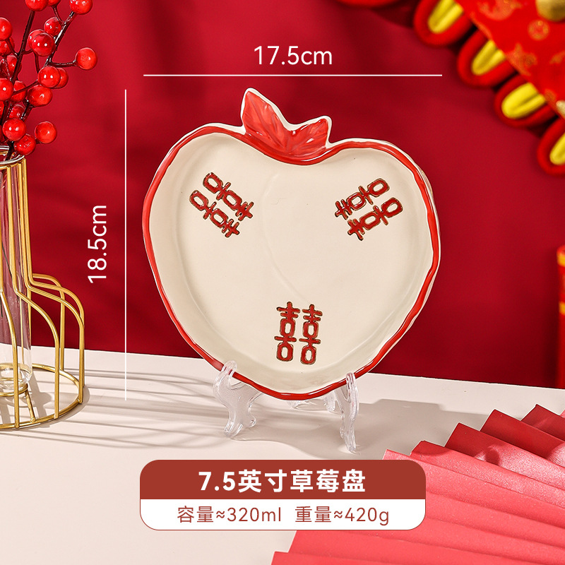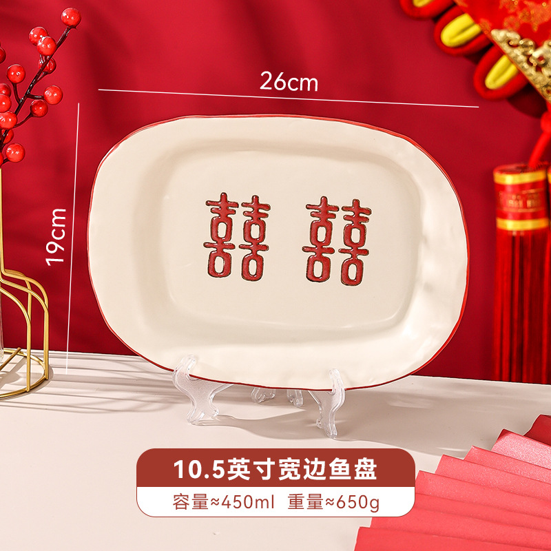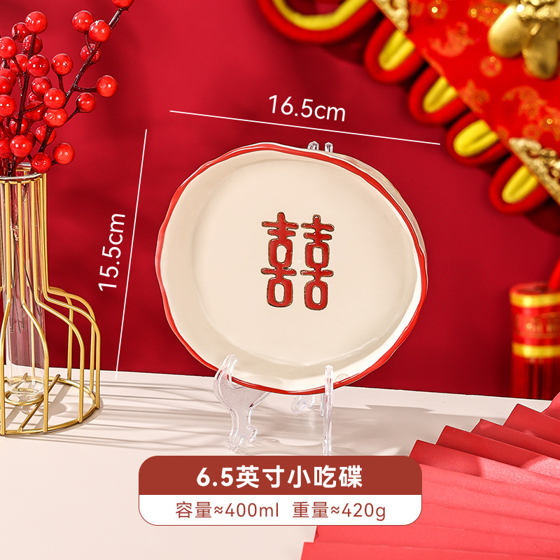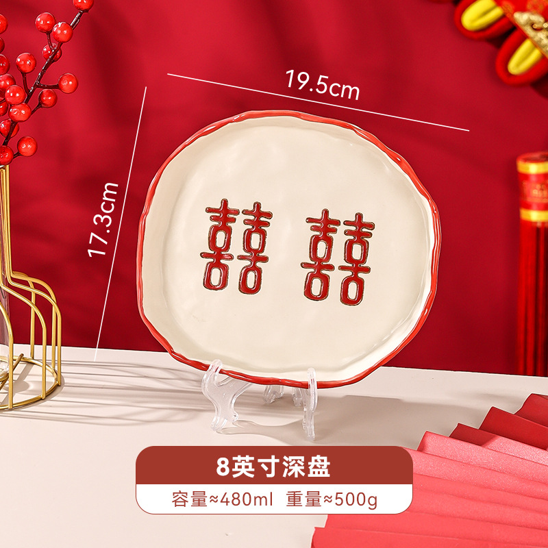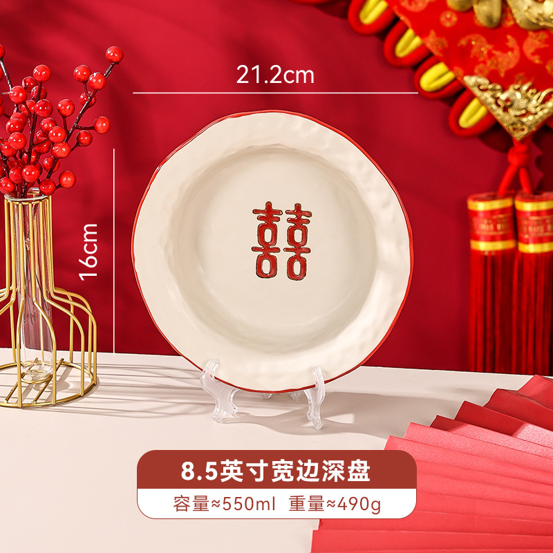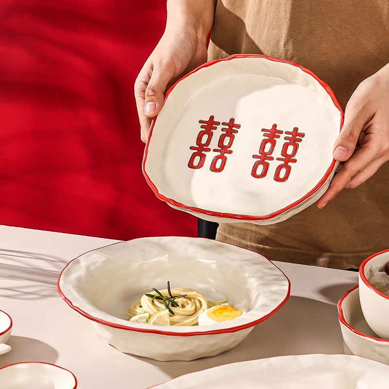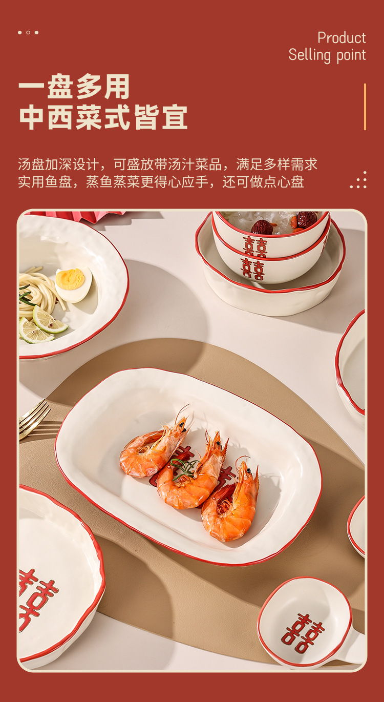 新婚陪嫁礼品碗结婚双喜餐具红色囍字碗盘筷乔迁礼盒碗碟厂家直销