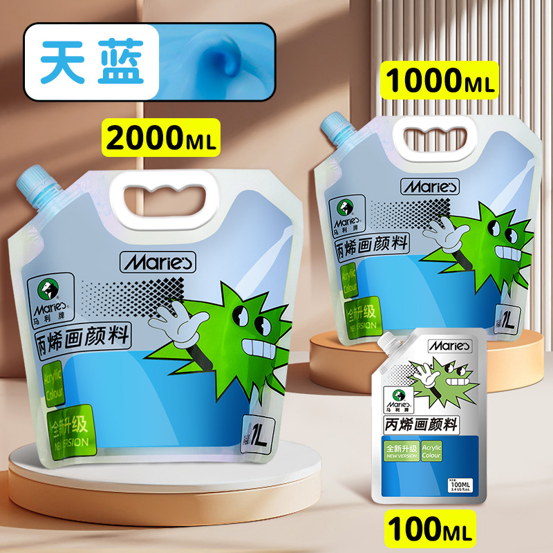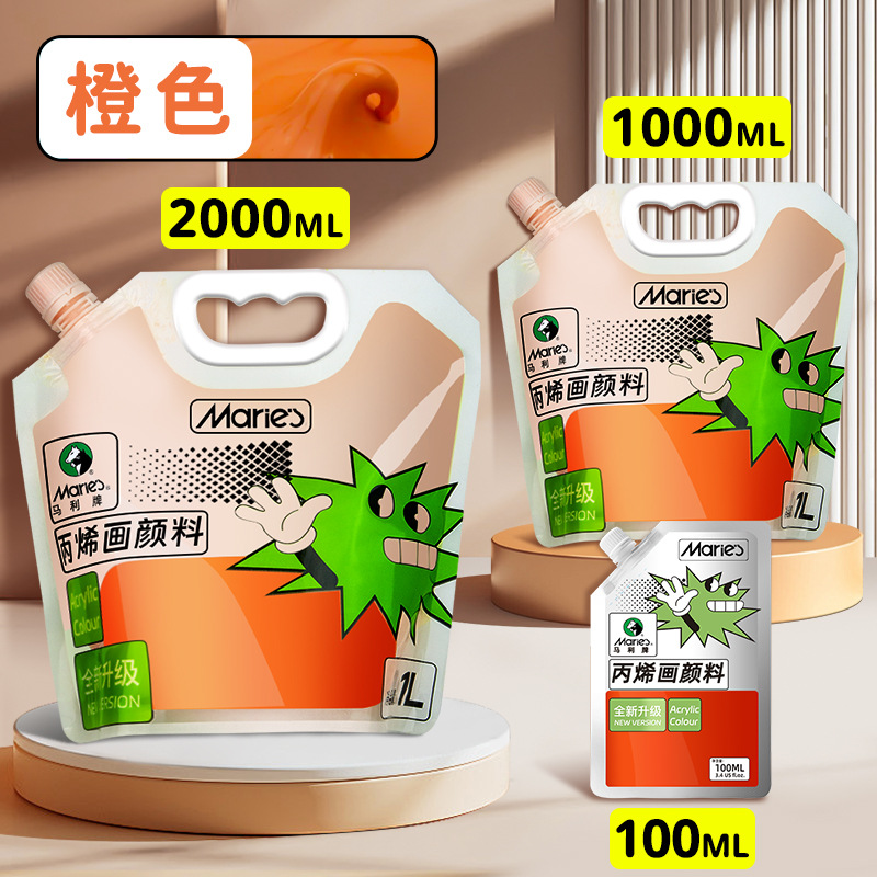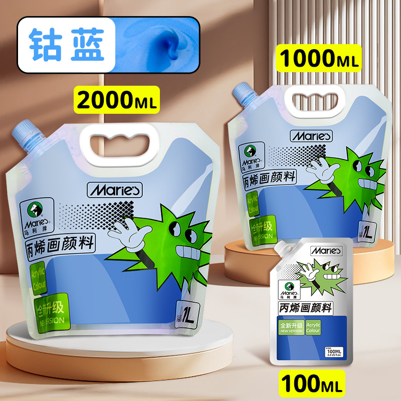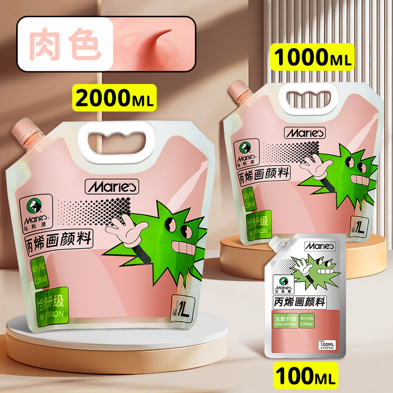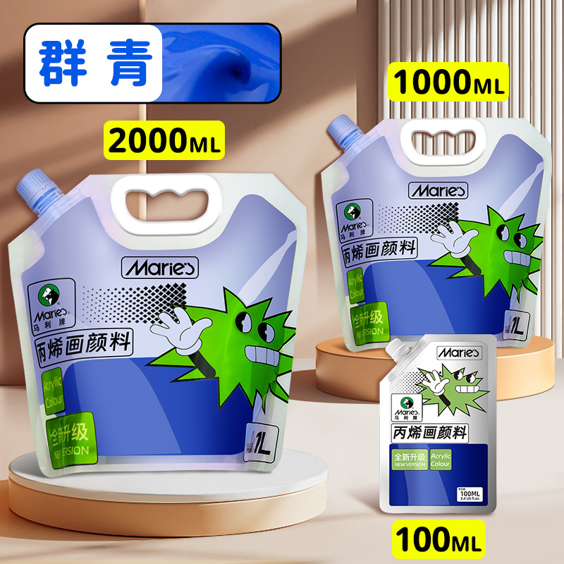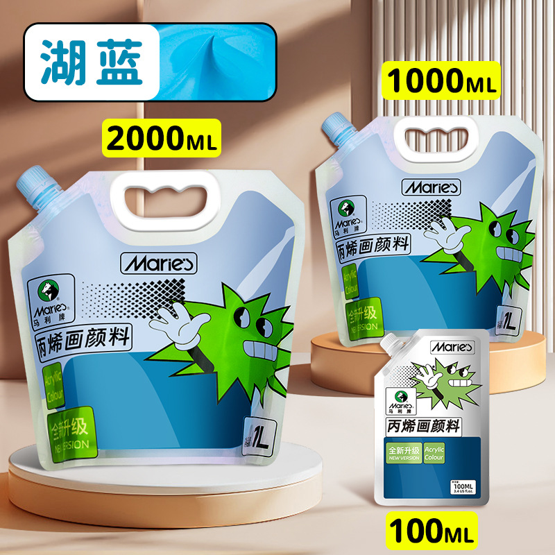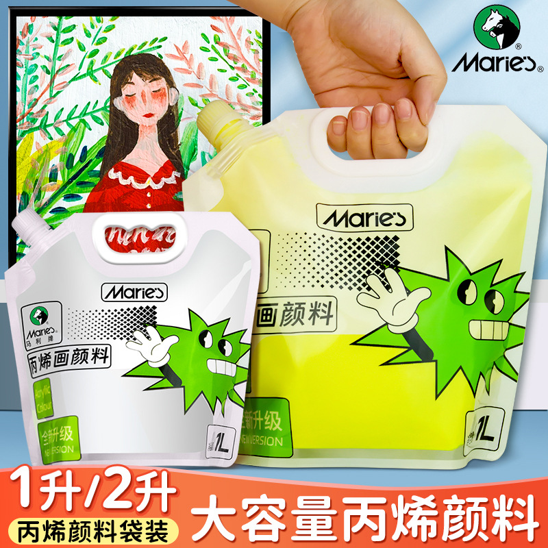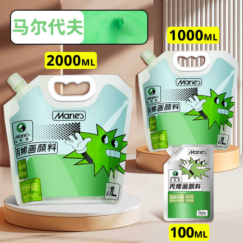 马利丙烯颜料袋装1L大容量防水墙绘2L大瓶炳烯手绘涂鸦肌理画颜料