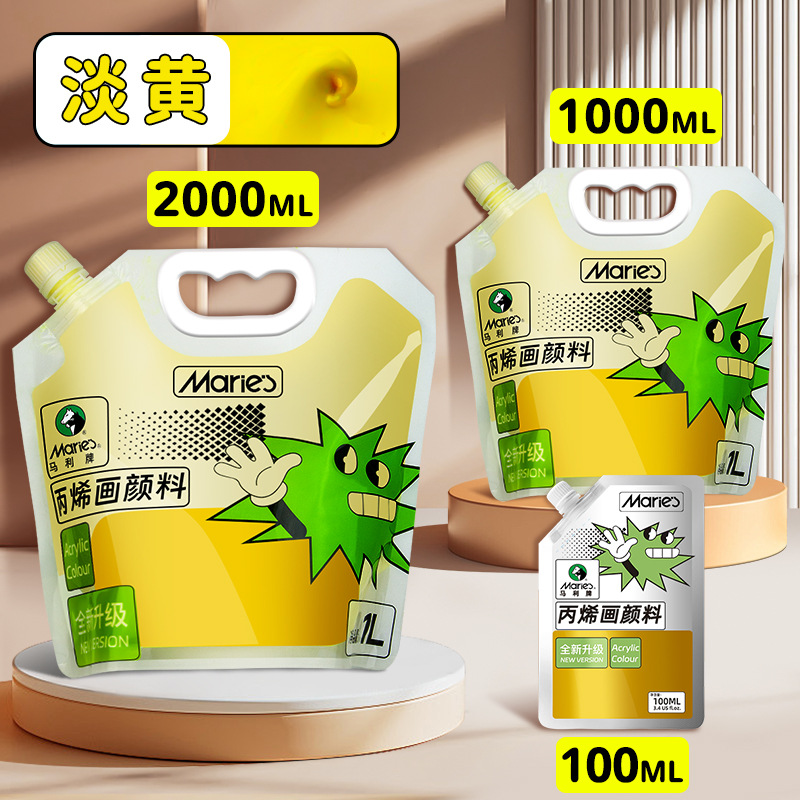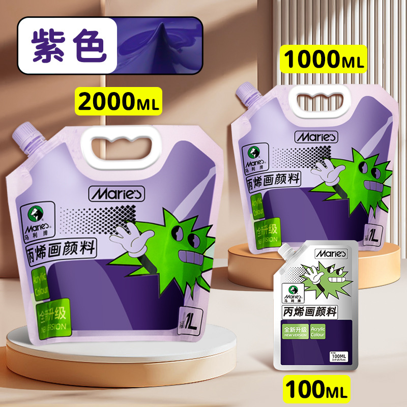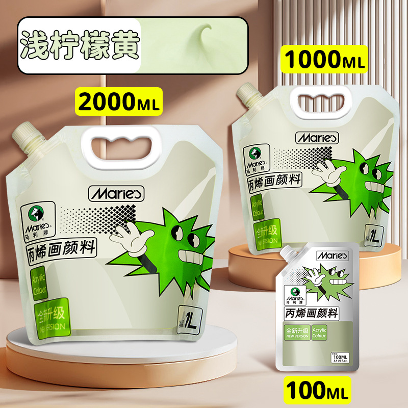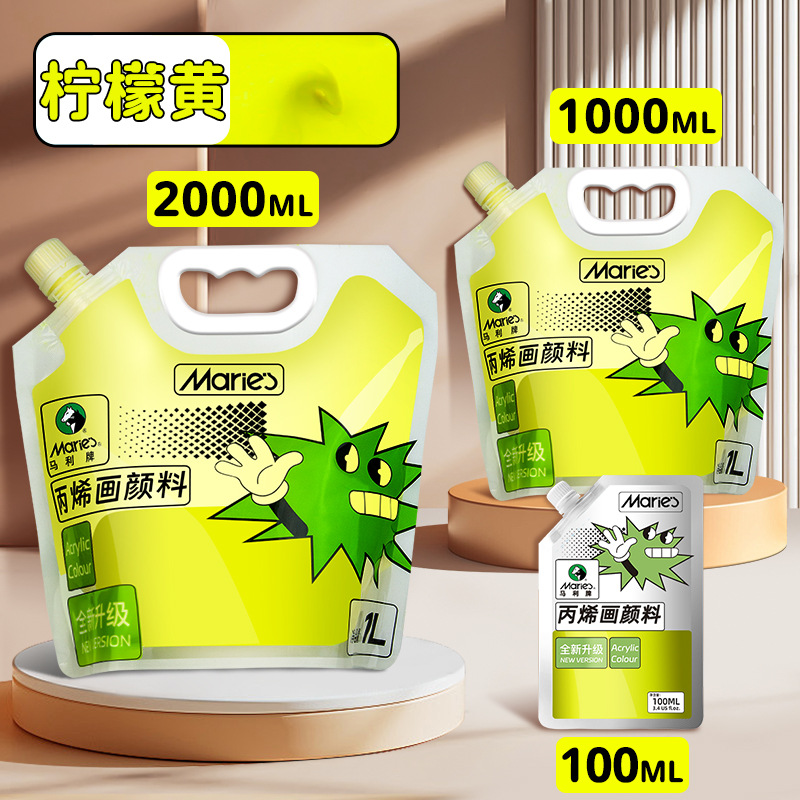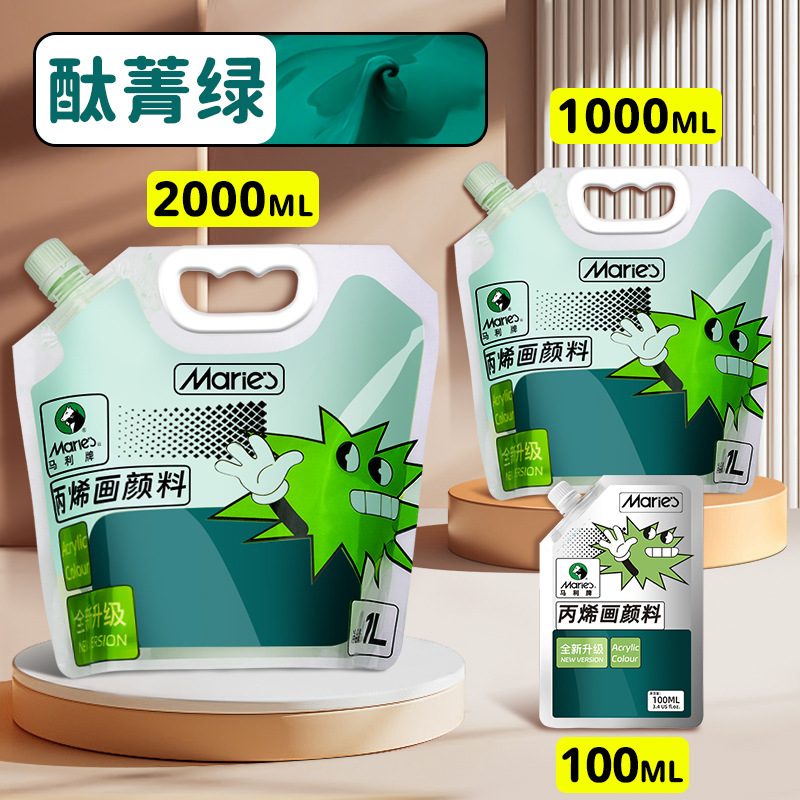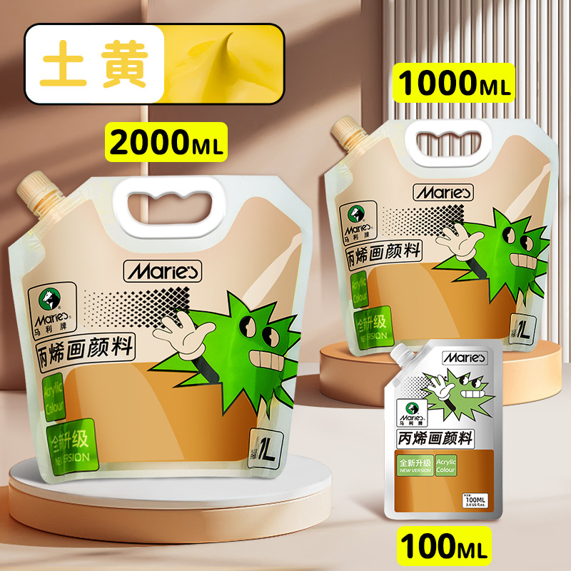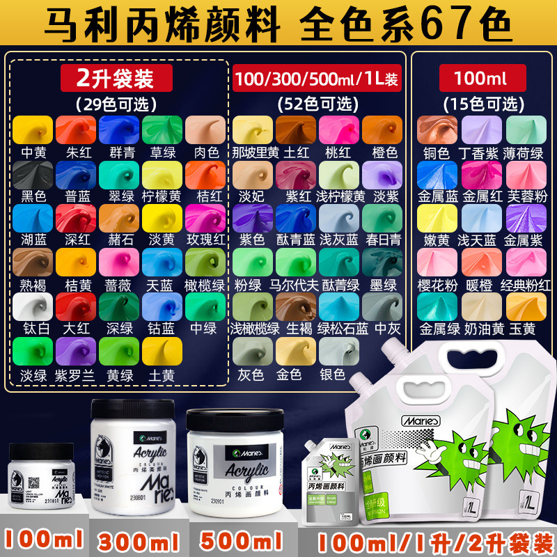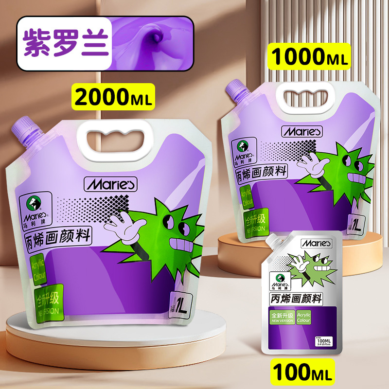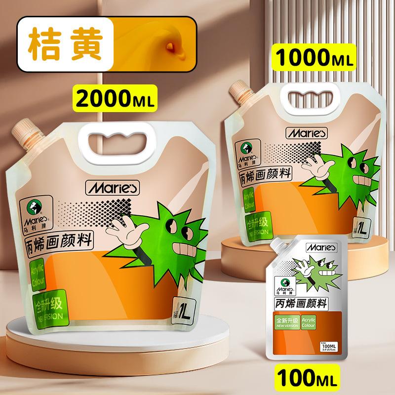 马利丙烯颜料袋装1L大容量防水墙绘2L大瓶炳烯手绘涂鸦肌理画颜料