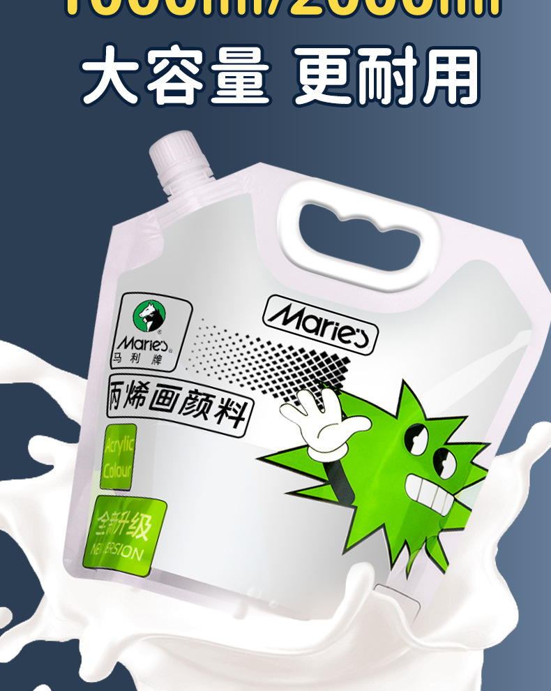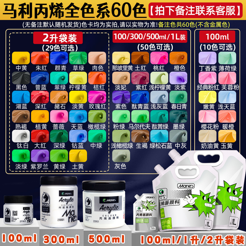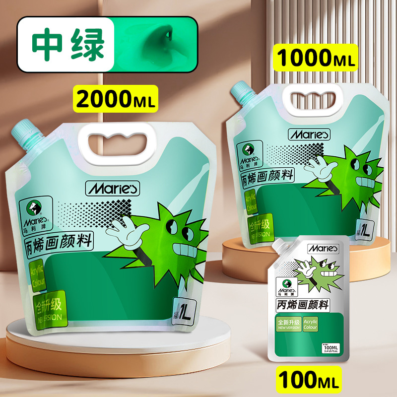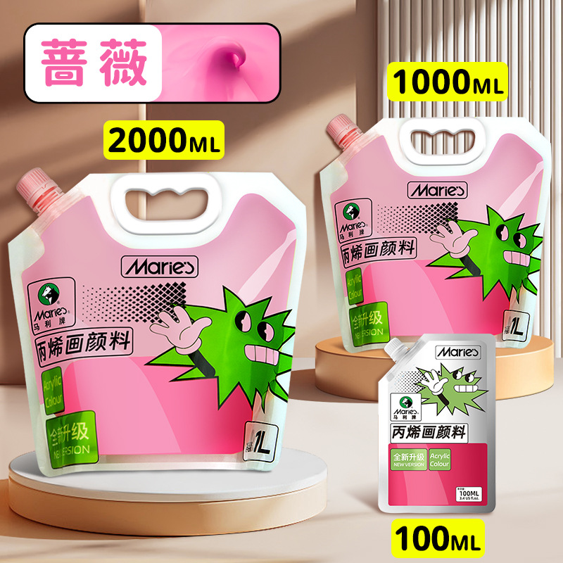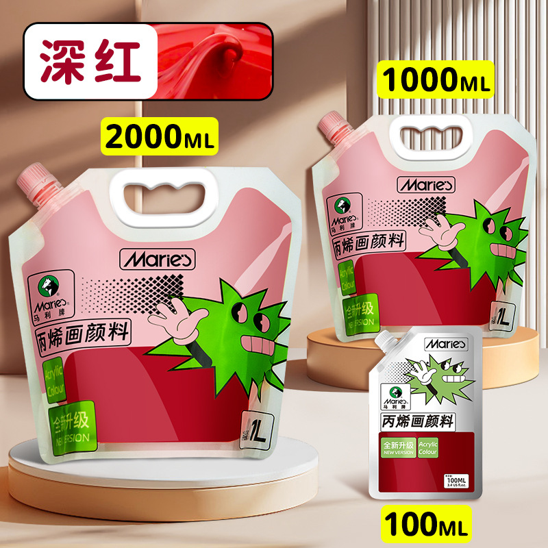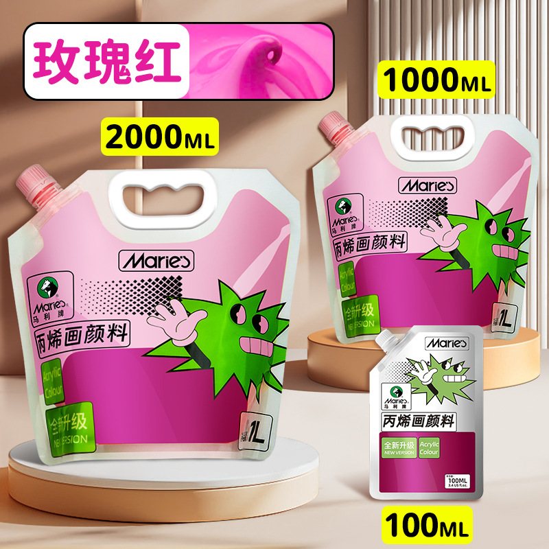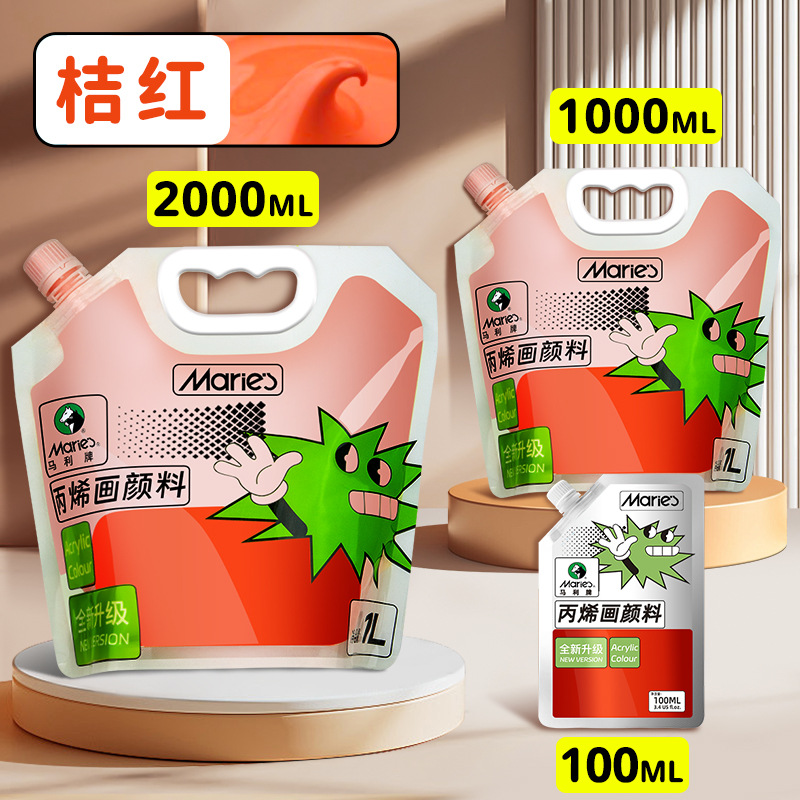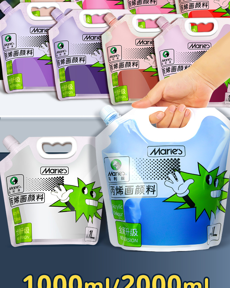 马利丙烯颜料袋装1L大容量防水墙绘2L大瓶炳烯手绘涂鸦肌理画颜料