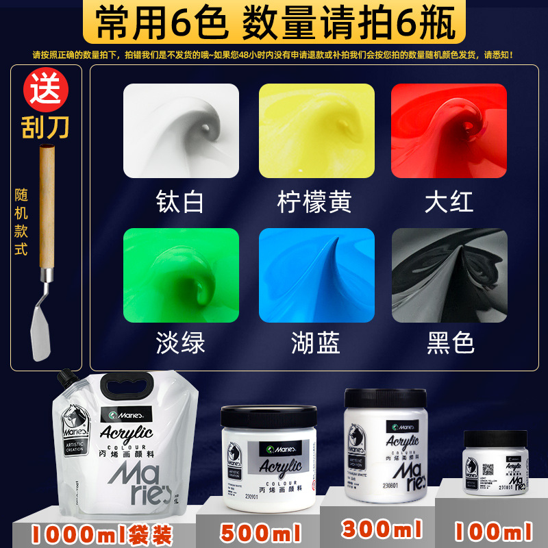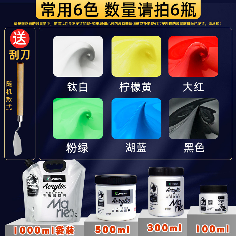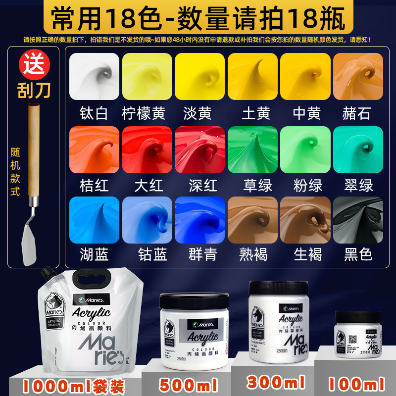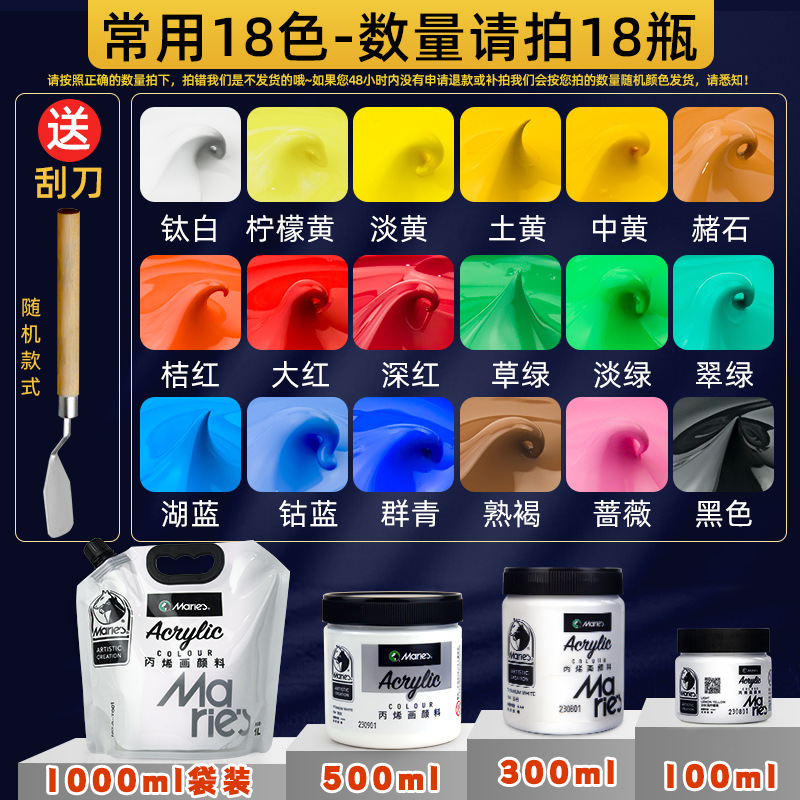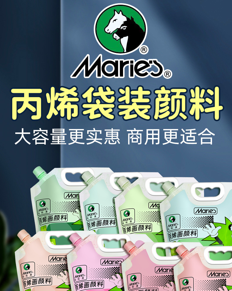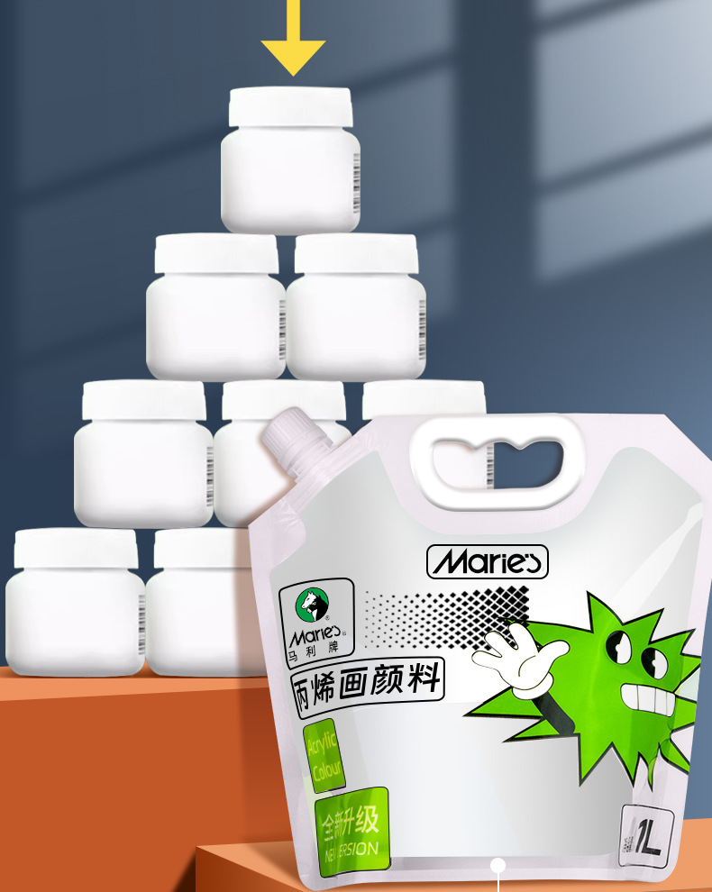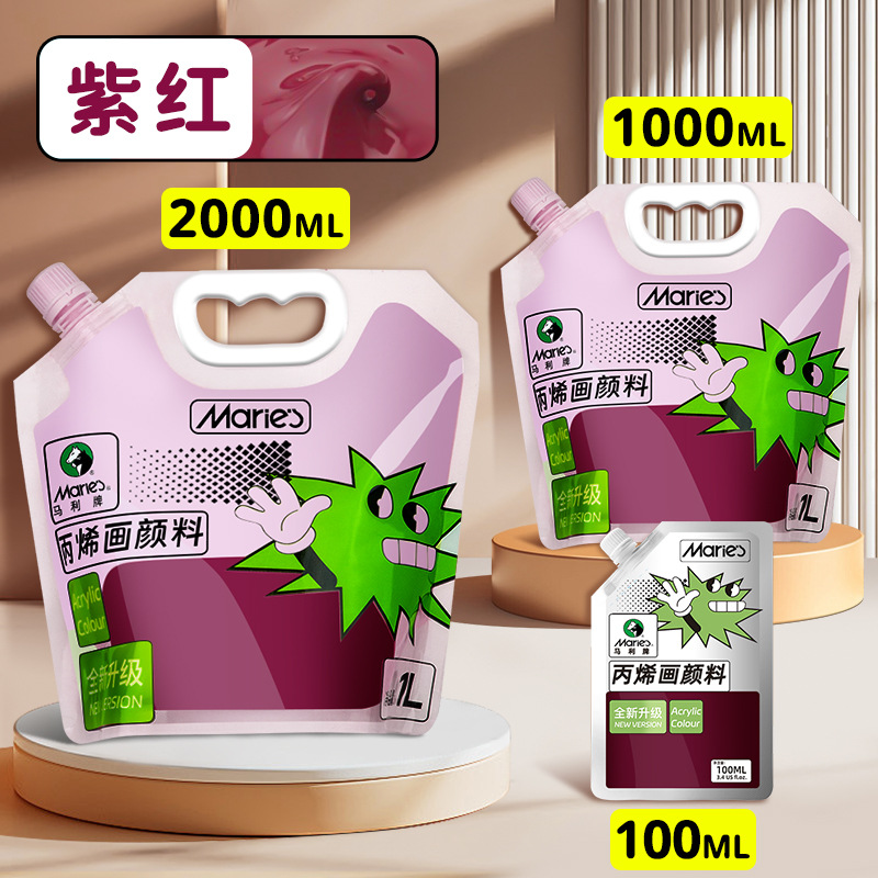 马利丙烯颜料袋装1L大容量防水墙绘2L大瓶炳烯手绘涂鸦肌理画颜料