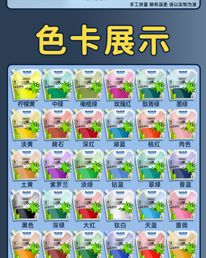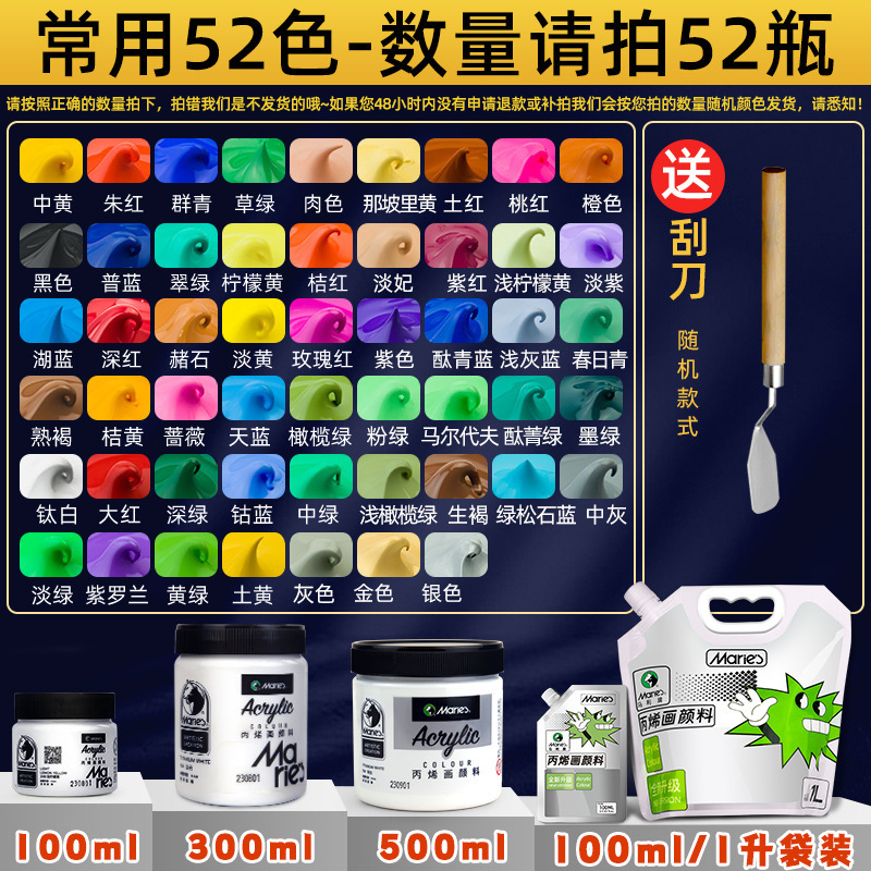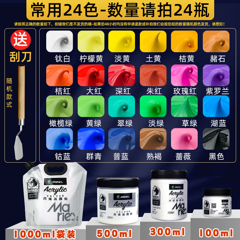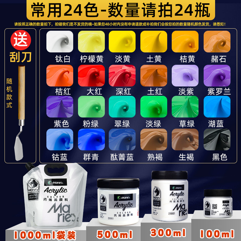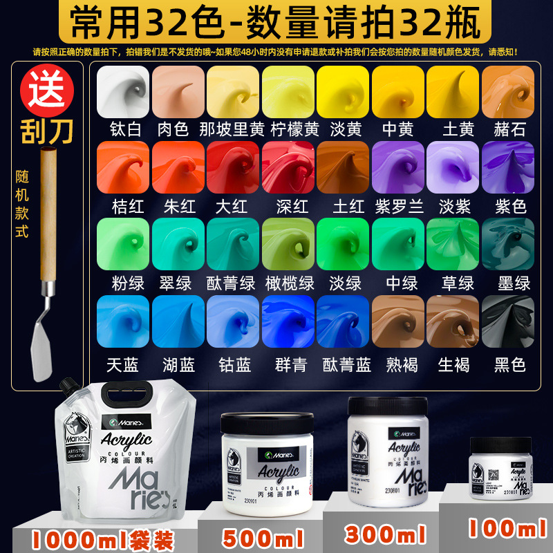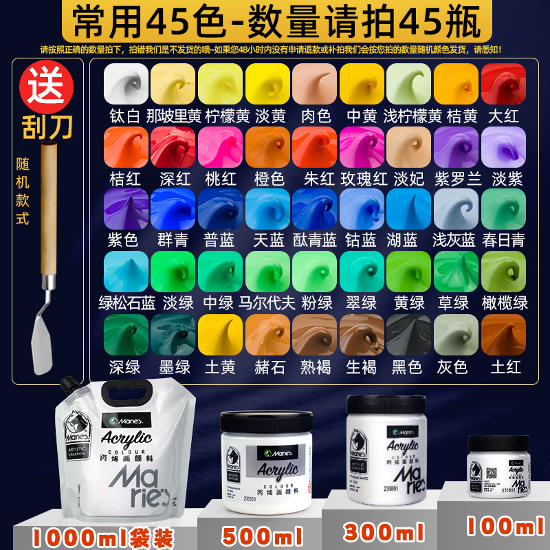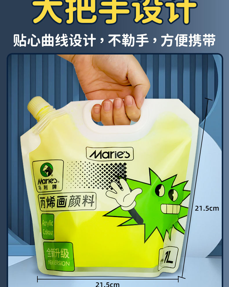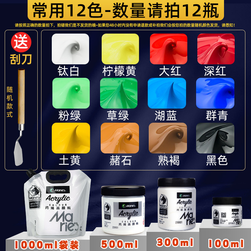 马利丙烯颜料袋装1L大容量防水墙绘2L大瓶炳烯手绘涂鸦肌理画颜料