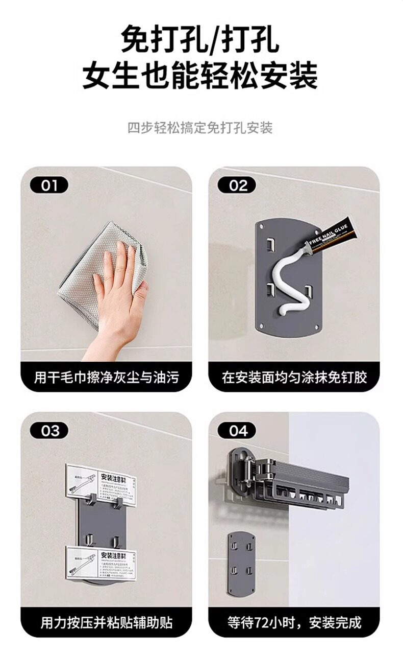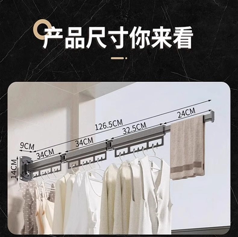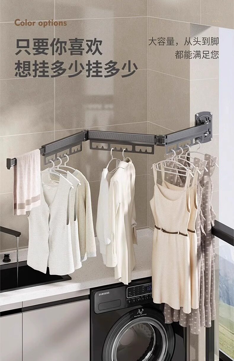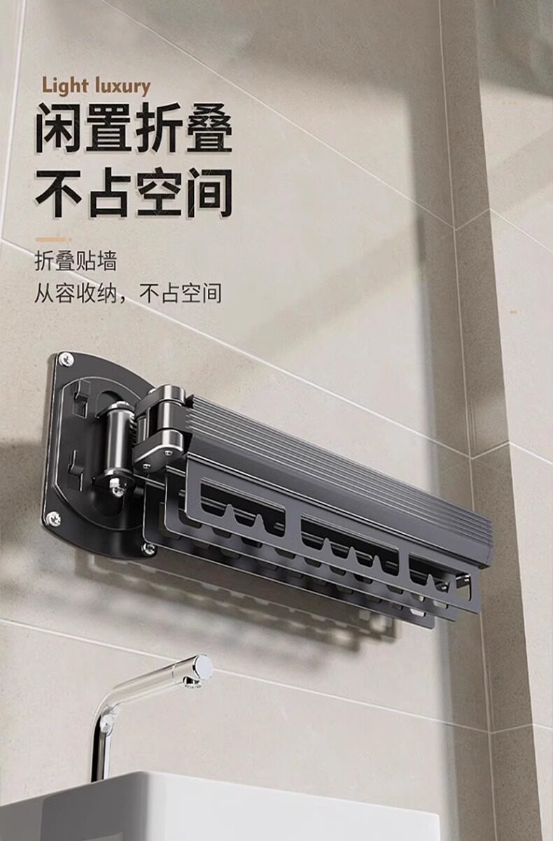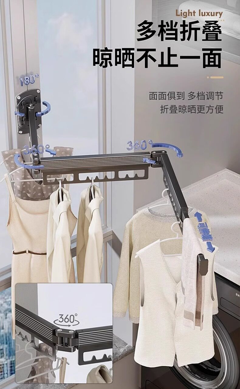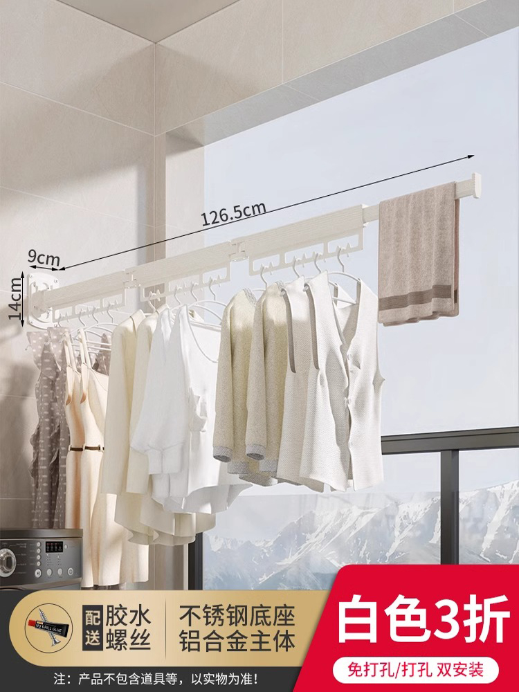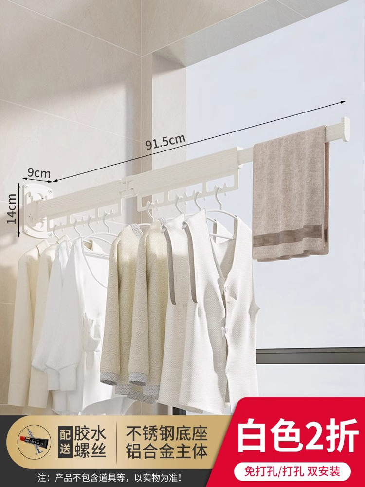 免打孔折叠晾衣架阳台家用壁挂隐形收缩凉衣杆伸缩神器晾晒隐型