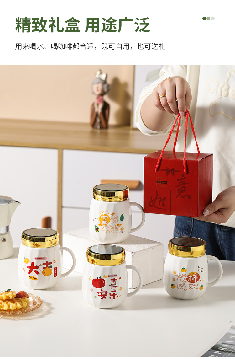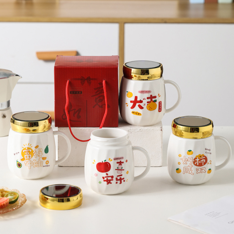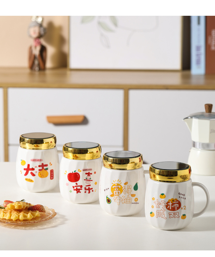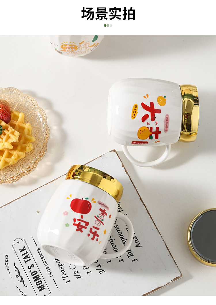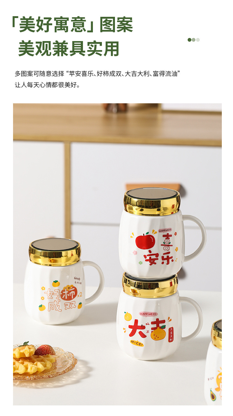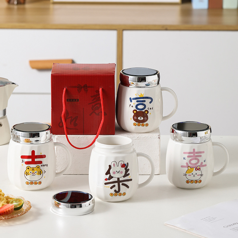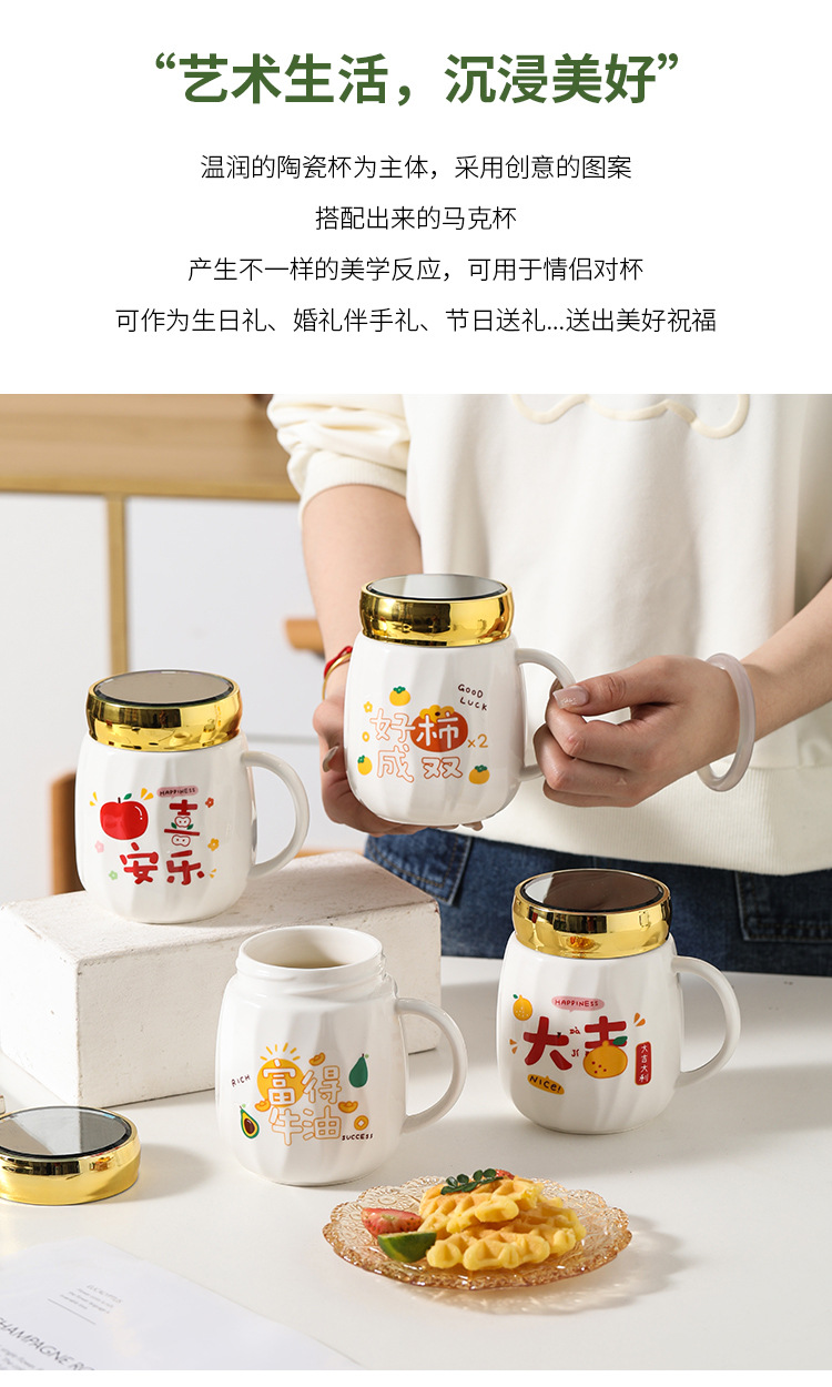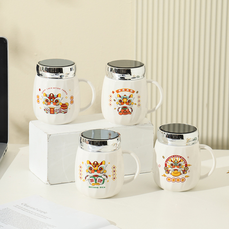 陶瓷条纹镜面杯带盖实用马克杯子珠宝摄影地推活动开业礼品印制