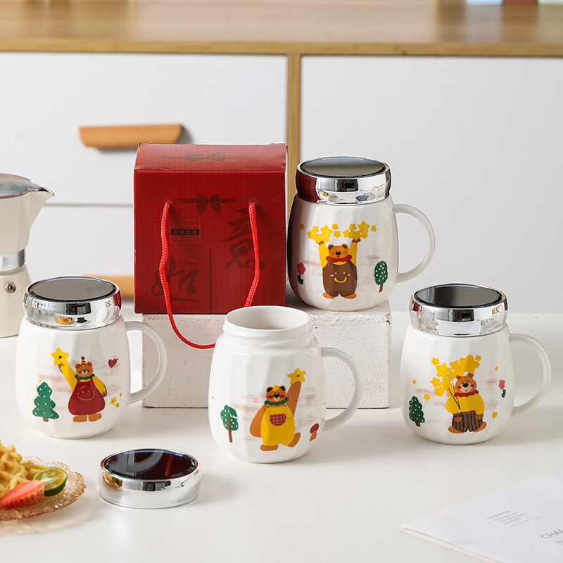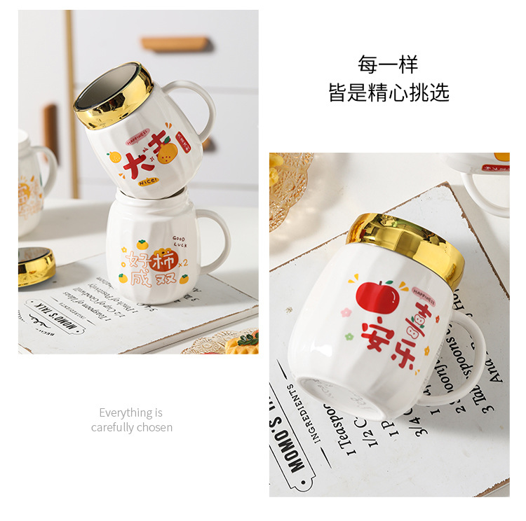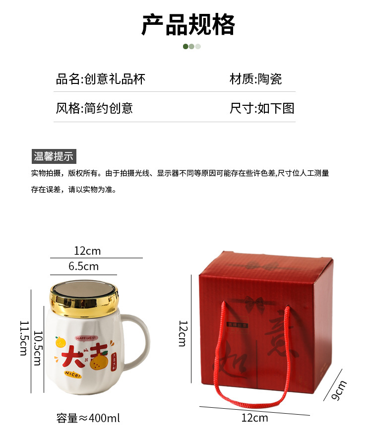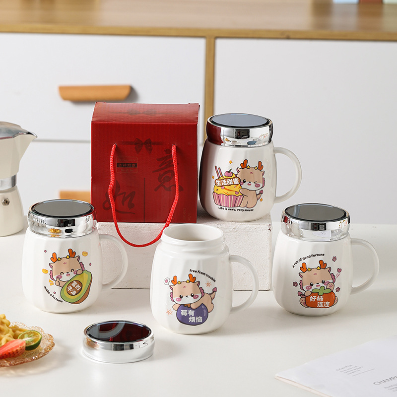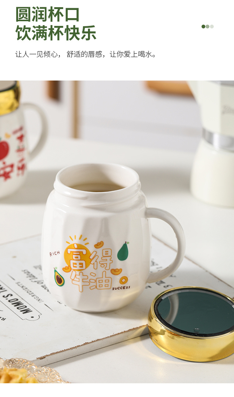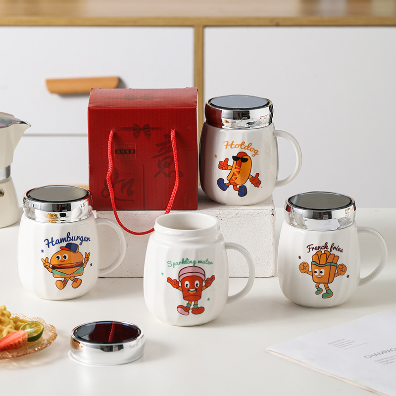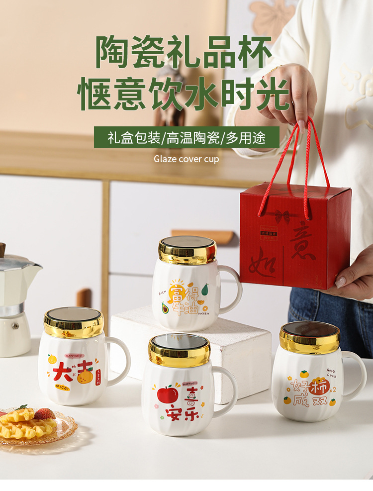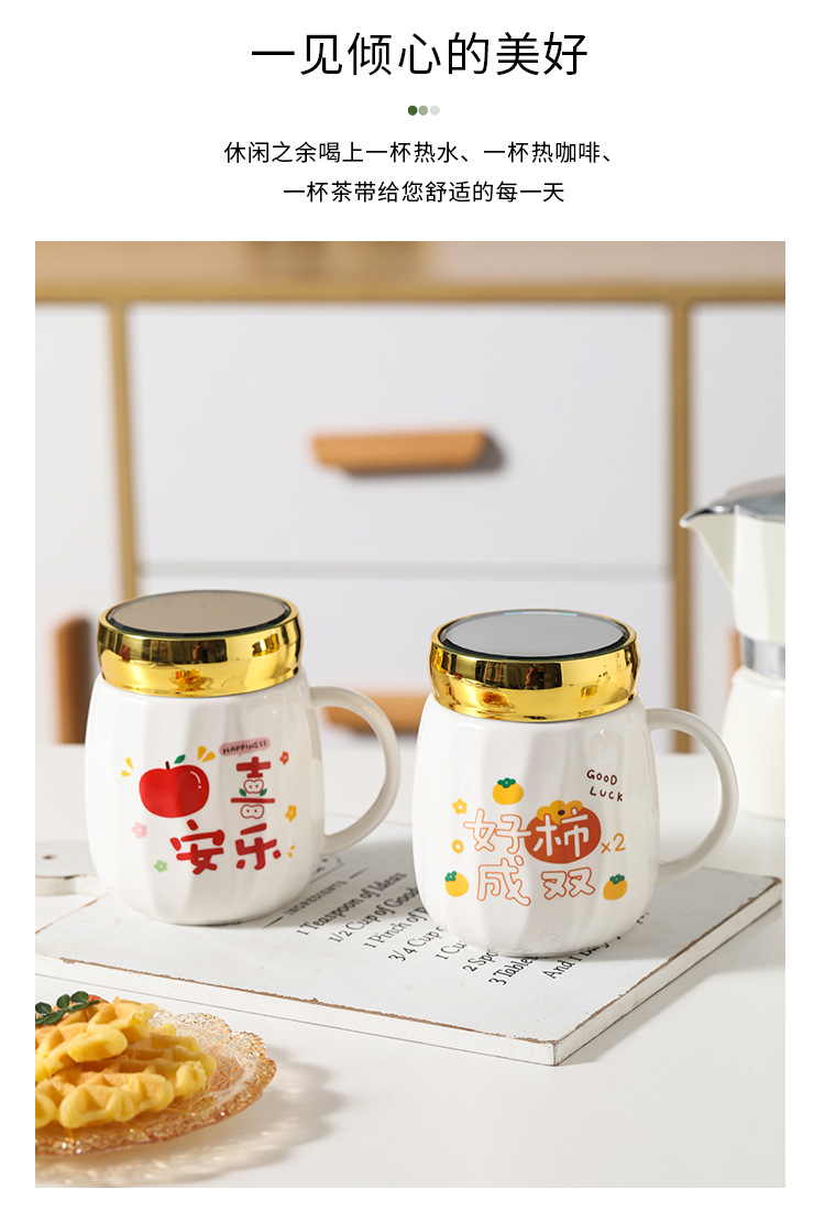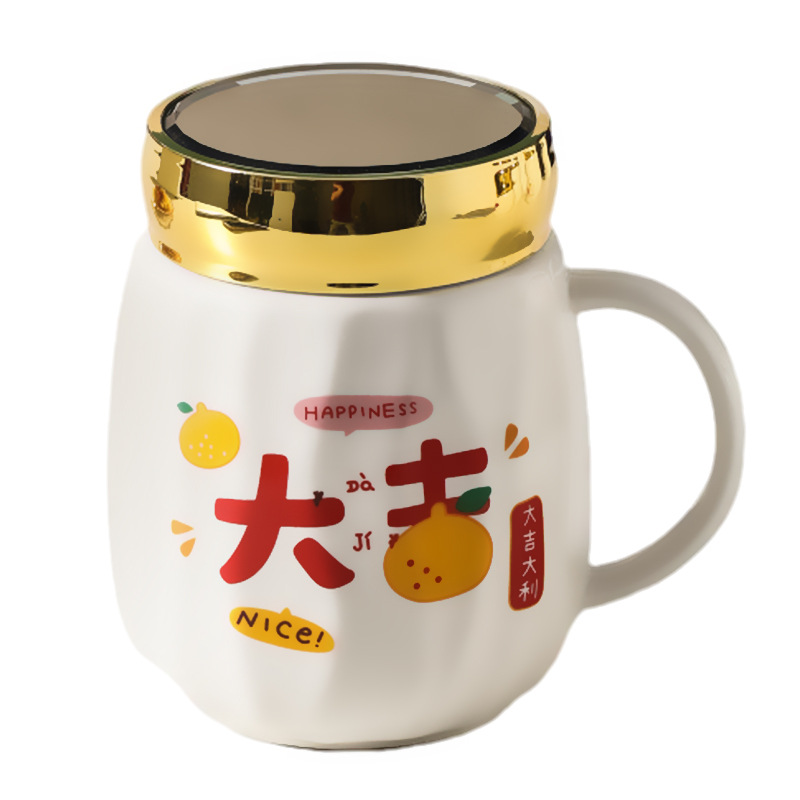 陶瓷条纹镜面杯带盖实用马克杯子珠宝摄影地推活动开业礼品印制