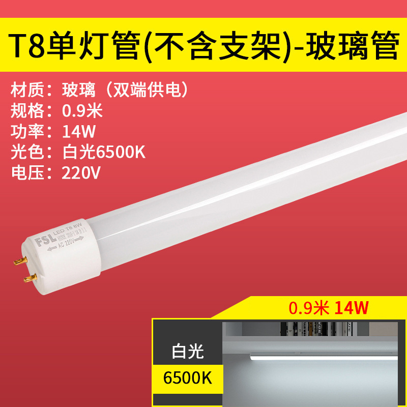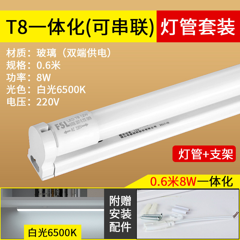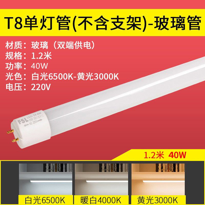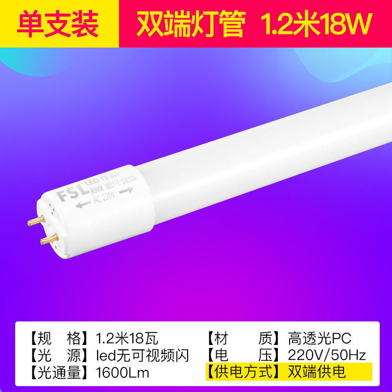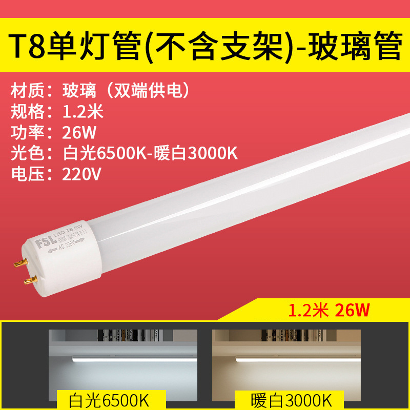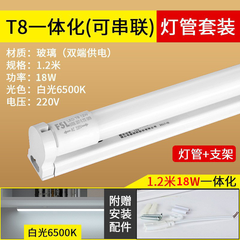 fsl佛山照明T8led灯管1.2米玻璃管日光灯经典高亮一体化灯条批发