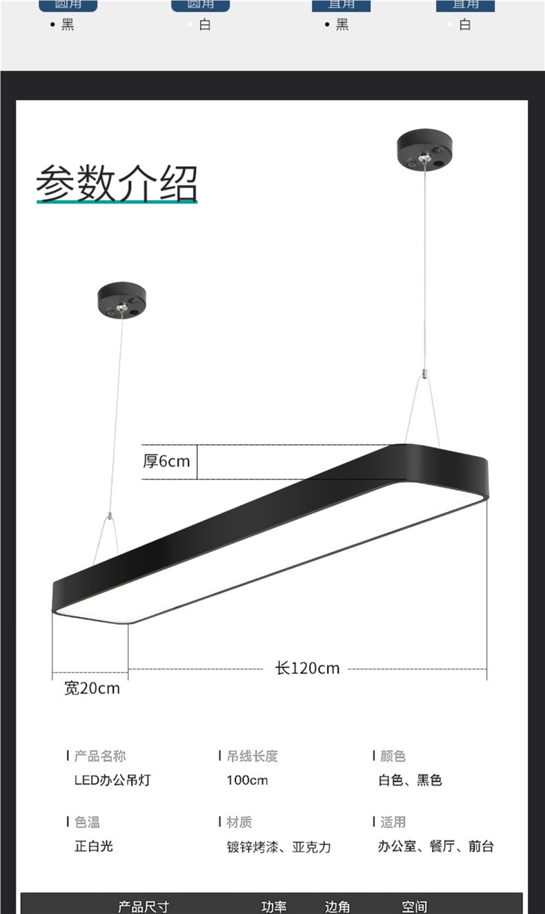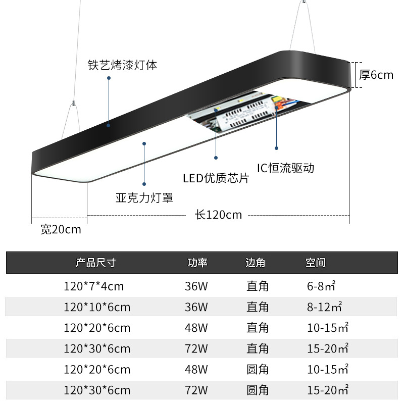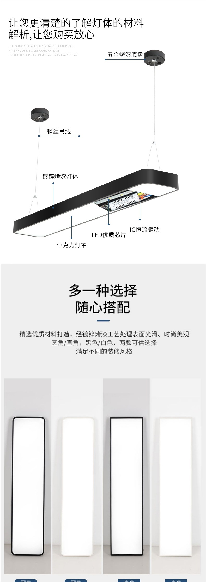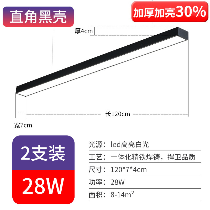 LED长条灯超亮店铺商用长方形简约现代方通吊线吸顶灯办公室吊灯
