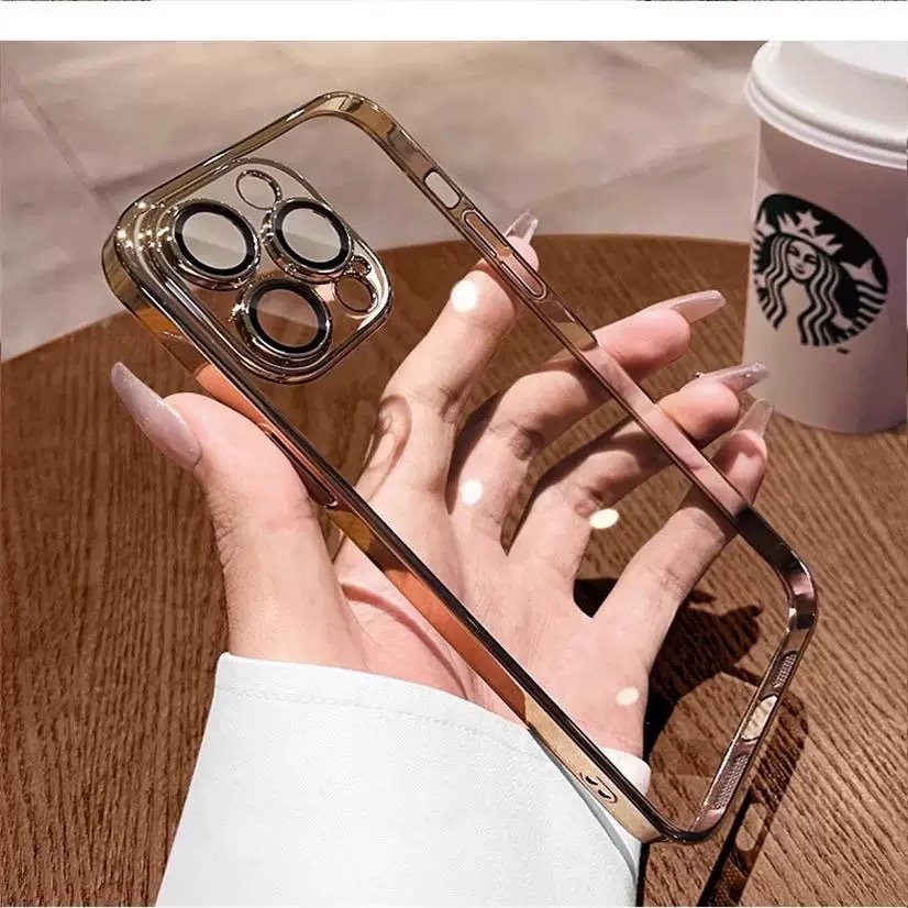 适用iPhone15电镀透明手机壳苹果14promax玻璃镜头PC硬壳保护套13