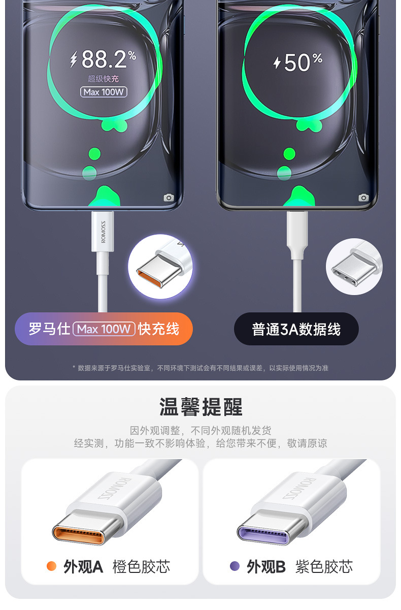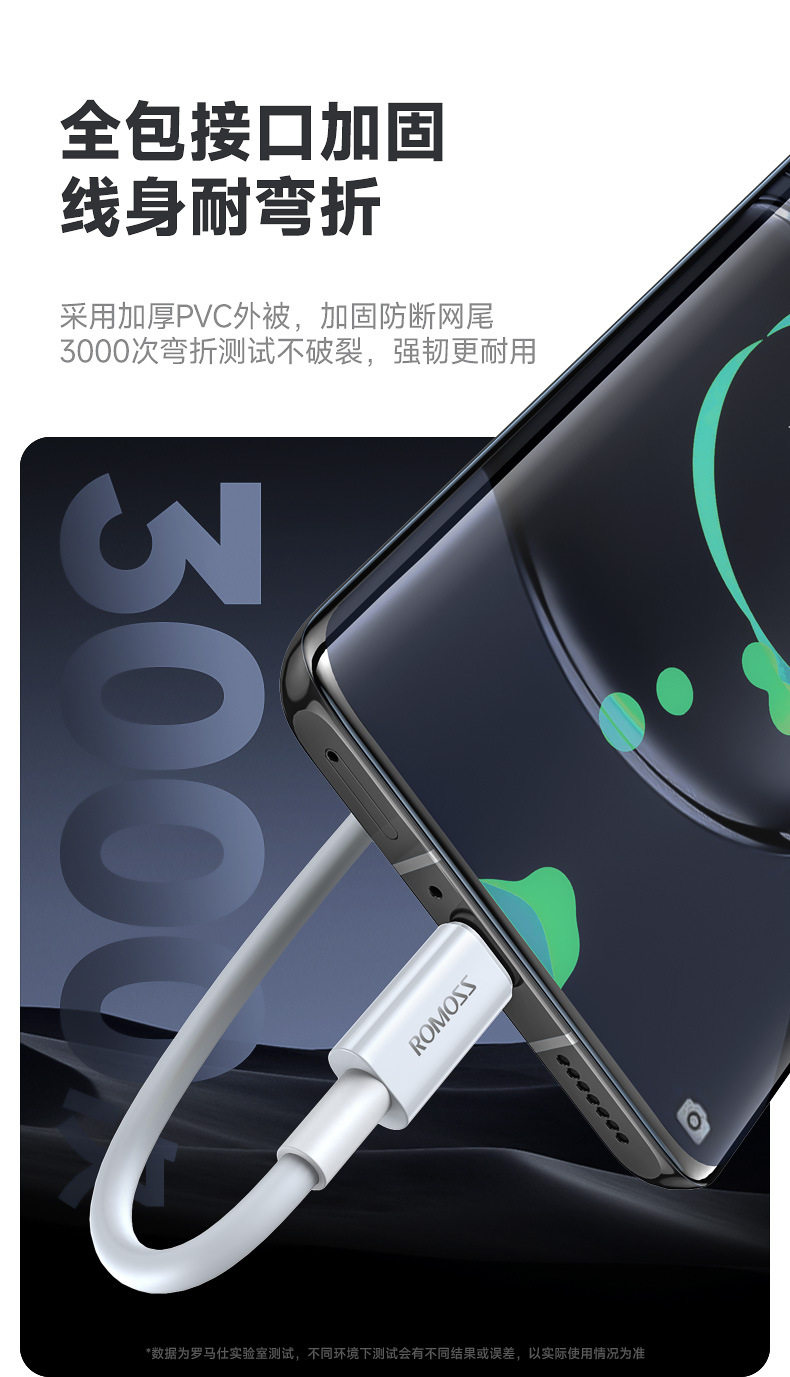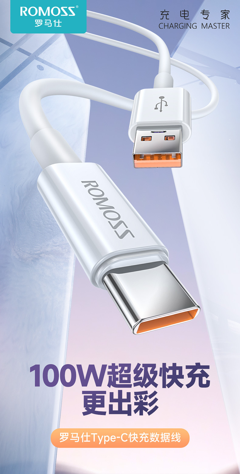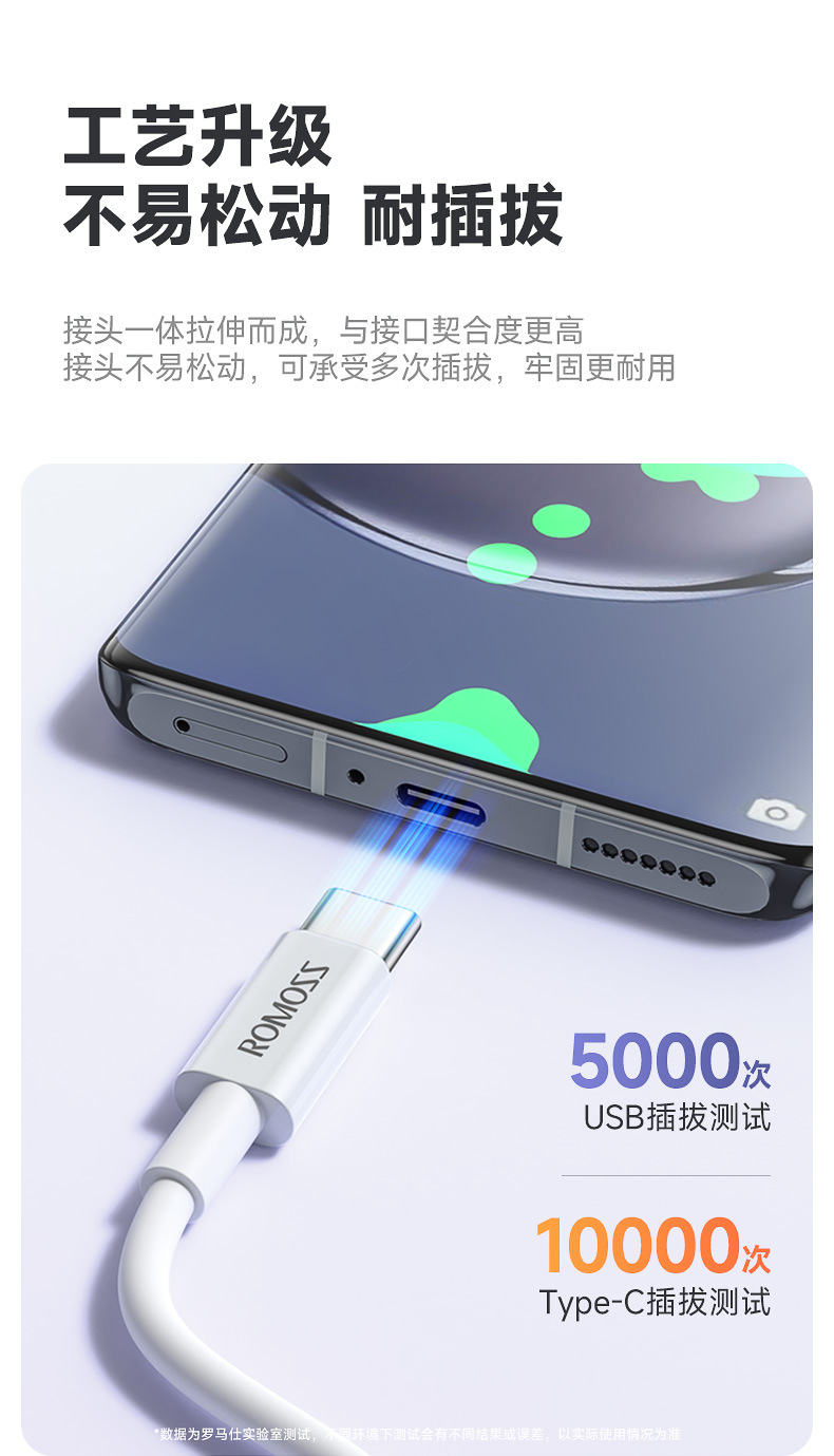 罗马仕typec数据线6A手机快充线适用于华为安卓通用tpc充电线批发