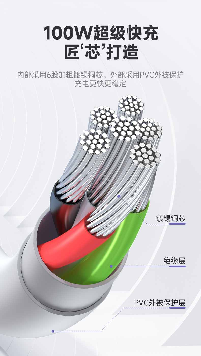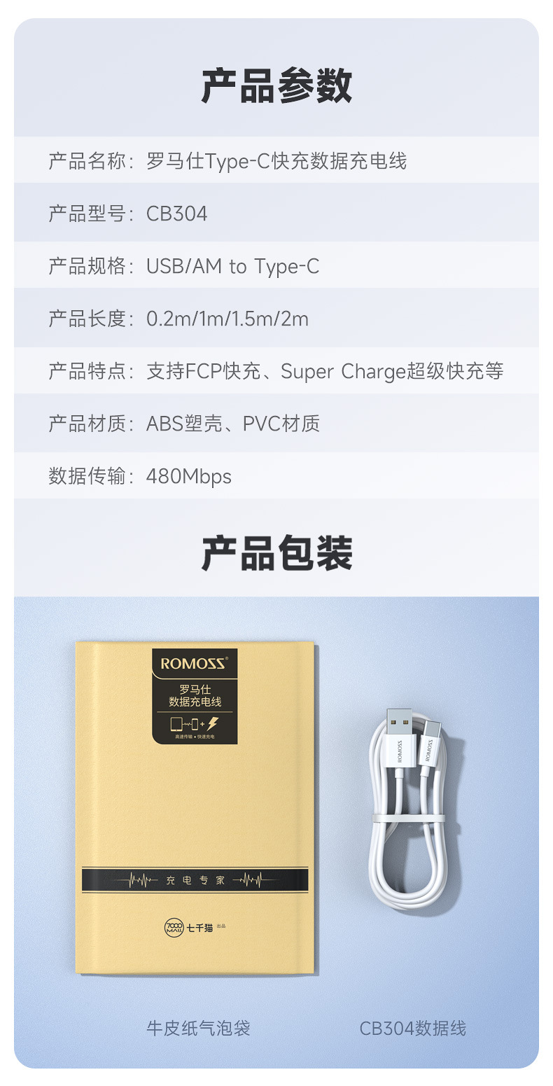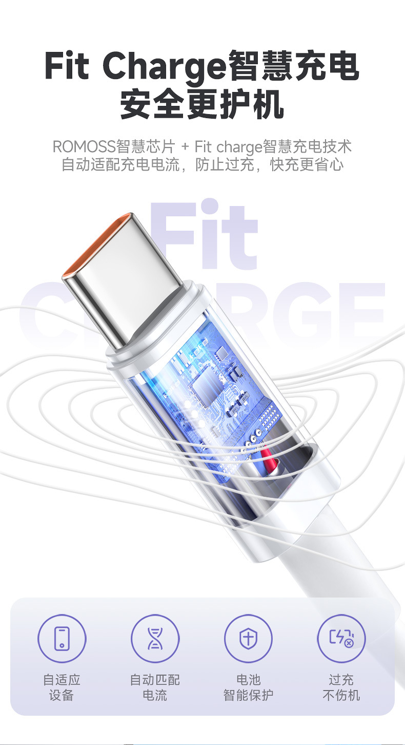 罗马仕typec数据线6A手机快充线适用于华为安卓通用tpc充电线批发
