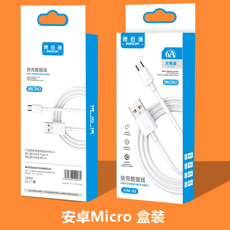 6A安卓快充数据线适用V8梯形插口手机MicroUSB充电线100W充电器线