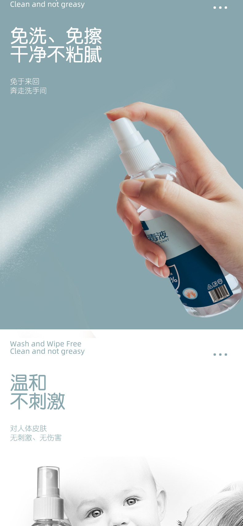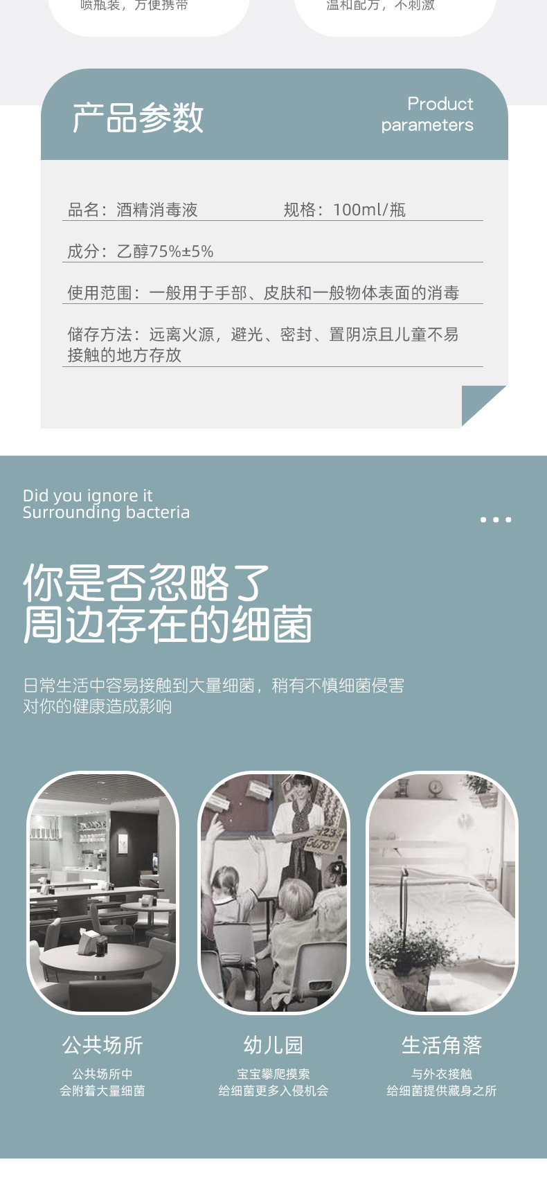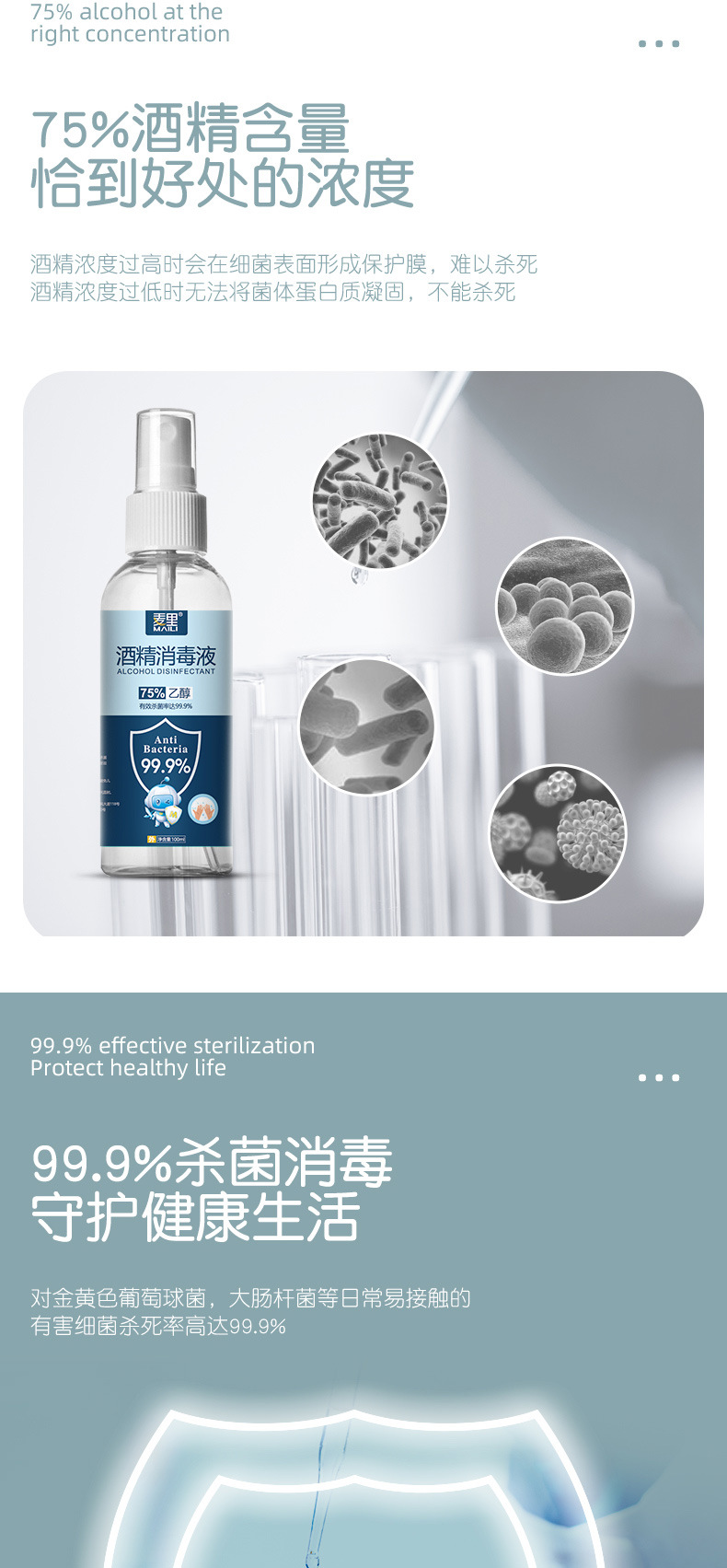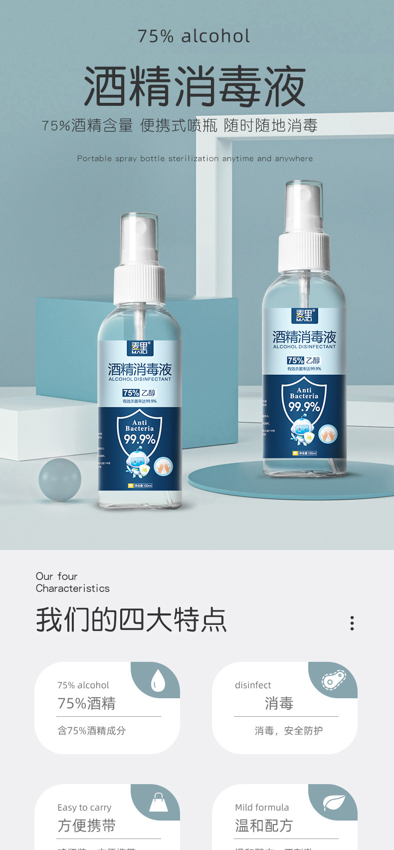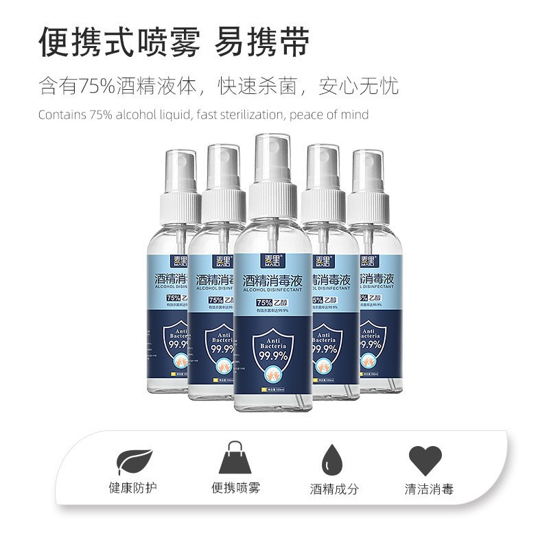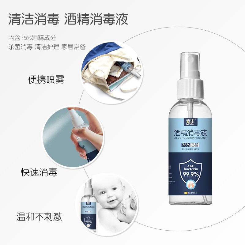 75度酒精喷雾100毫升免洗清洁杀菌速干家用办公便携式乙醇 消毒液