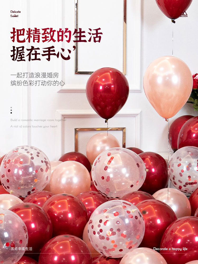 网红婚房装饰套装红色喜庆双层气球婚礼场景布置订婚婚庆用品大全