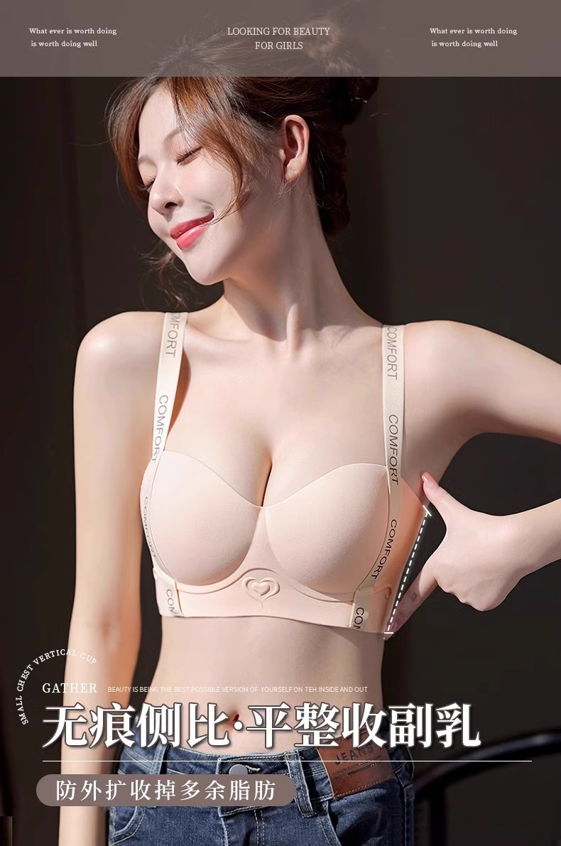 提拉内衣女小胸聚拢显大不空杯无痕上托收副乳防下垂调整型文胸罩