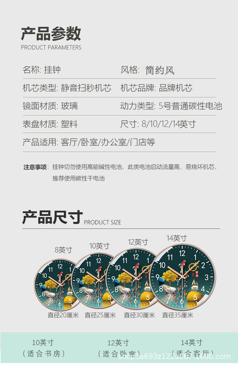 【8英寸20厘米】轻奢静音钟表简约家用挂钟新款家和富贵石英钟